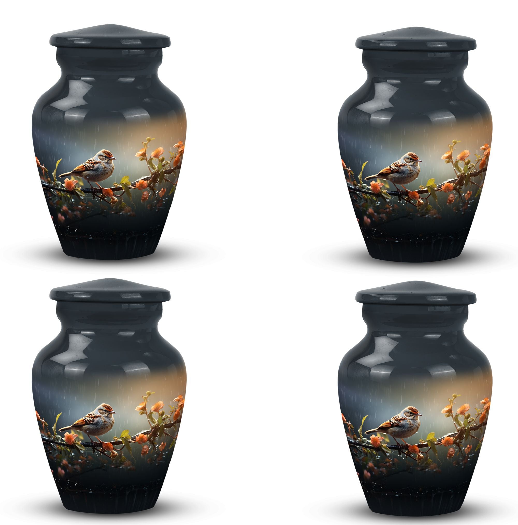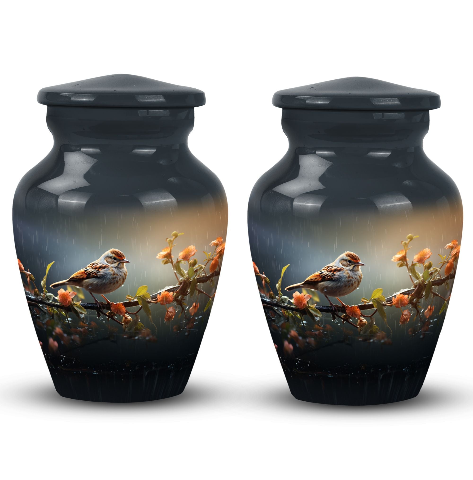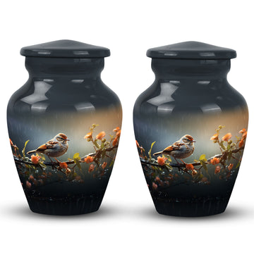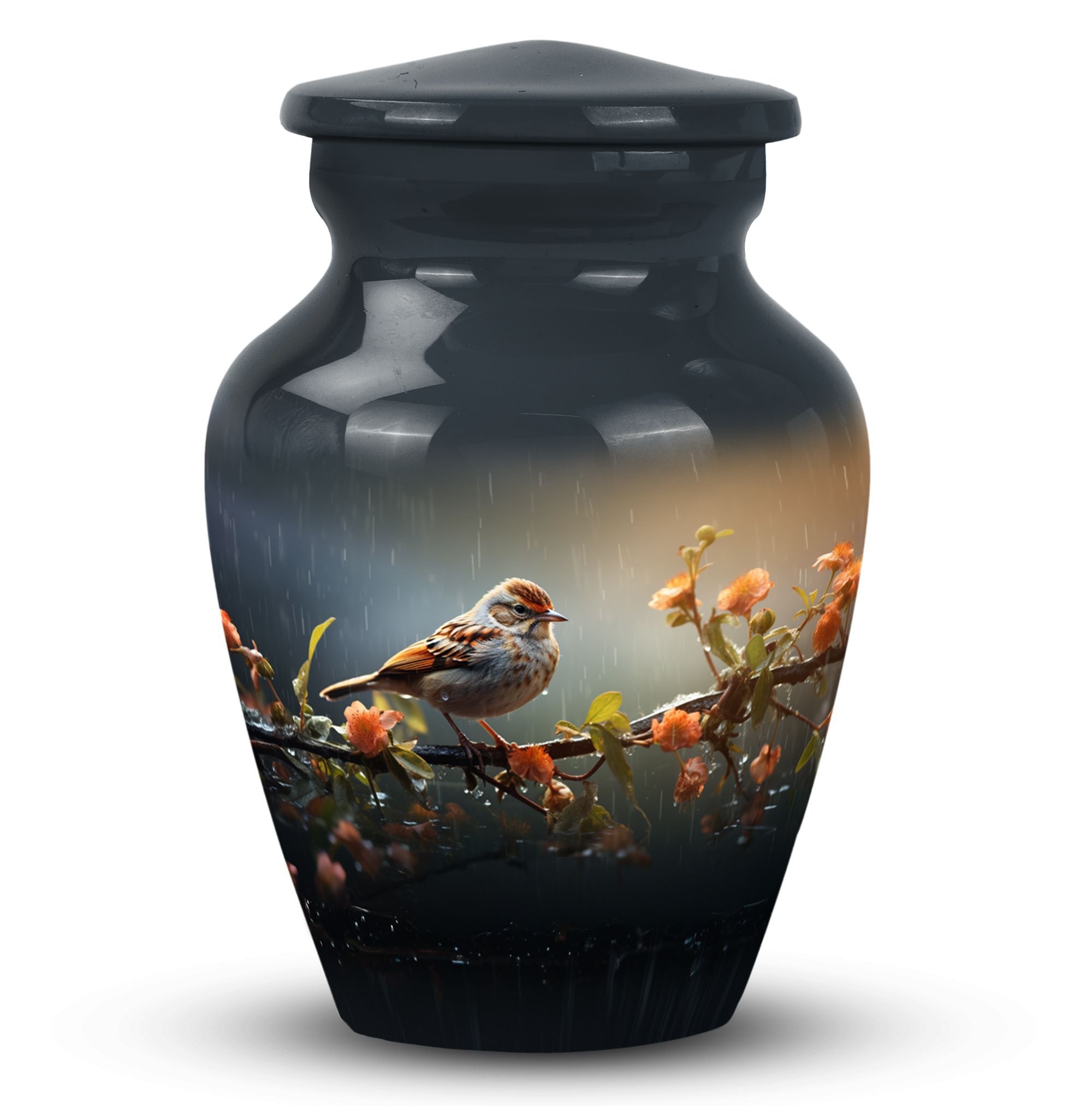 Honor the cherished memory of your departed loved one with our Red Sparrow Urns for Ashes. Crafted from robust aluminium, these large urns boast not just longevity but also a distinct aesthetic appeal, making them a revered choice amongst memorial urns. Standing tall at 10 inches with a hearty weight of 3.3 pounds, they encompass a generous capacity of 200 cubic inches, ensuring ample room for containment. The urn is accompanied by a soft velvet pouch, adding an extra layer of preservation for the sacred ashes. What sets our urns apart is their room for personal touch - you can personalize them with engraved names, making the urn even more special. This 3-inch classic urn does not just act as an ashes holder for cremation, but also as a reminder of the profound love you encapsulate for your beloved, especially if you're seeking urns for mom. With the Red Sparrow Urn, remember, honor, and cherish your loved one's life with dignity and respect.
