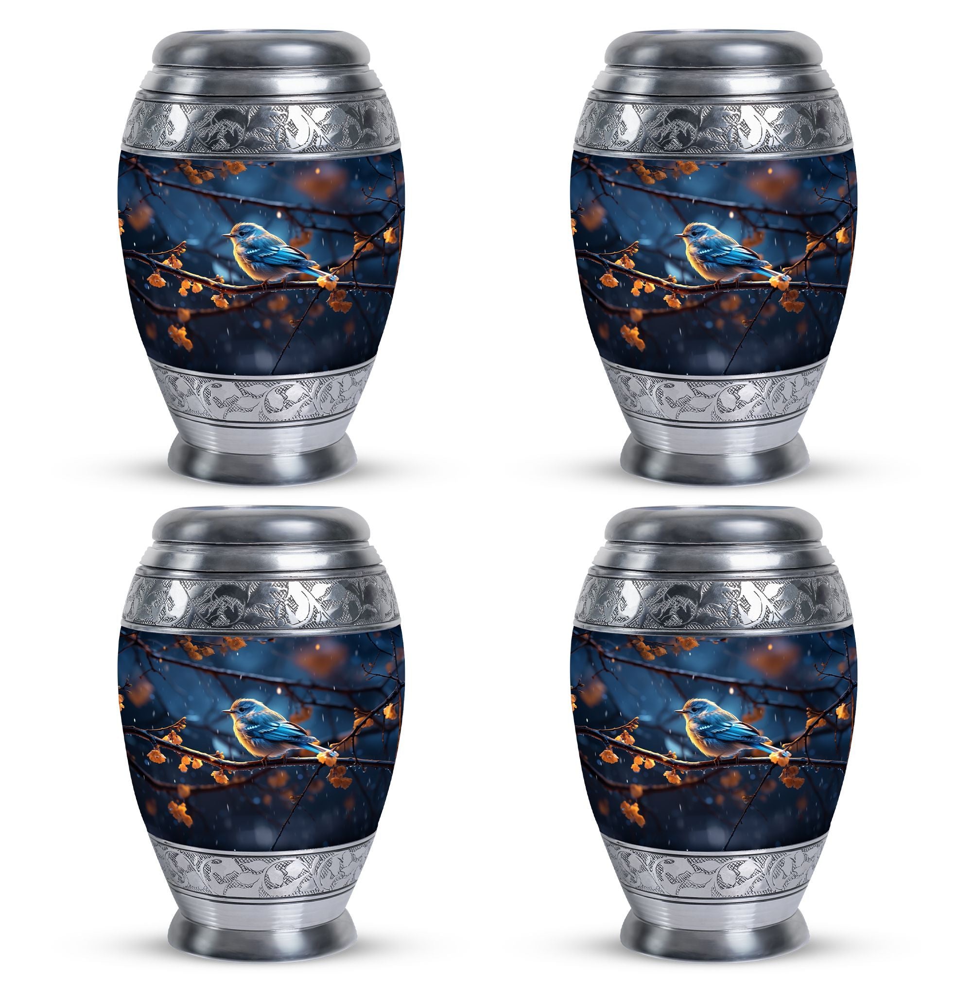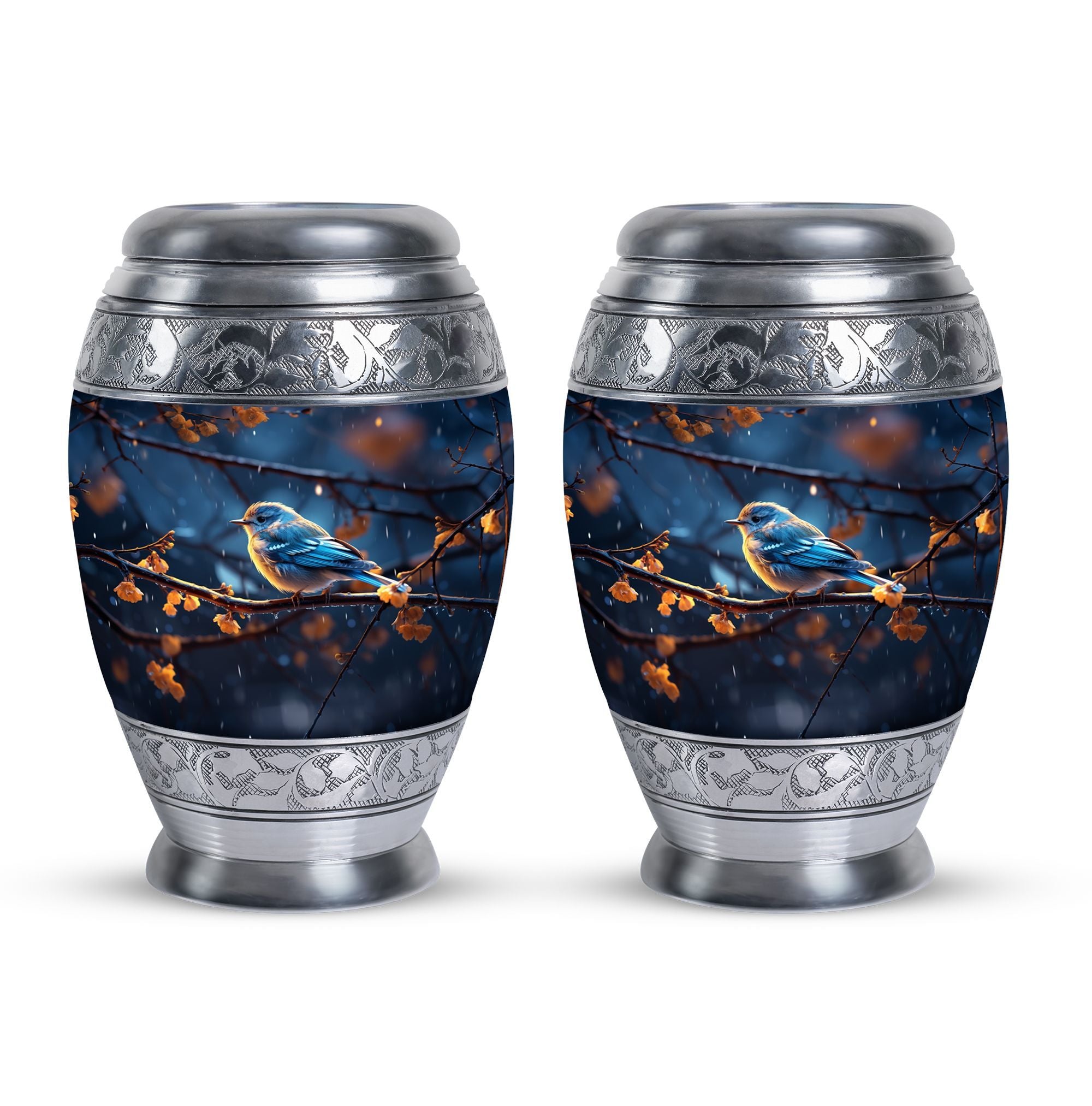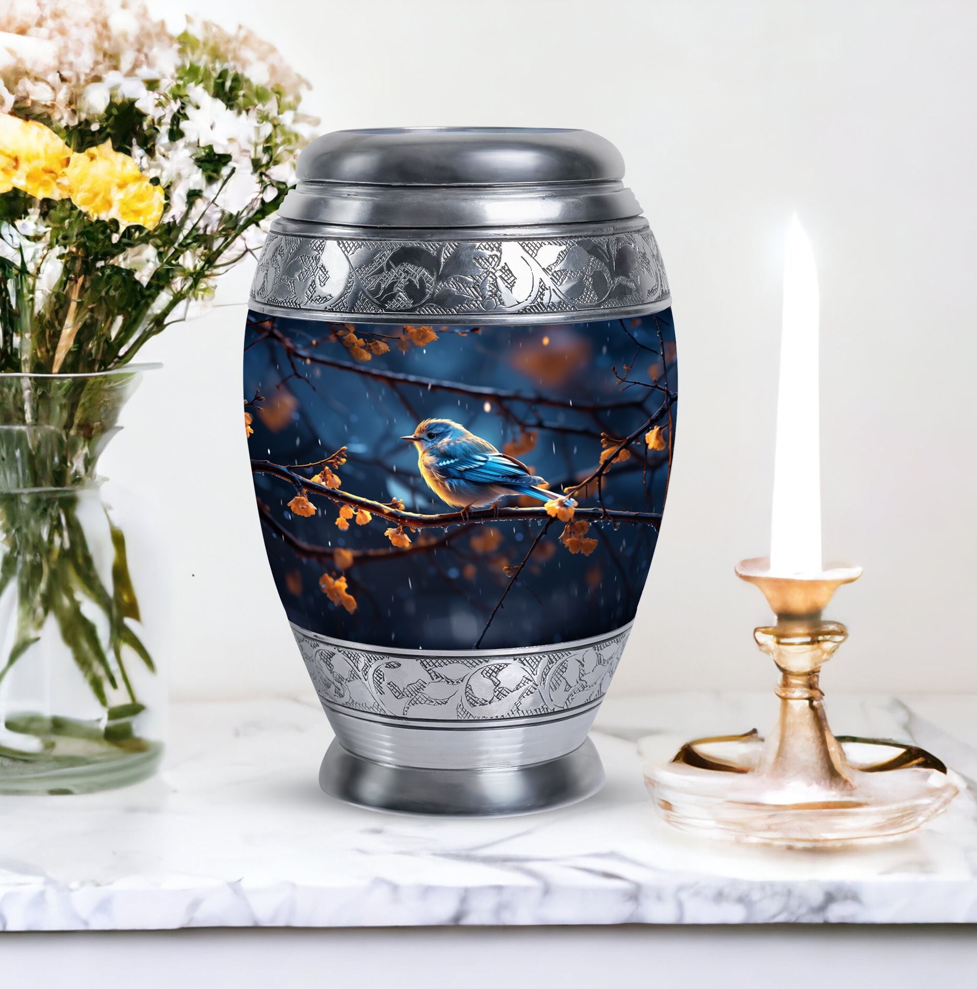 Add an elegant yet poignant touch to your remembrance rituals with our Large Aluminium Red Sparrow Urns for Human Ashes. Sized at a compact 3-inch, this memorial urn has an arresting Classic Urn style, renowned for its timeless appeal. Fashioned from robust and long-lasting aluminium, it bears a capacity of 200 cubic inches to securely hold your loved one's remains. With a hefty weight of 3.3 pounds and dimensions reaching up to 10 inches in height, our funeral ashes container is robust and substantial. We understand the need for personalization in memorial rituals; thus, we offer the option to engrave names on this unique piece. The package arrives with a soft velvet pouch, ensuring a dignified containment for the ashes. A seamless blend of modern urn styles with traditional sensibilities, this product is designed keeping in mind popular search keywords like 'Custom Cremation Urns' and 'Metal Urns for Human Ashes'. Remember your loved ones with respect and serenity with this intricate piece.