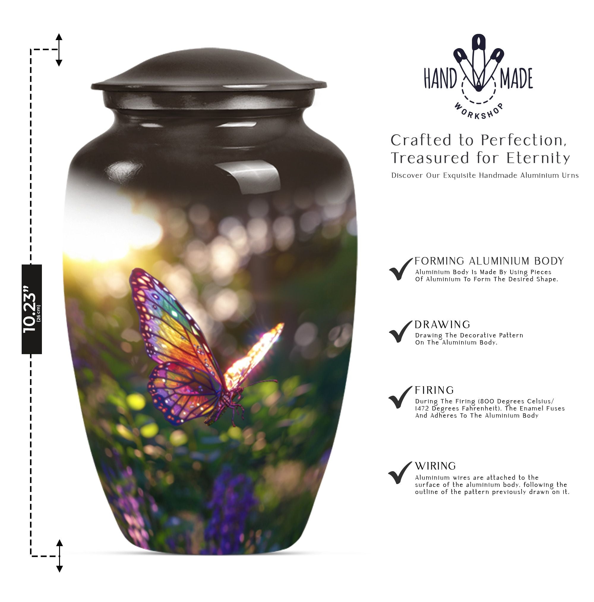 The Colorful Butterfly Memorial Urn – Vibrant Cremation Tribute For Ashes is a beautiful resting place that symbolizes love, transformation, and eternal peace. With its radiant rainbow butterfly urn design, this piece serves as a warm reminder of cherished memories.