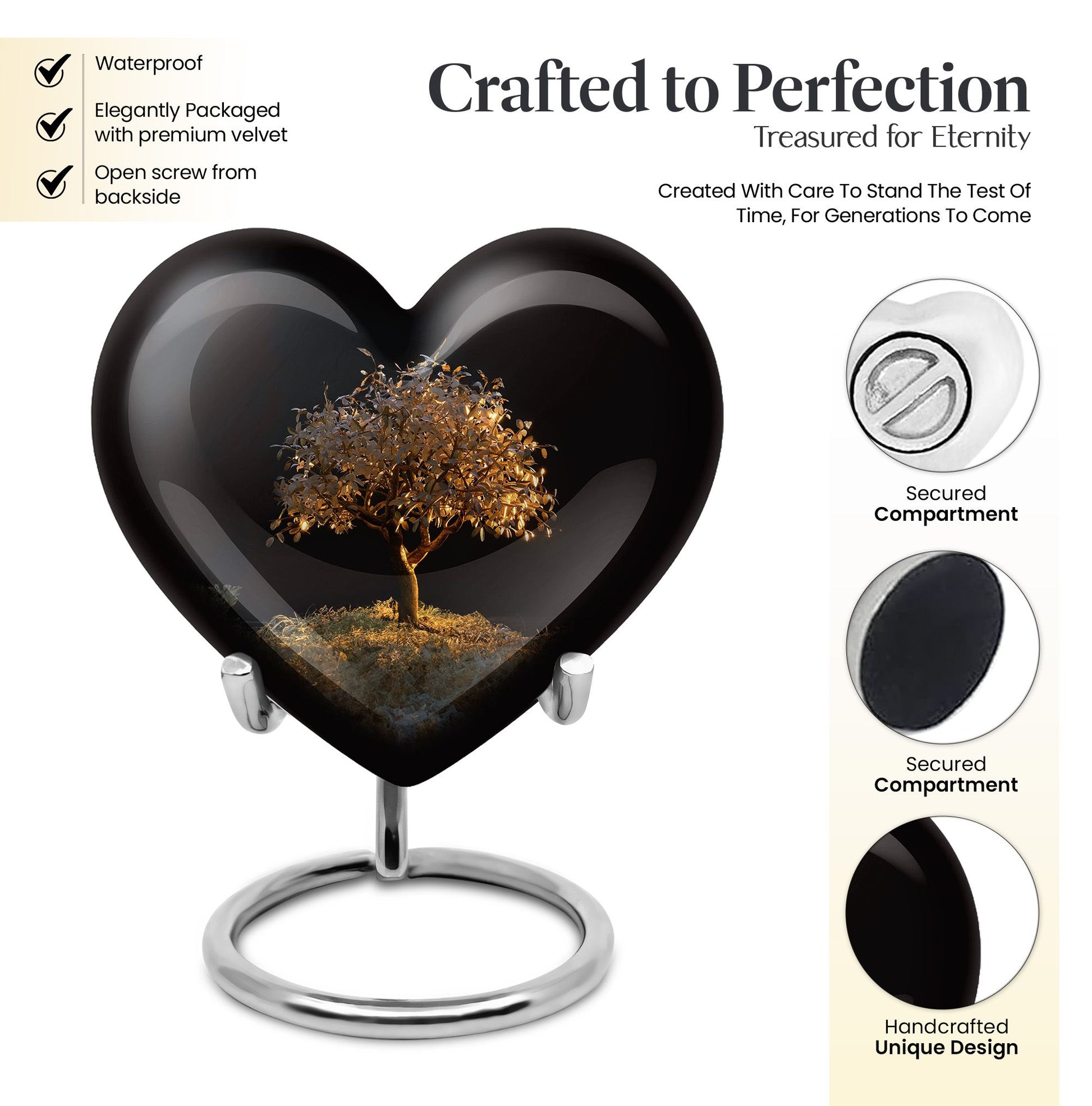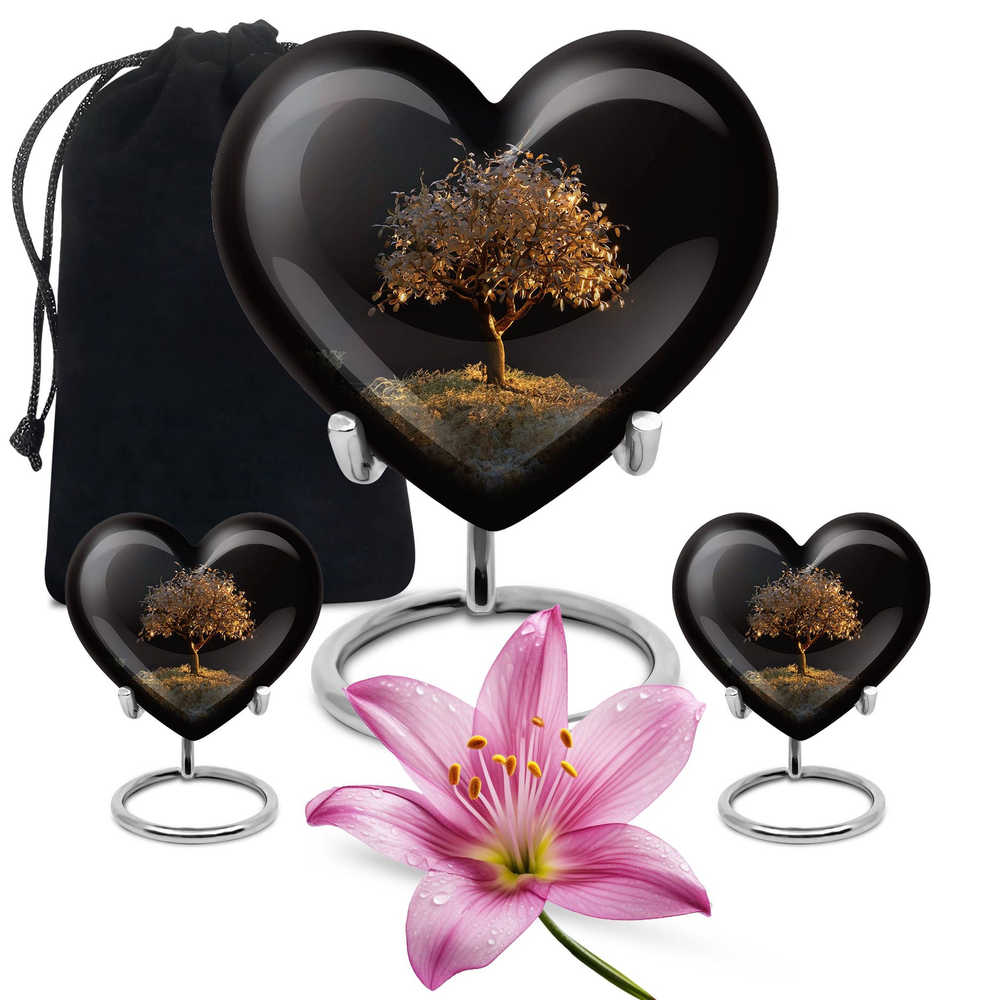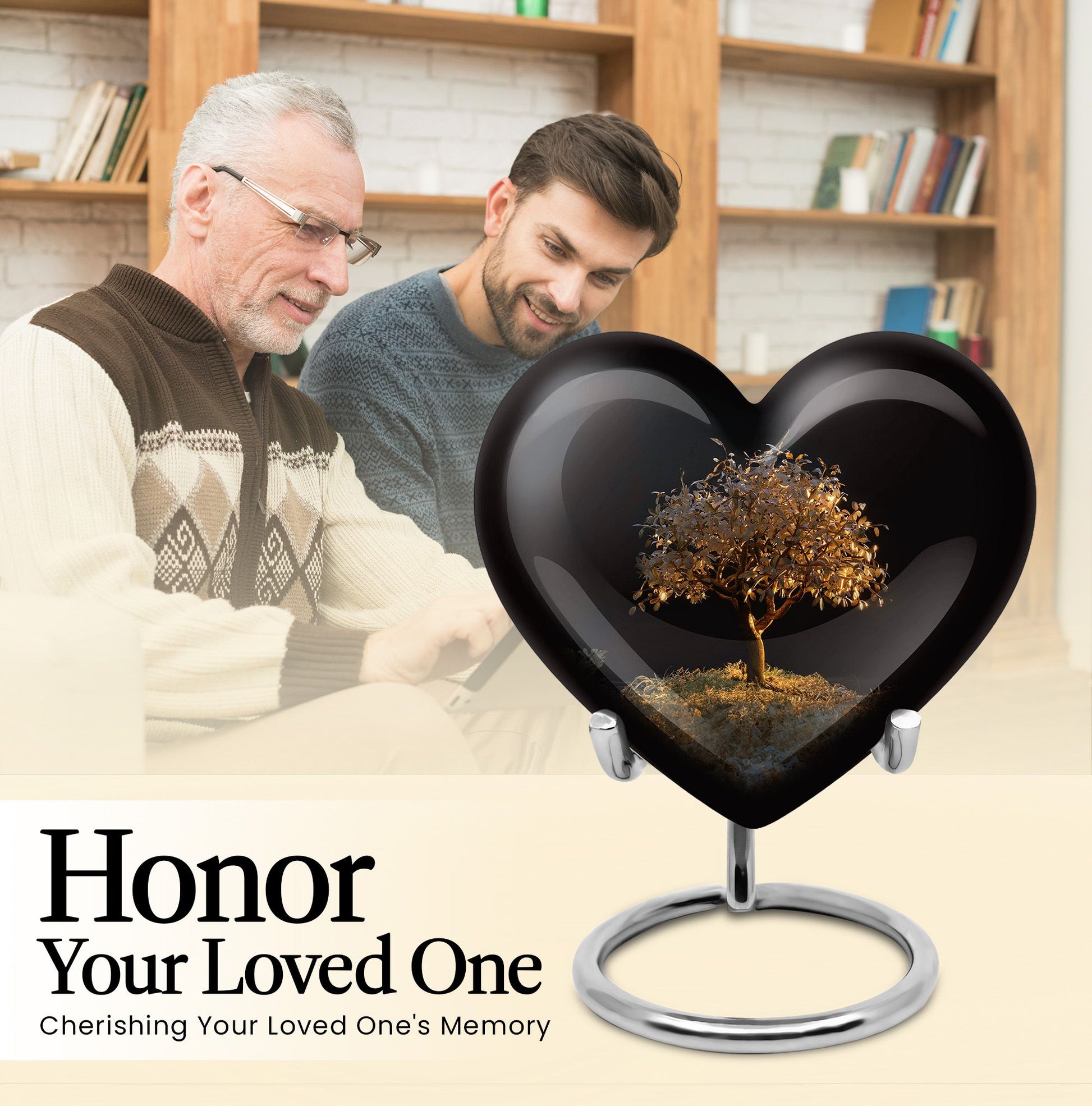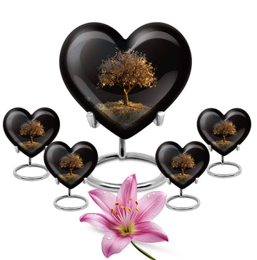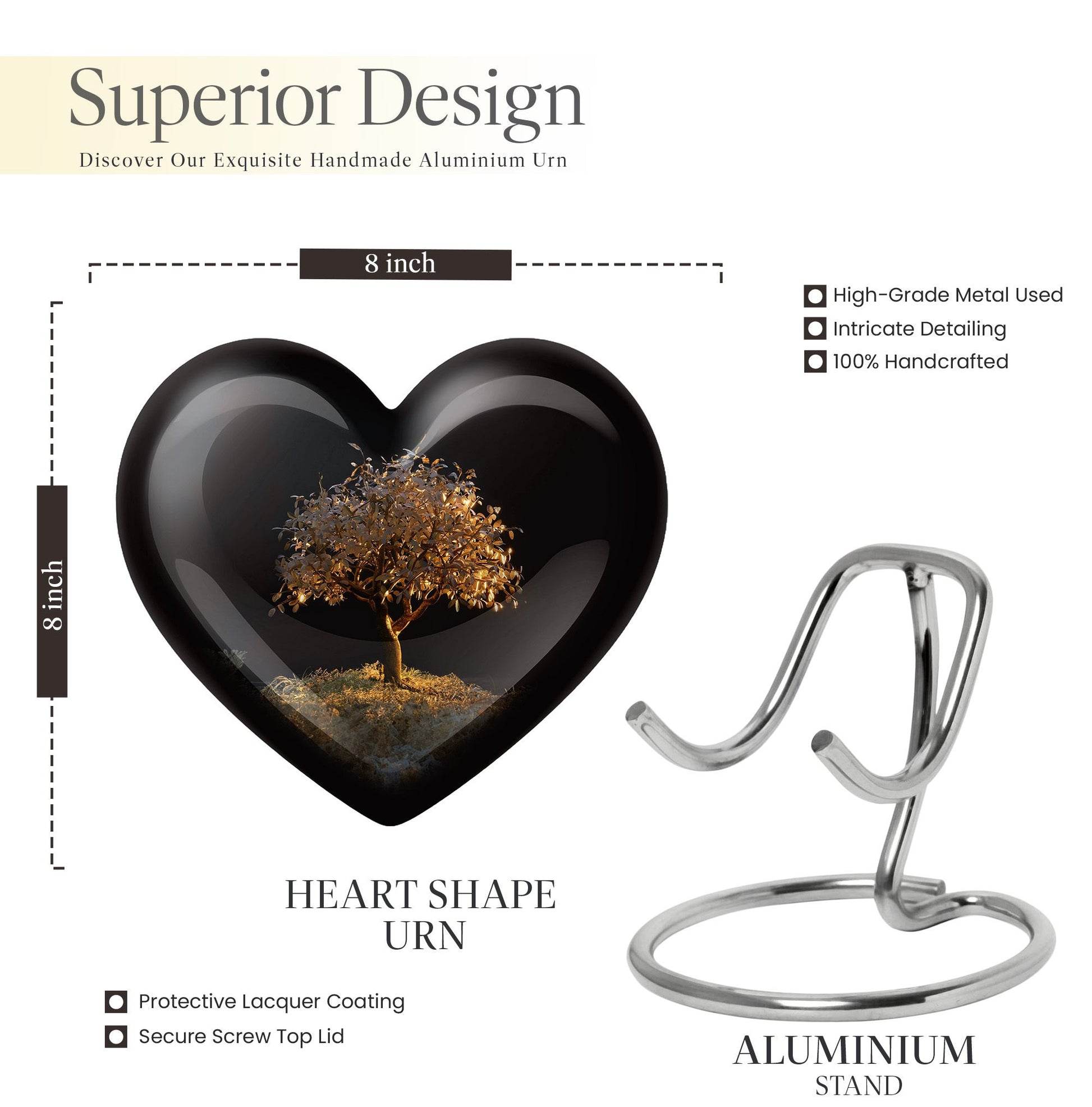 Heartfelt and serene, this large-sized 'Tree of Life Urn' is a luminous memorial urn designed to hold up to 200 cubic inches of ashes. Specially crafted for both men and women, this 10-inch cremation urn is constructed from high-quality aluminium, ensuring solid weight (3.3 pounds) and long-lasting use. Conveying an abstract theme, this item is a part of our memorial ceremony supplies meant to honor the memory of your loved ones. Through personalization option, the urn can be further enhanced with engraved names, adding a unique touch to it. Along with the urn, a velvet pouch is provided for safe containment of the ashes. This cremation urn stands apart for aesthetics, longevity, and ease of use. Consider this cremation urn as an elegant tribute to your loved one's memory. Please note, this product caters mainly towards adult and senior audiences.