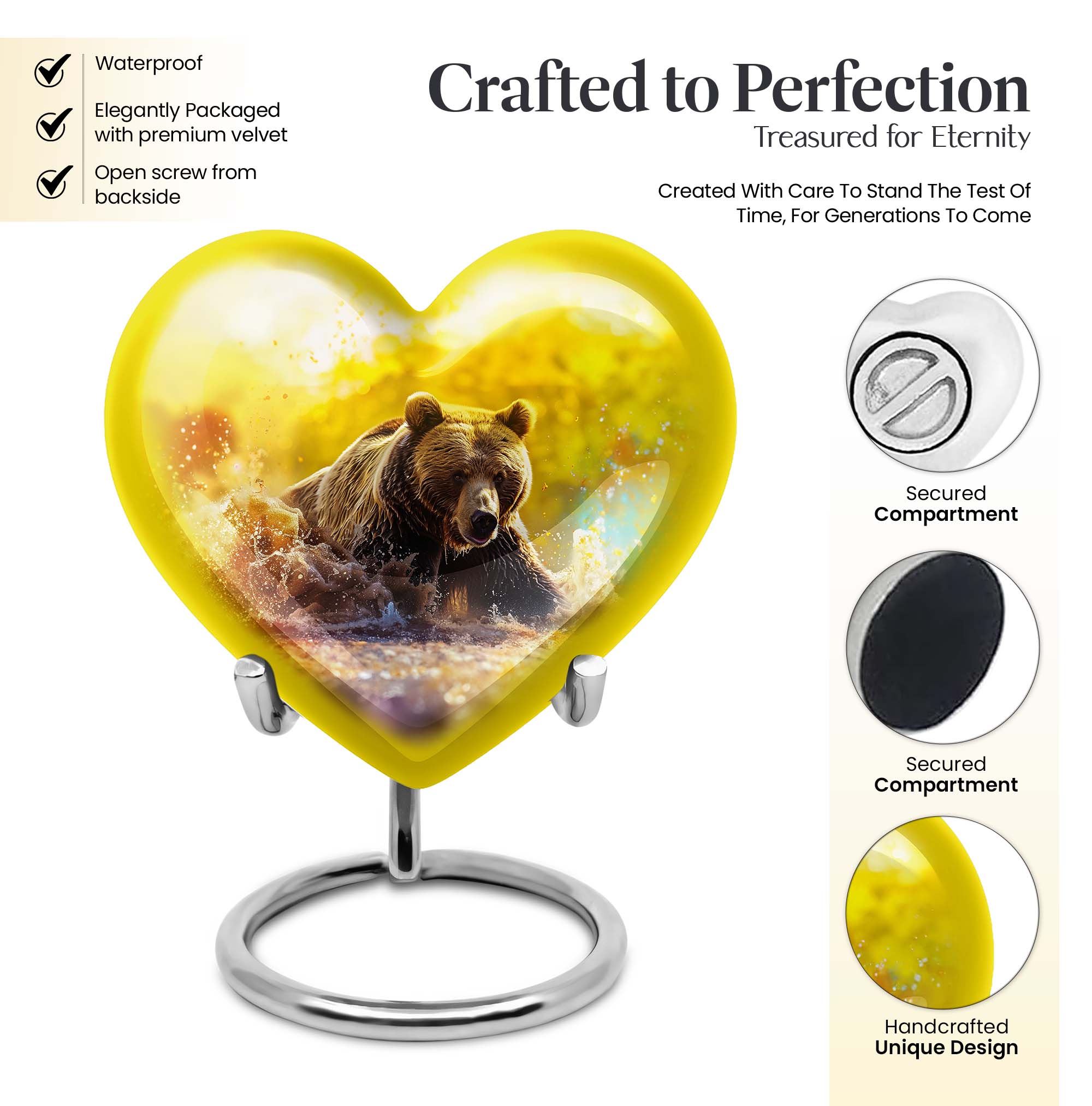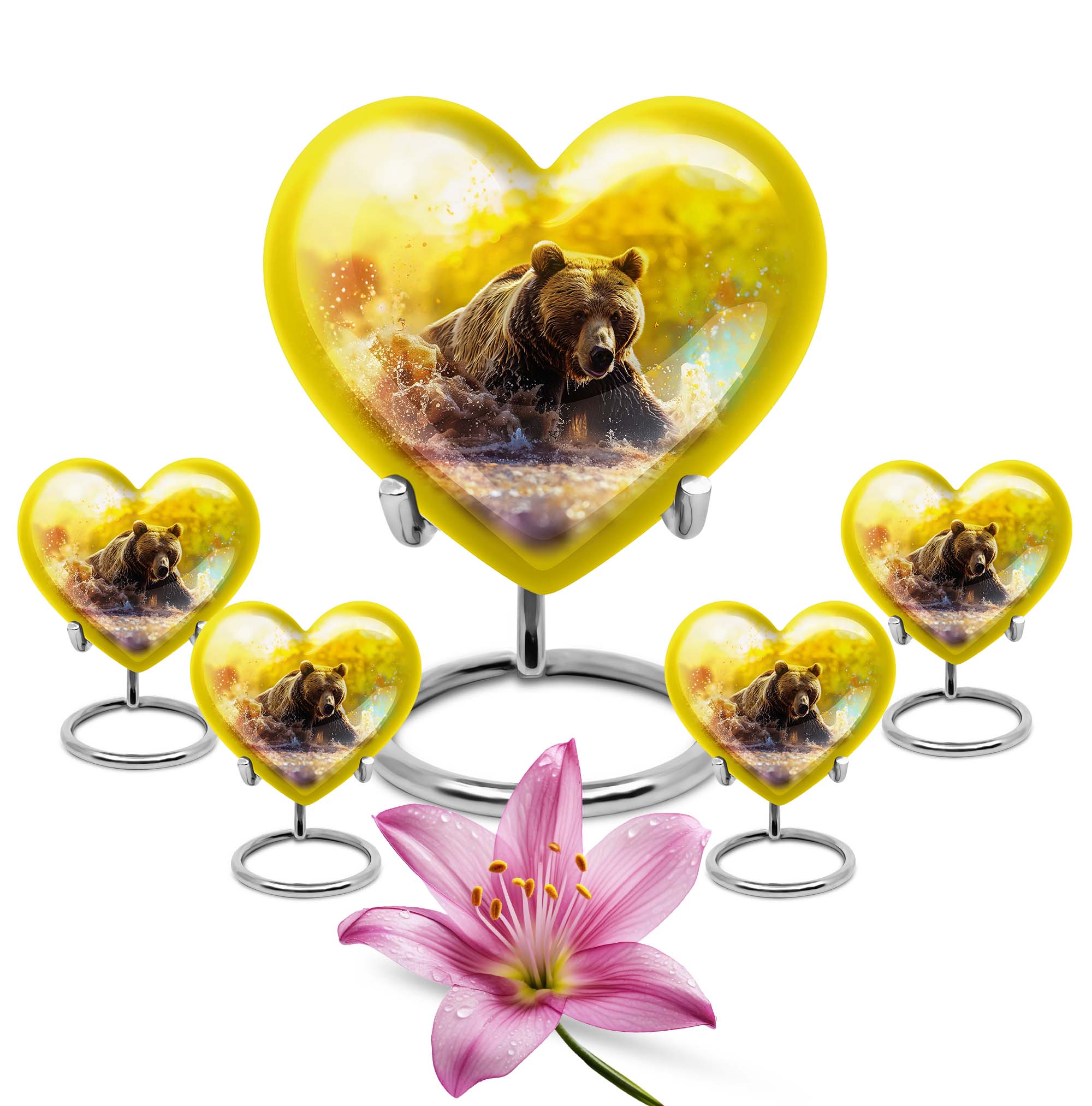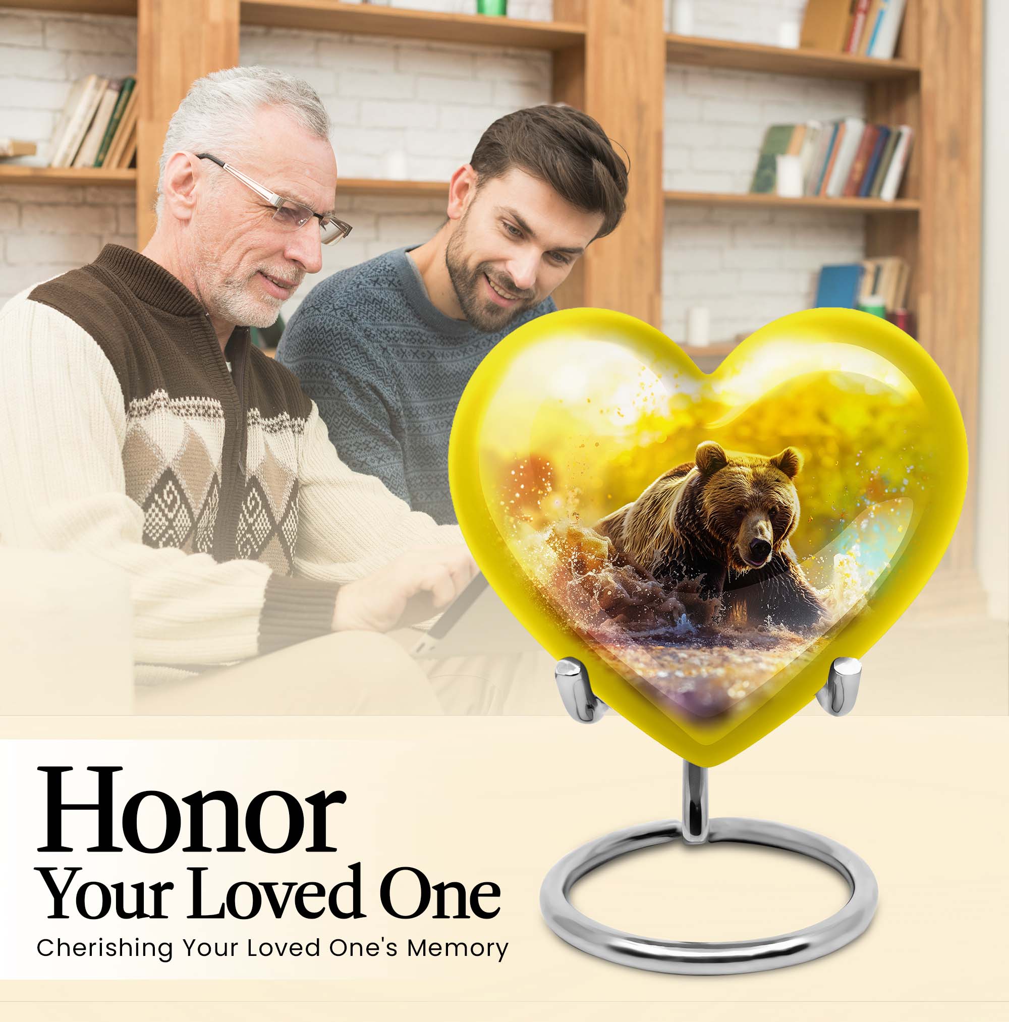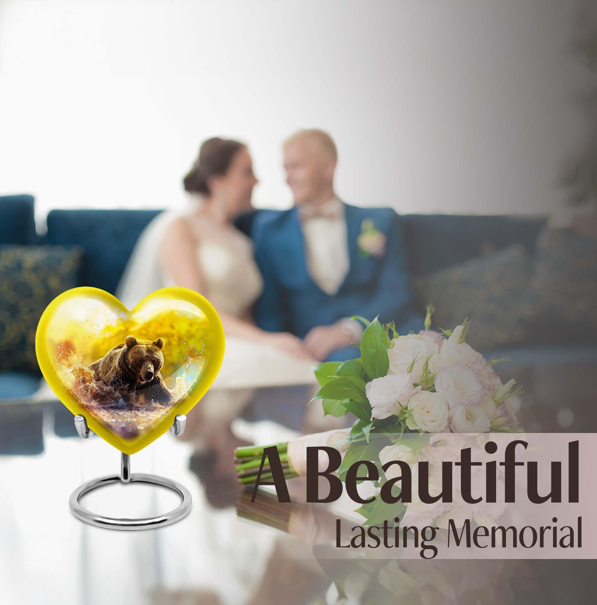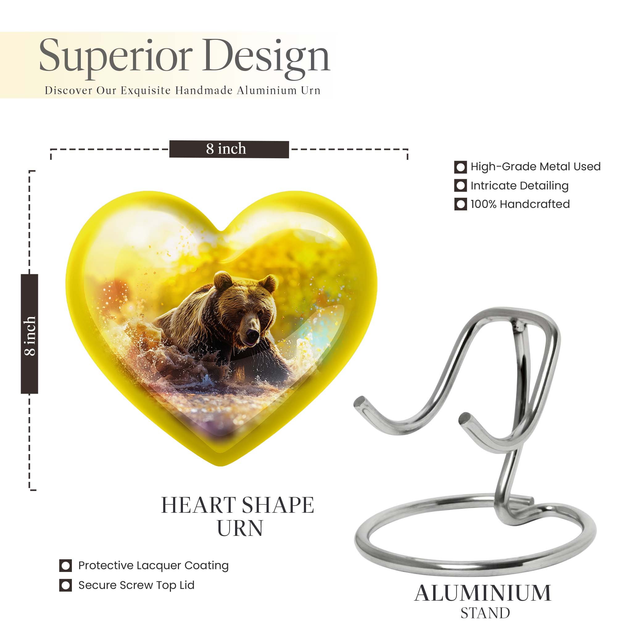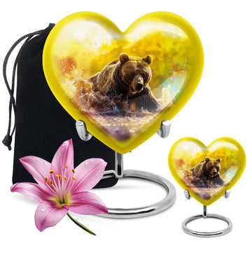 Relocate your loved ones remains with a touch of respect and warmth with the loving Heart Urn. Our Purple Meadow themed Bear Urn, sized at 10 inches, offers a stately and thoughtful resting place solution. Made from the resilience of lightweight Aluminium, it weighs a comfortable 3.3 pounds and can contain up to 200 cubic inches of remains. This Large Urn stands high at 10 inches. In addition to its visually appealing theme, the urn also offers a customization feature where engraved names can be added for a more personalized touch. The cremation dad urn is skillfully designed, and it comes with a velvet pouch to carefully contain the ashes. From adult men ashes to human ashes, it serves as an affordable and meaningful memorial urn. Ditch the commonplace and choose our high-quality, large urn with iridescent metal texture for your ceremonial needs.