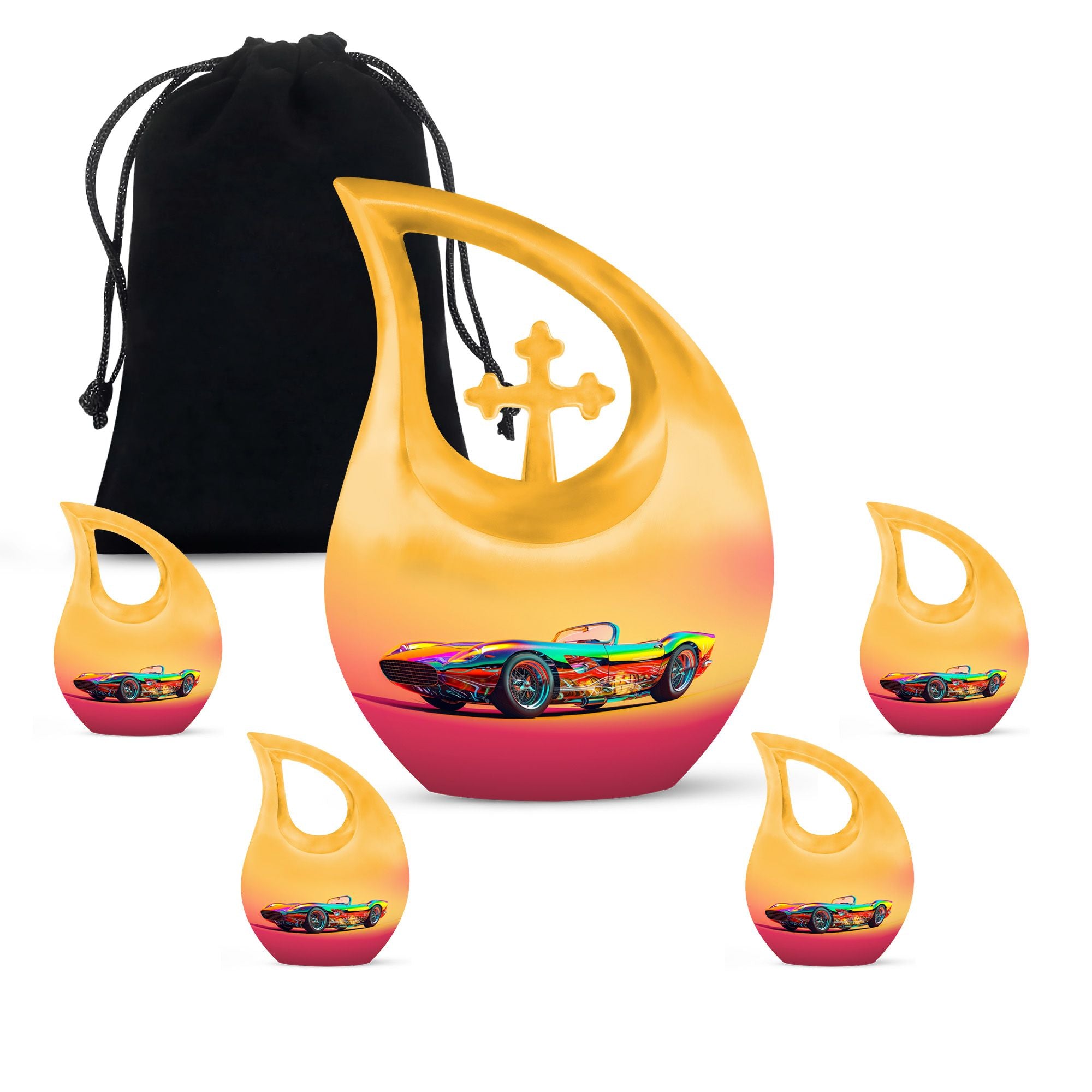 Honor your beloved dad’s adventurous spirit with the Colorful Race Car Cremation Urn, a heartfelt way to preserve memories that will last forever. Designed with care and compassion, this elegant memorial piece symbolizes speed, strength, and the passion of a life well-lived. Whether displayed at home or used as a funeral urn for adult ashes men, it offers a touching reminder of cherished moments shared. This urn beautifully represents the deep bond between a father and his family, making it one of the most meaningful urns for human ashes adult male dad available today.