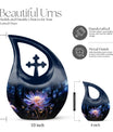 Exquisitely handcrafted, this urn mom ashes large piece features a floral artistic design that beautifully complements any home or memorial space. Built with precision, this cremation urn mom offers durability and sophistication while maintaining a soft, feminine appeal. The high-quality finish makes it one of the most cherished urns for human ashes adult female mom available, designed to last for generations. Whether displayed at home or used for burial, its design reflects both strength and serenity.