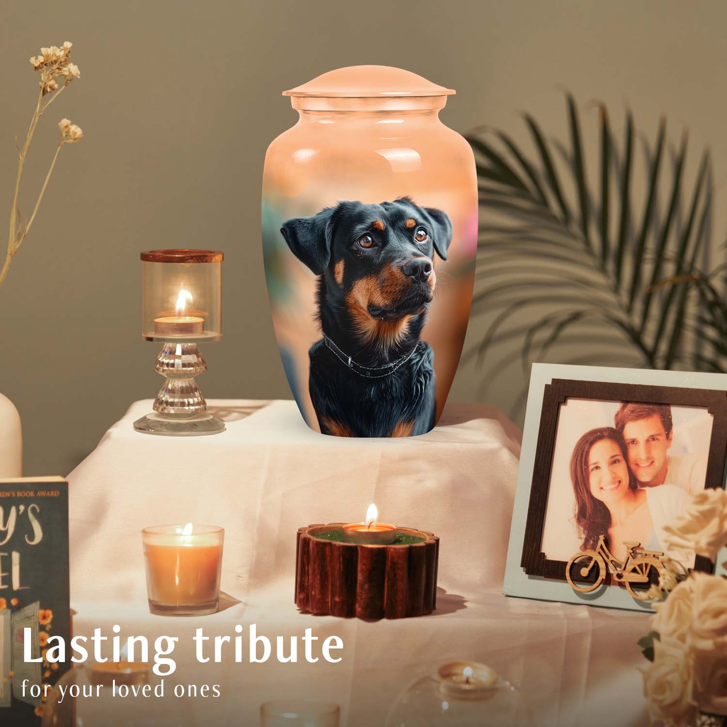 This dog memorial urn stands as a comforting reminder of your Rottweiler’s life and loyalty. Whether placed in your living room, on a mantel, or in a special remembrance space, it transforms loss into love — a symbol of companionship that endures forever.