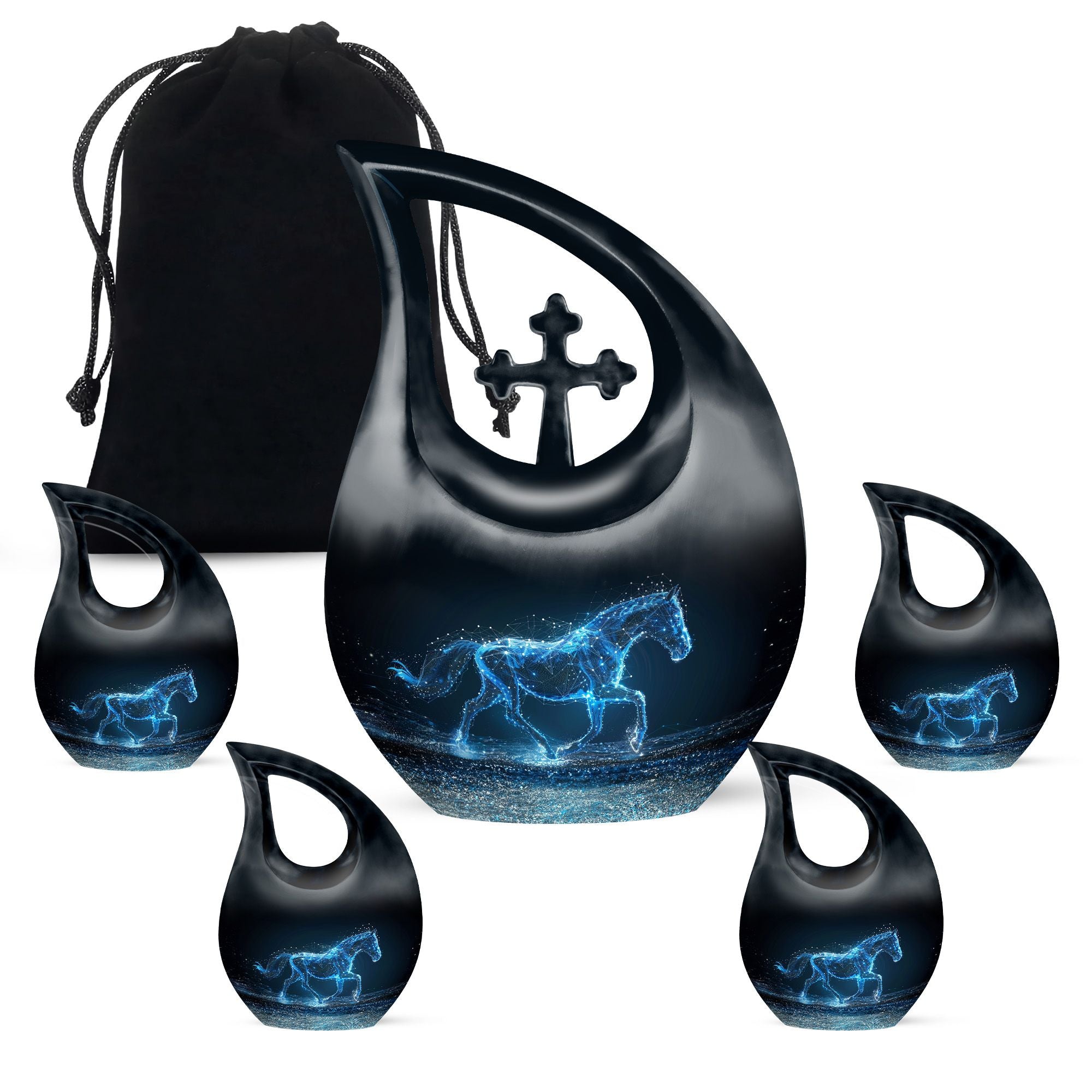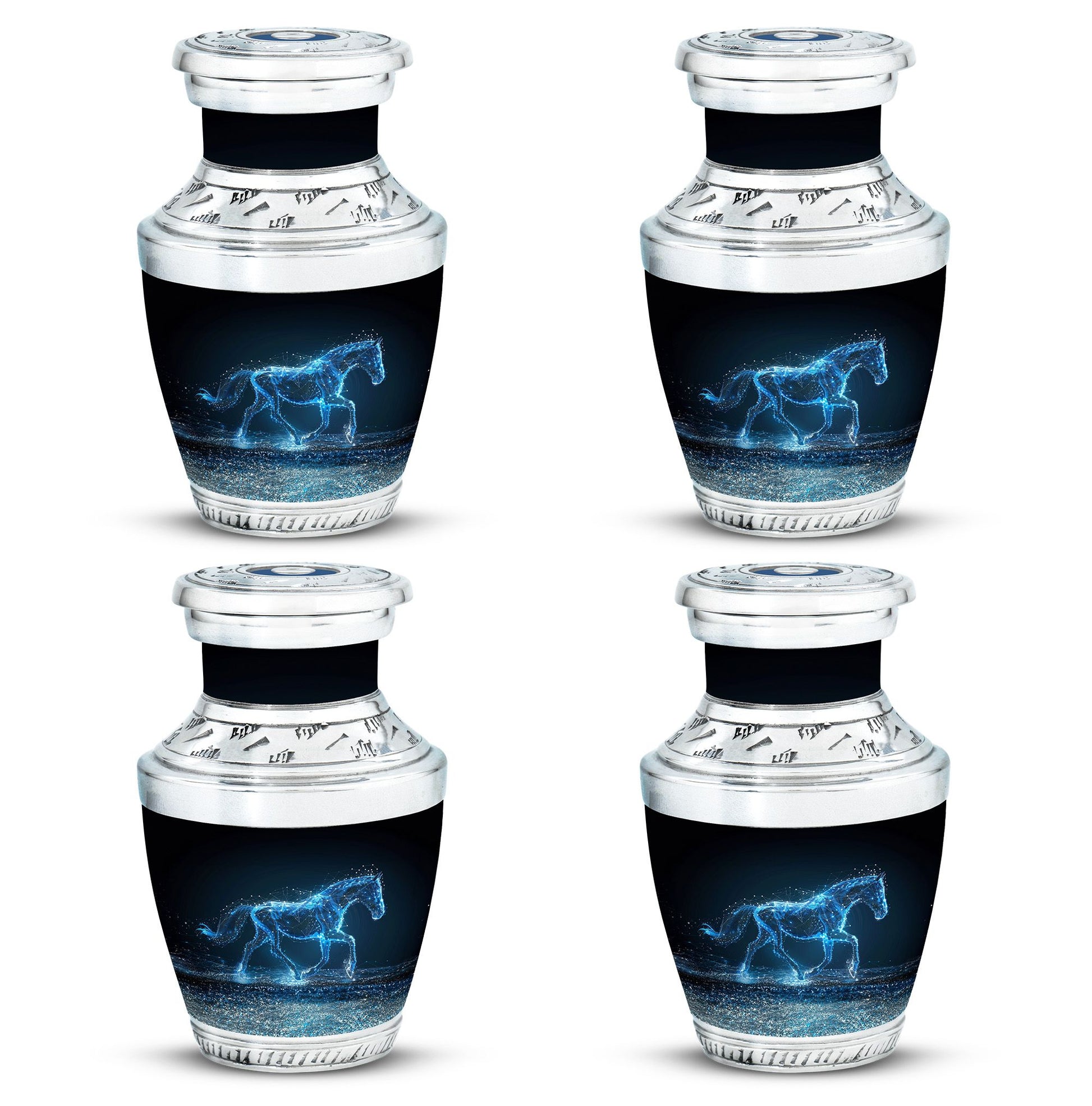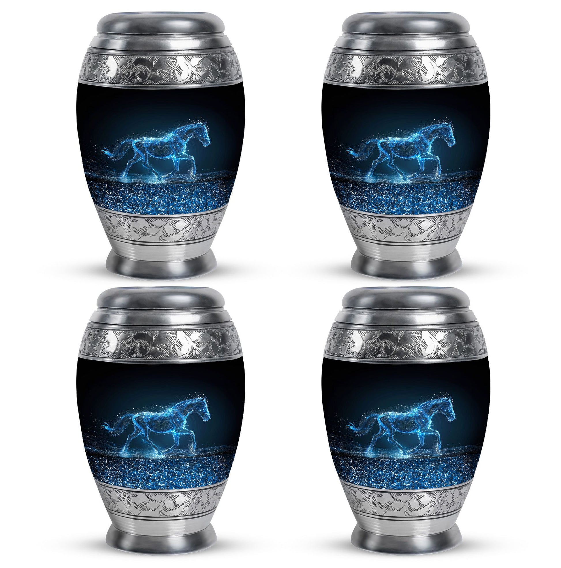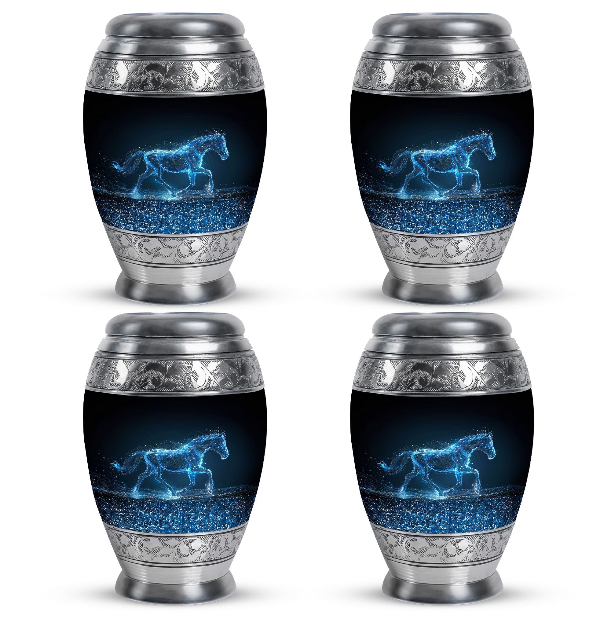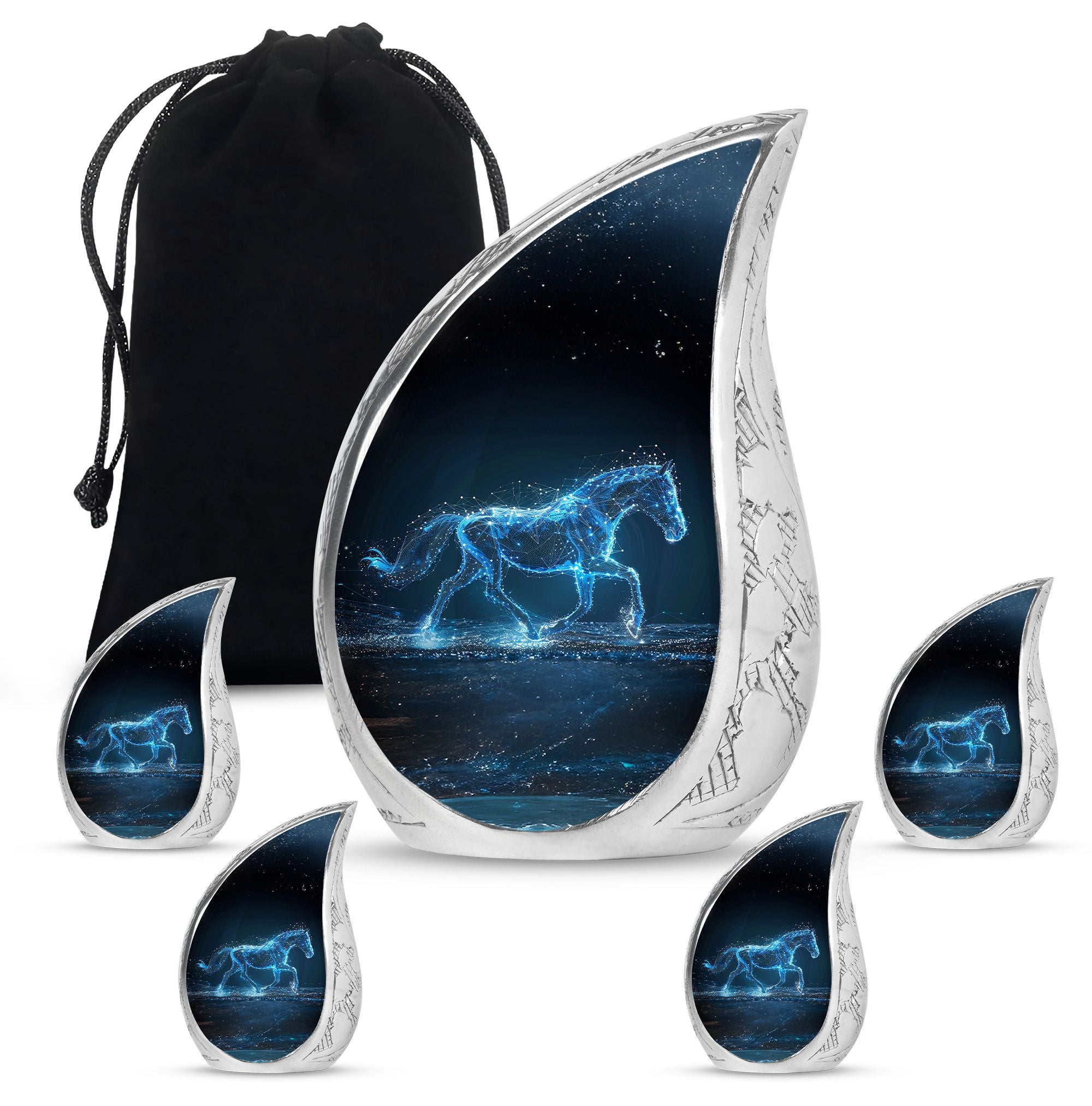 Honor a loved one with the Neon Blue Horse Cremation Urn, featuring a powerful running horse design symbolizing strength, freedom, and spirit. This adult urn is suitable for men and women, offering a meaningful tribute that combines artistry with lasting quality.