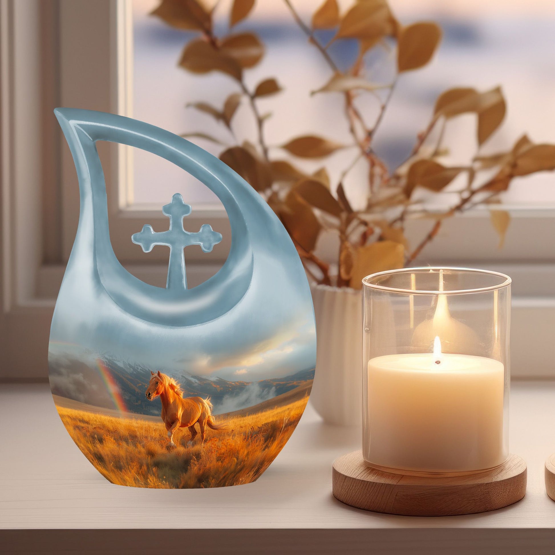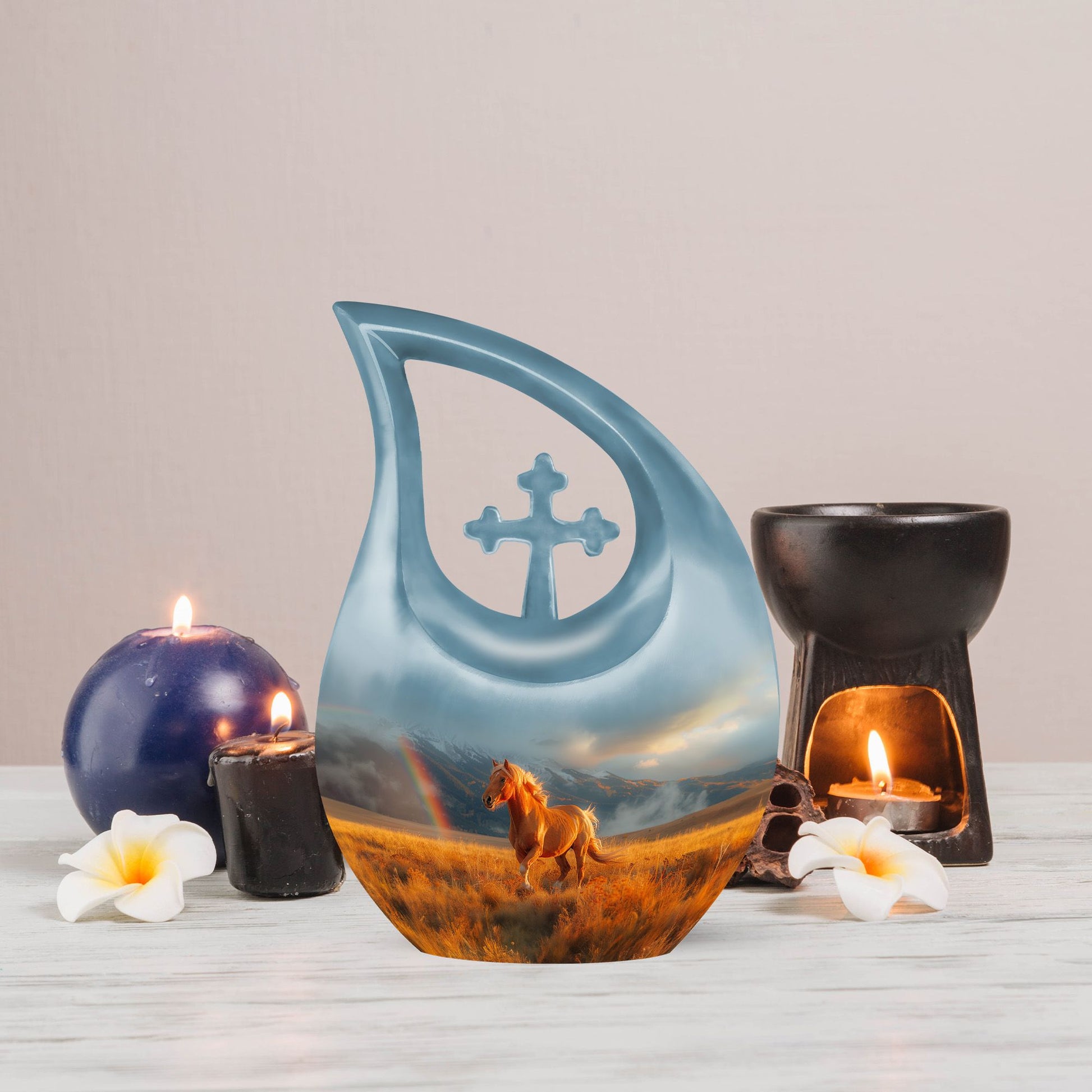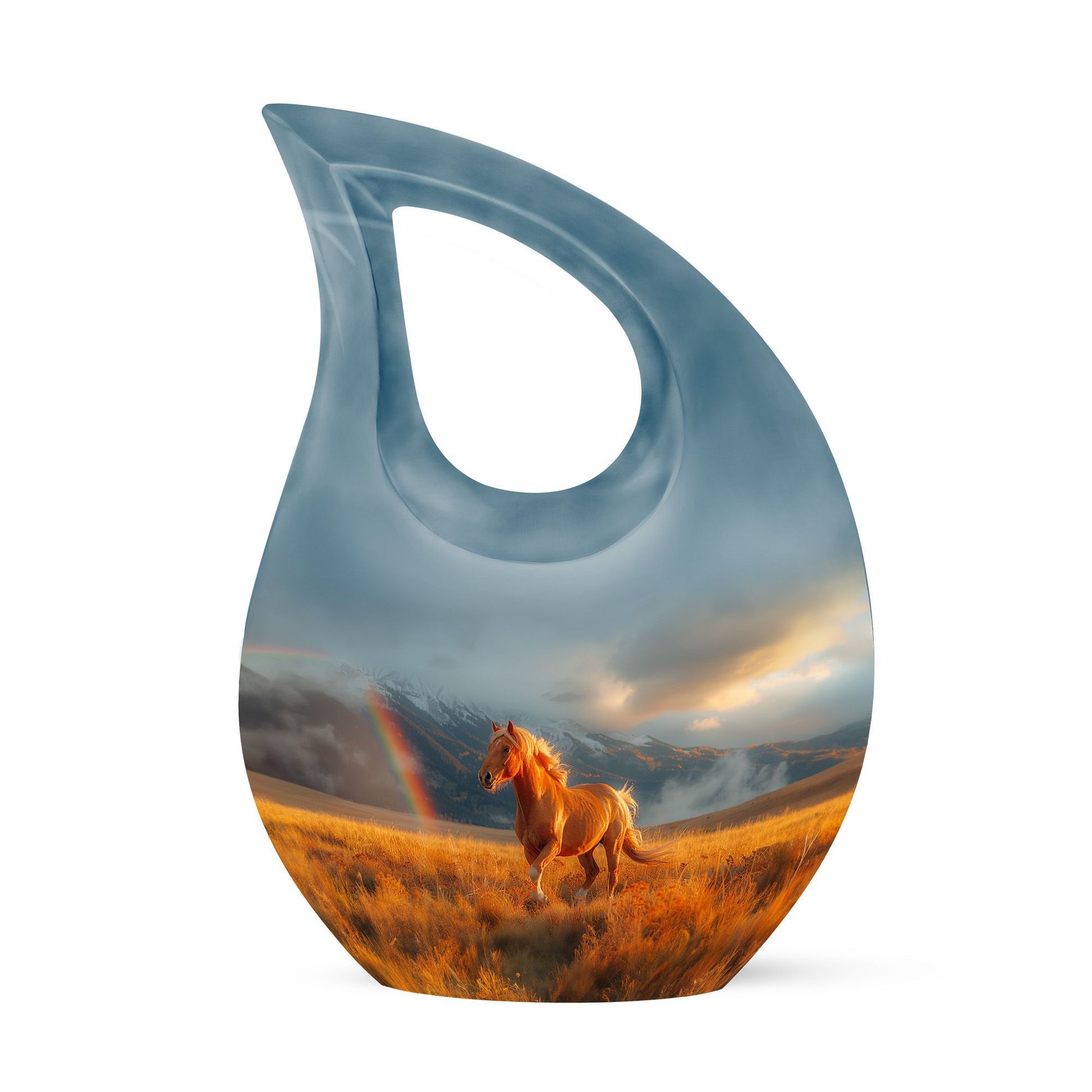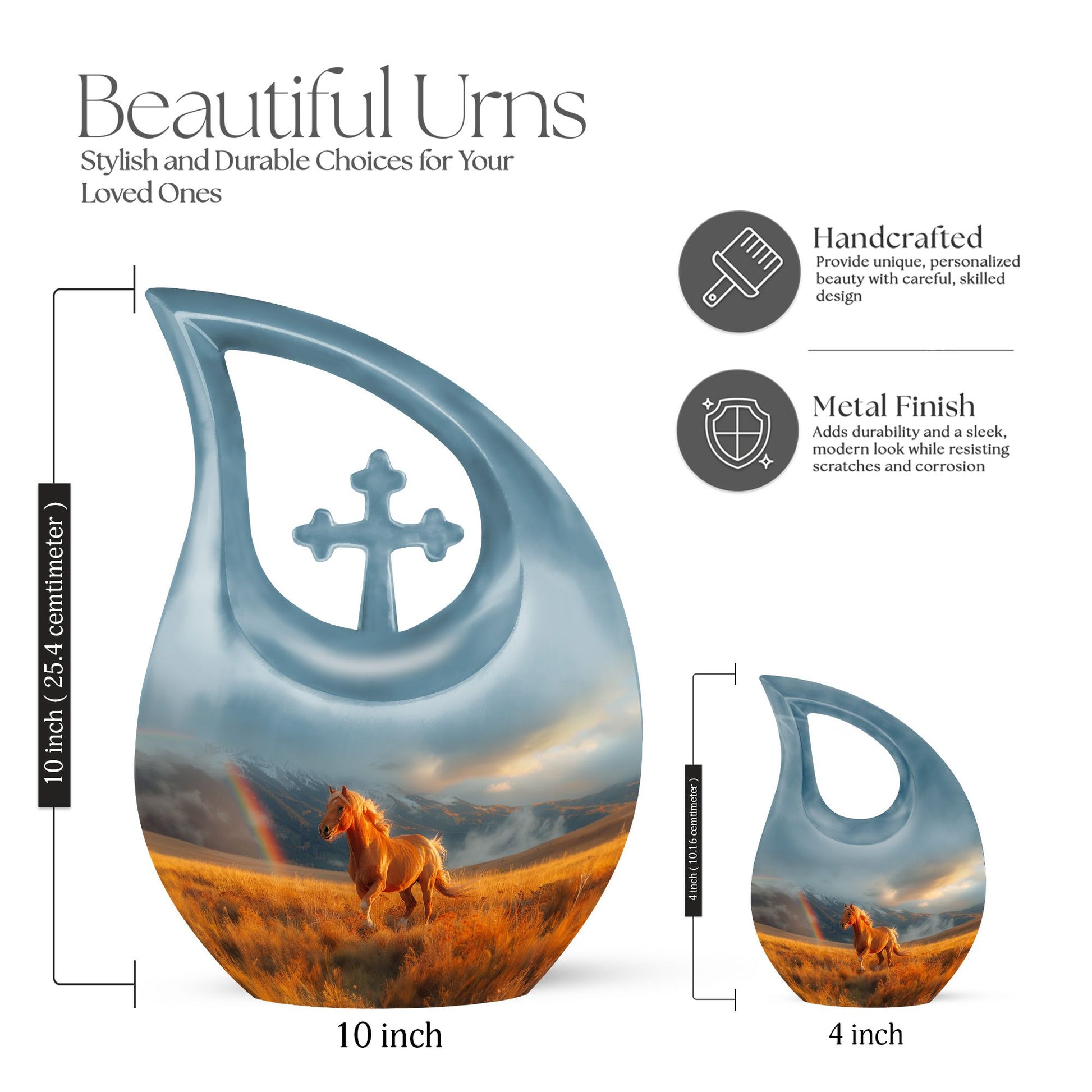 Honor a cherished life with this Running Horse Memorial Urn, a powerful and meaningful tribute designed for families seeking a large urn for ashes adult male, a graceful large urn for ashes for women, or a secure memorial for large urns for human ashes adult female. The running horse symbolizes freedom, strength, and a spirited journey forward, offering comfort during remembrance.