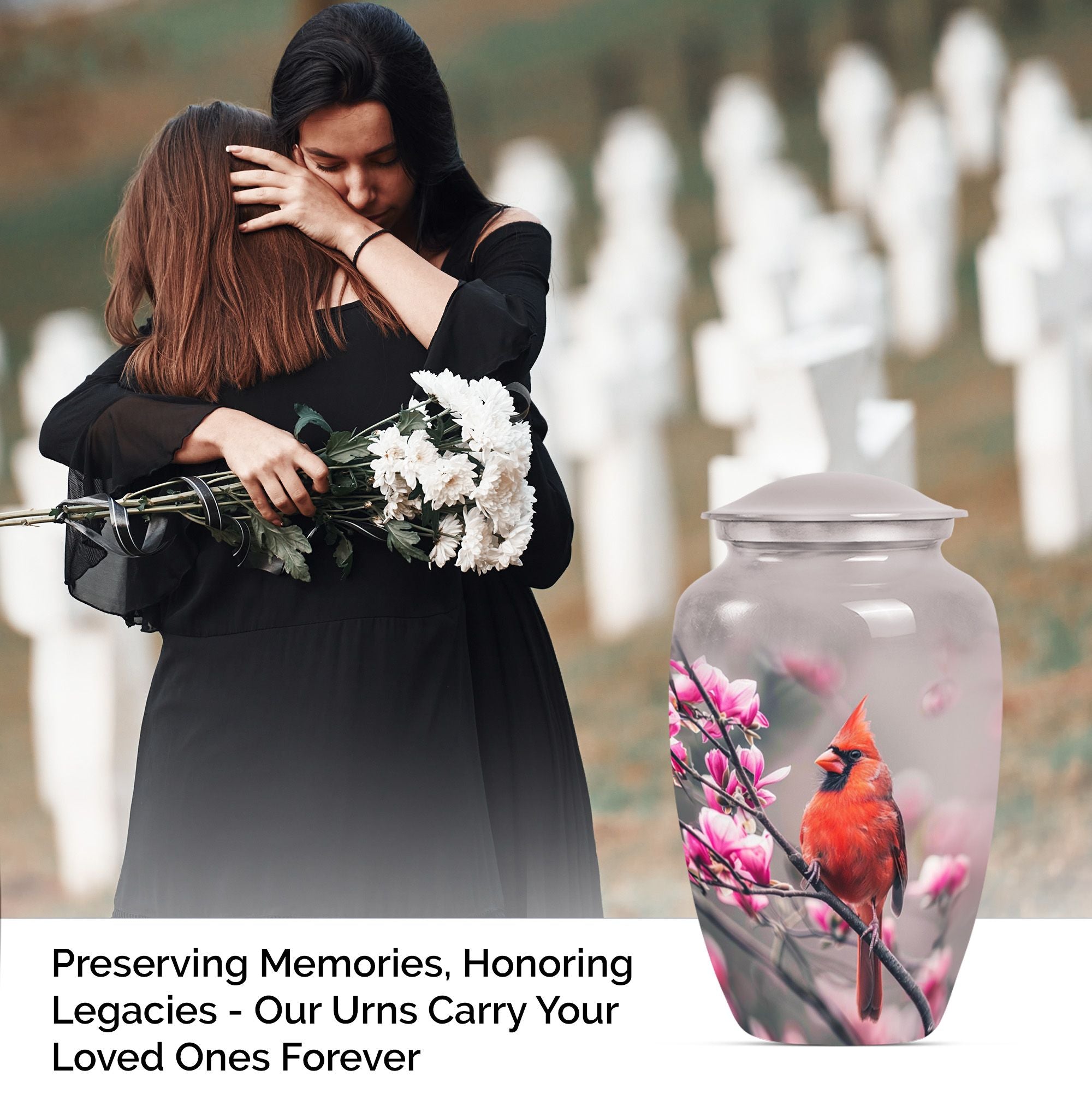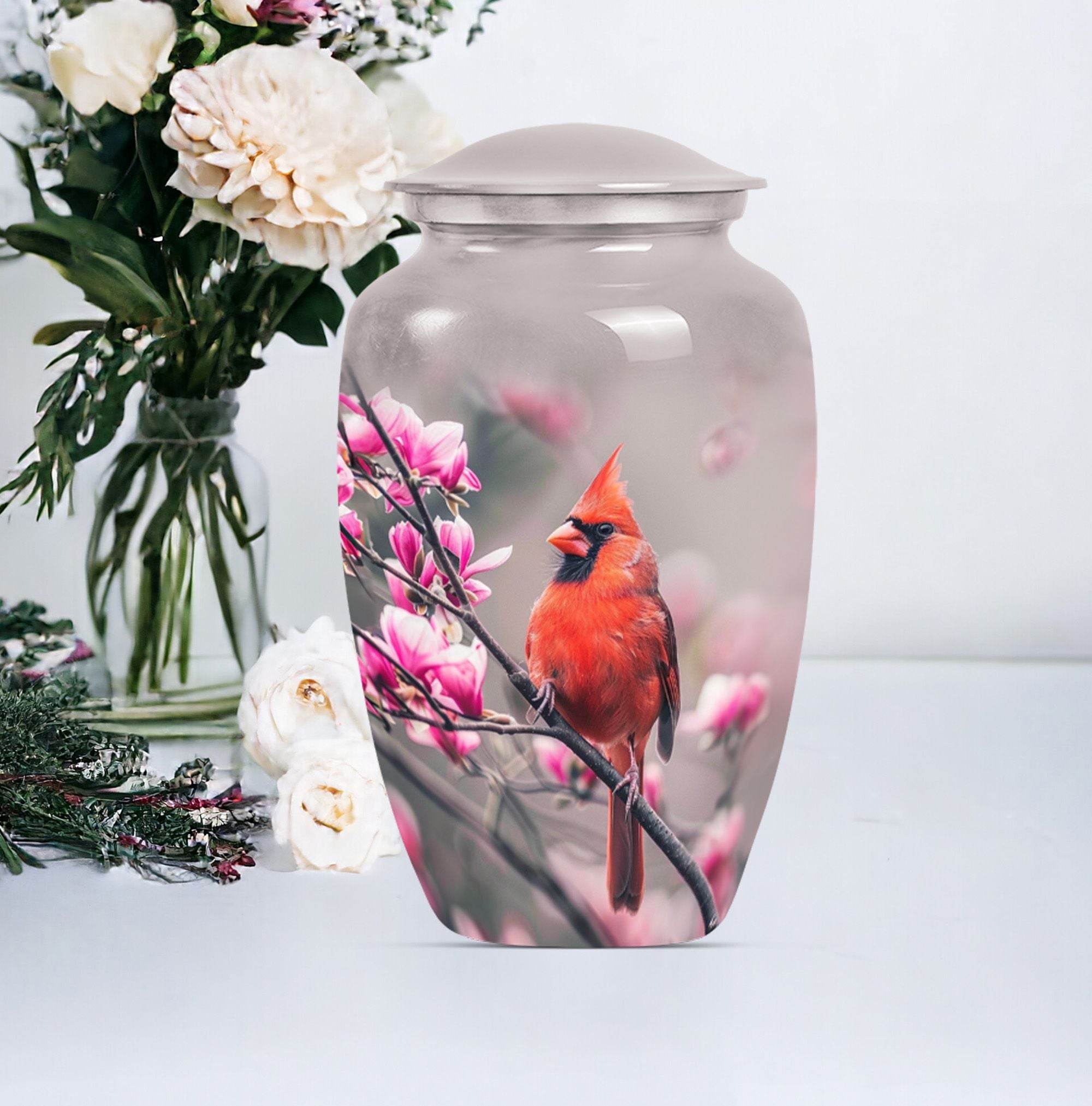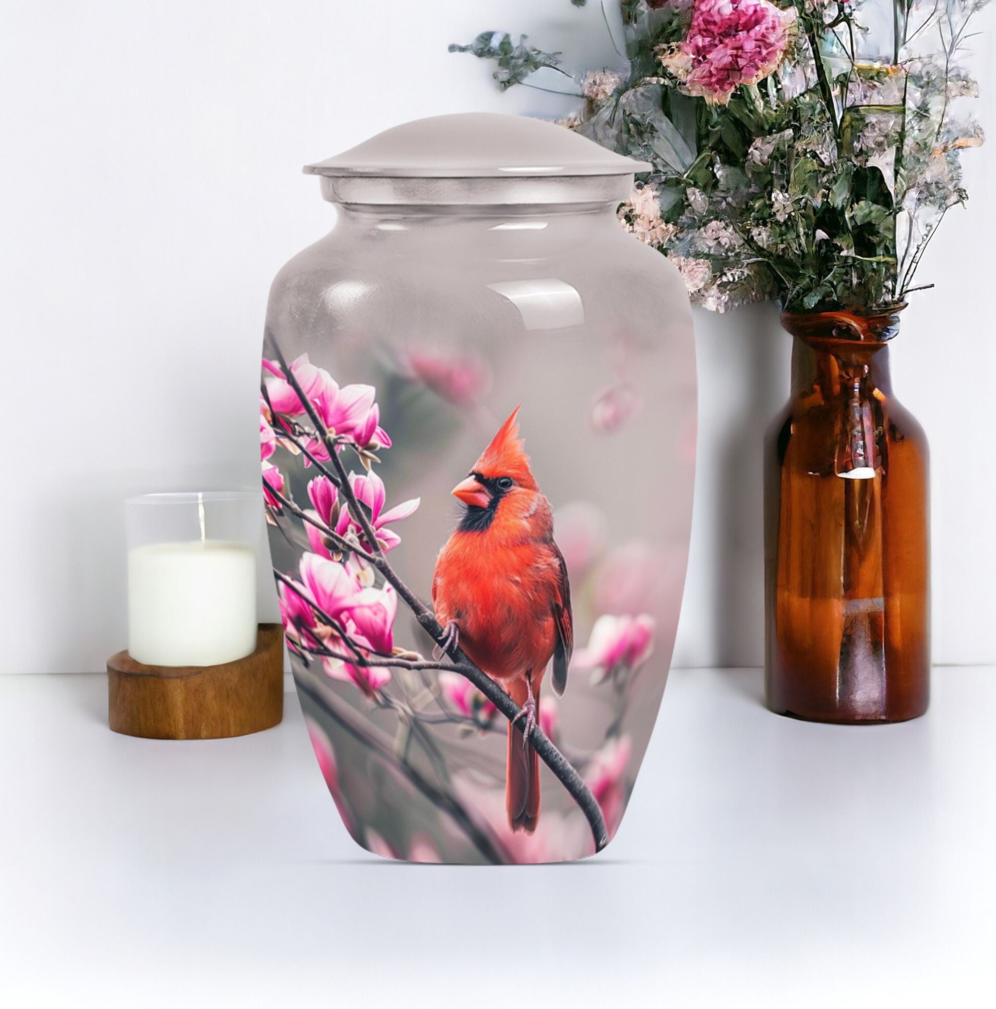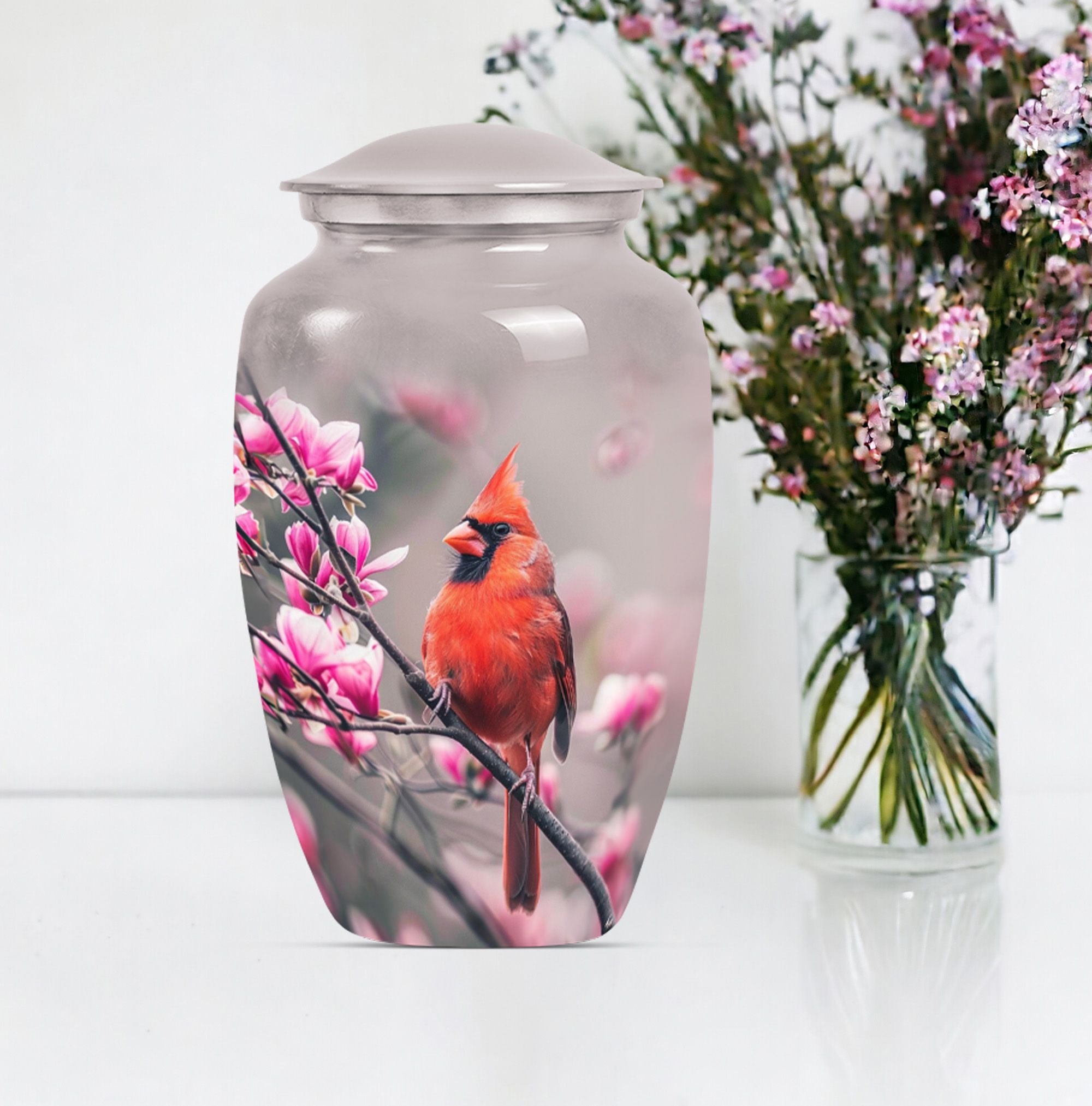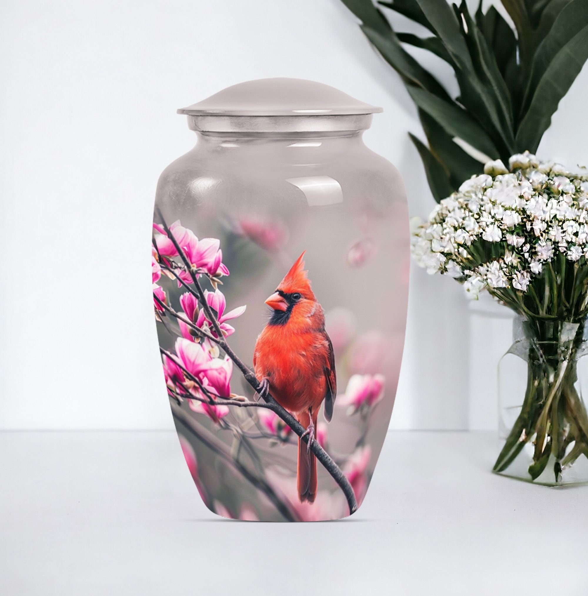 Sacred Cardinal Bird Embrace: A Stately Cremation Urn For Ashes