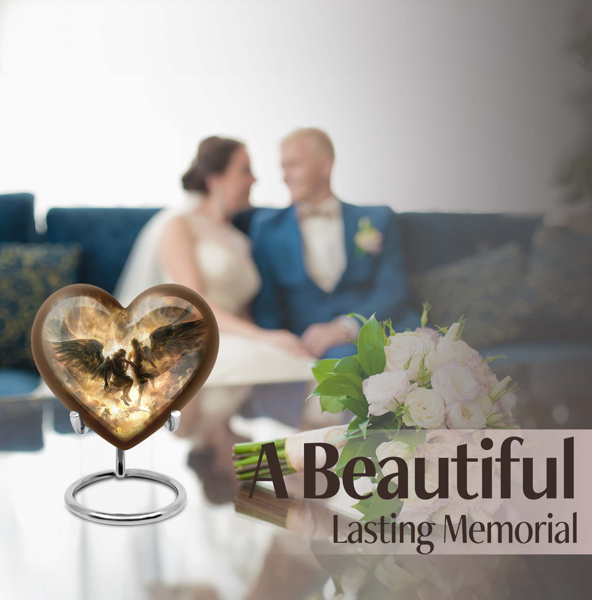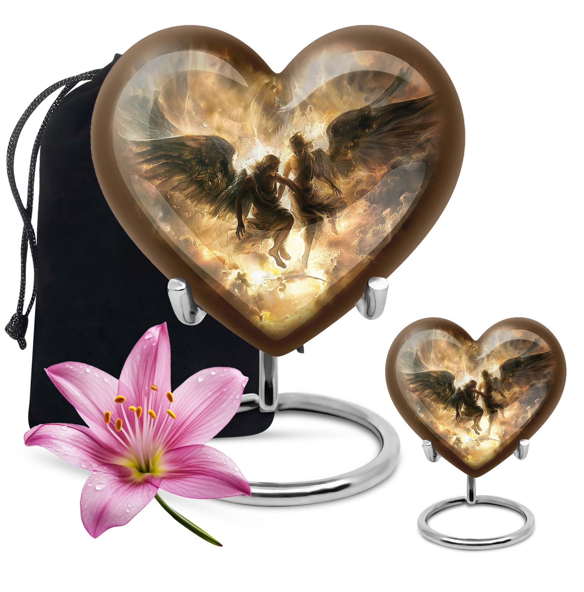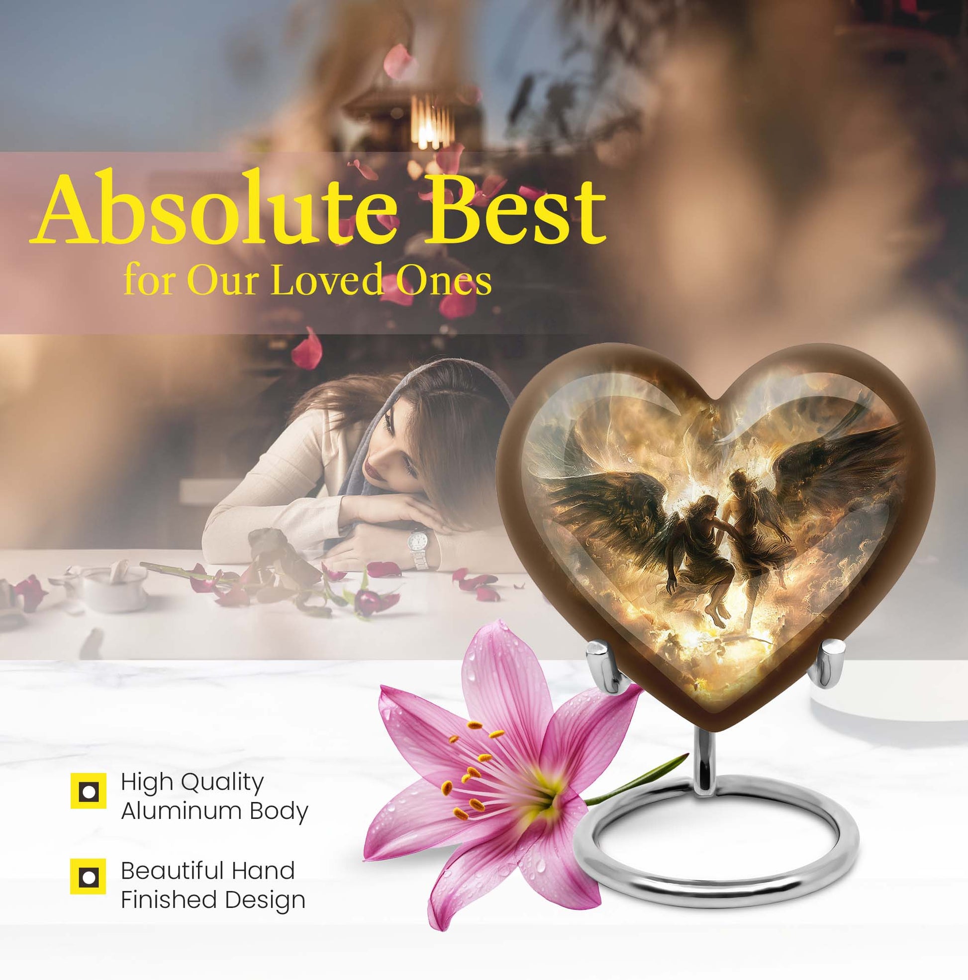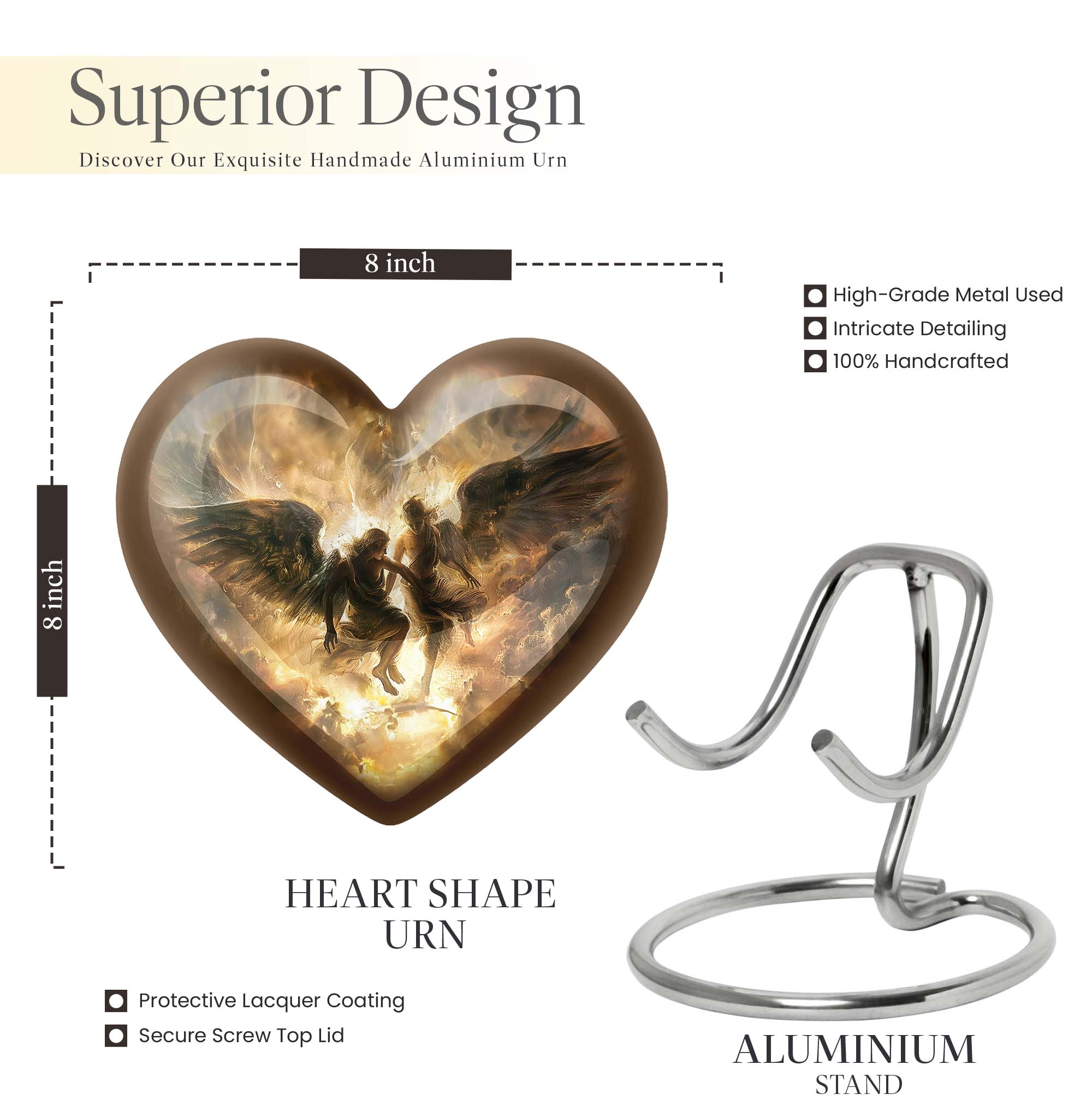 Experience the tranquility and solemn expression of faith with our striking 10-inch Catholic urn. Weighing at 3.3 pounds with a generous capacity of 200 cubic inches, this large urn is perfect for our senior catholic community looking for a comprehensive answer to their memorial needs. The alluring aspect of this abstract-themed urn is its timeless heart design and quality aluminium construction, offering resilience as well as a loving, dignifying memorial. This funeral burial urn comes with a velvet pouch, a dedicated containment for ashes, adding more significance and respect to your beloved's sacred remains. Another promising feature that makes this urn a cherished memorial item is the option to personalize it, engraving your loved one's name with deep words of remembrance. Beyond serving as a catholic urn, this product also doubles as a large urn for human ashes, thereby encompassing more generic yet spiritual needs. Honor the journey of your loved ones with this remarkable urn and make their memory eternal.