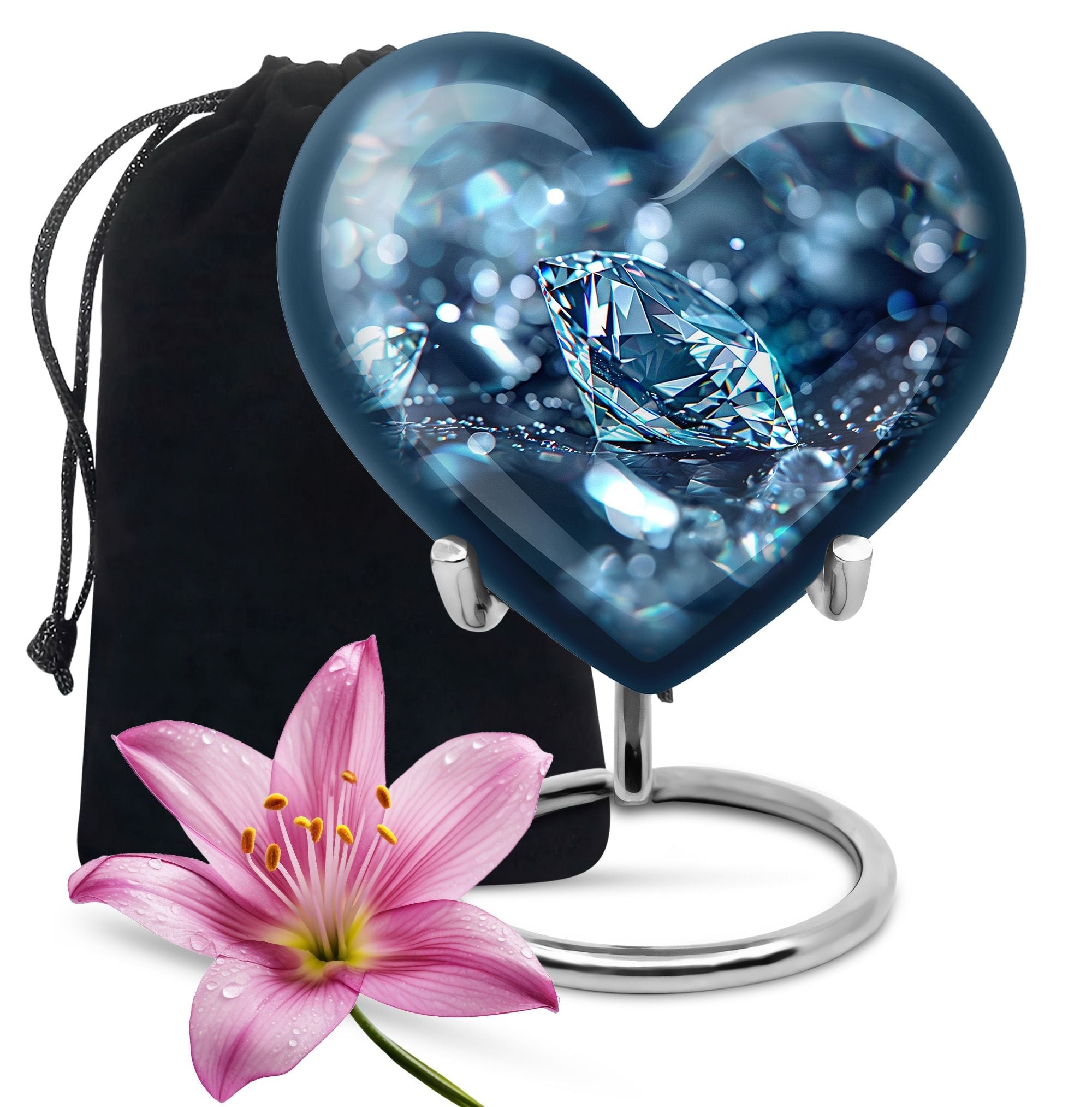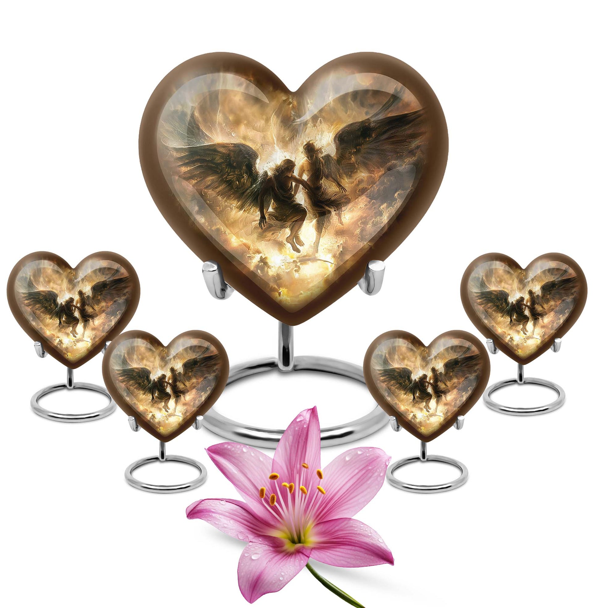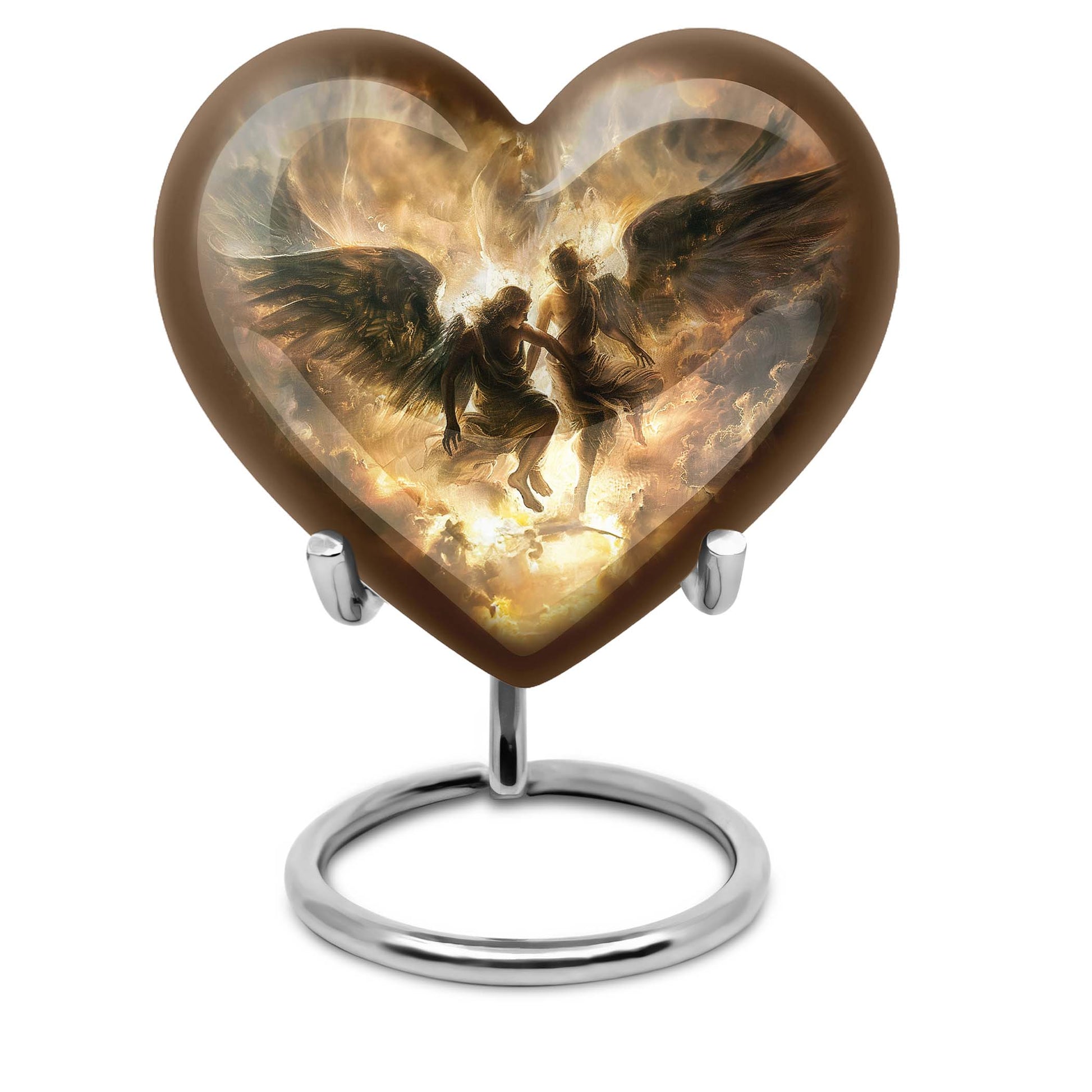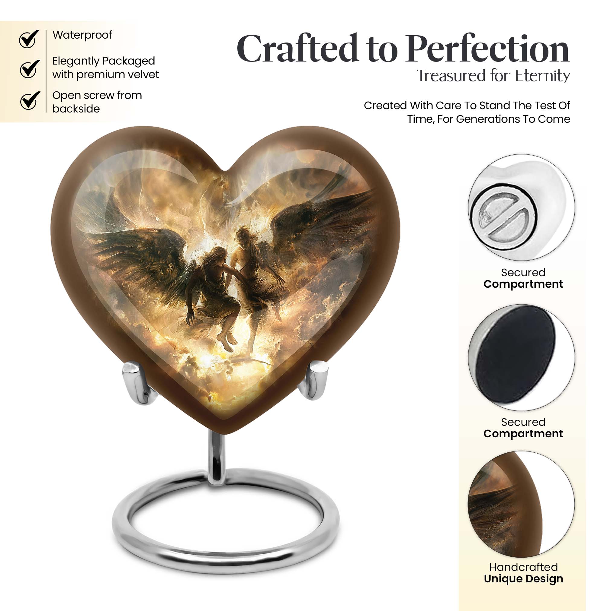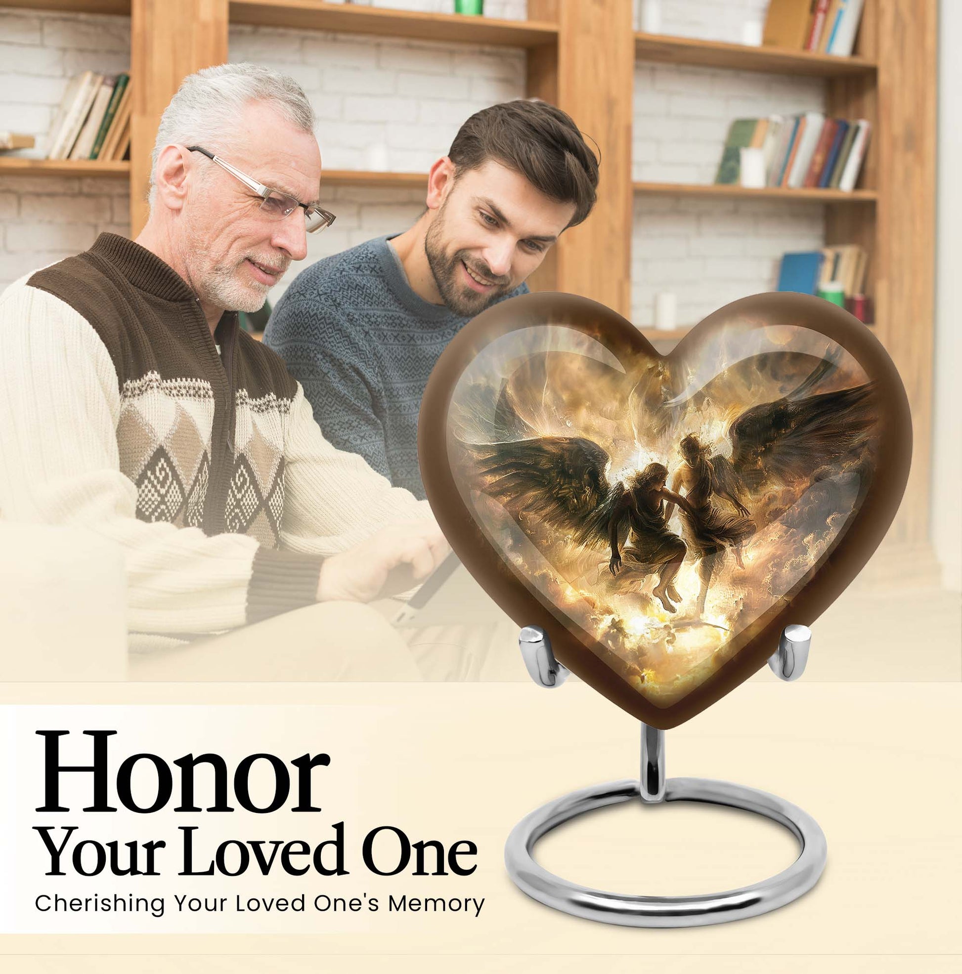 Experience the tranquility and solemn expression of faith with our striking 10-inch Catholic urn. Weighing at 3.3 pounds with a generous capacity of 200 cubic inches, this large urn is perfect for our senior catholic community looking for a comprehensive answer to their memorial needs. The alluring aspect of this abstract-themed urn is its timeless heart design and quality aluminium construction, offering resilience as well as a loving, dignifying memorial. This funeral burial urn comes with a velvet pouch, a dedicated containment for ashes, adding more significance and respect to your beloved's sacred remains. Another promising feature that makes this urn a cherished memorial item is the option to personalize it, engraving your loved one's name with deep words of remembrance. Beyond serving as a catholic urn, this product also doubles as a large urn for human ashes, thereby encompassing more generic yet spiritual needs. Honor the journey of your loved ones with this remarkable urn and make their memory eternal.