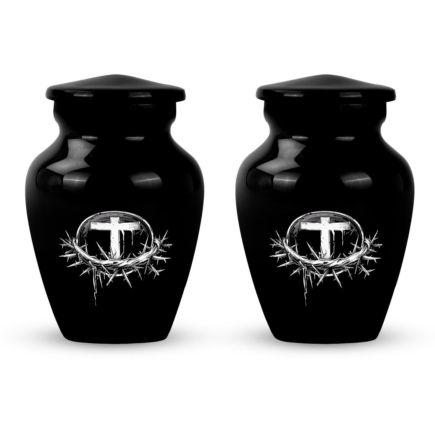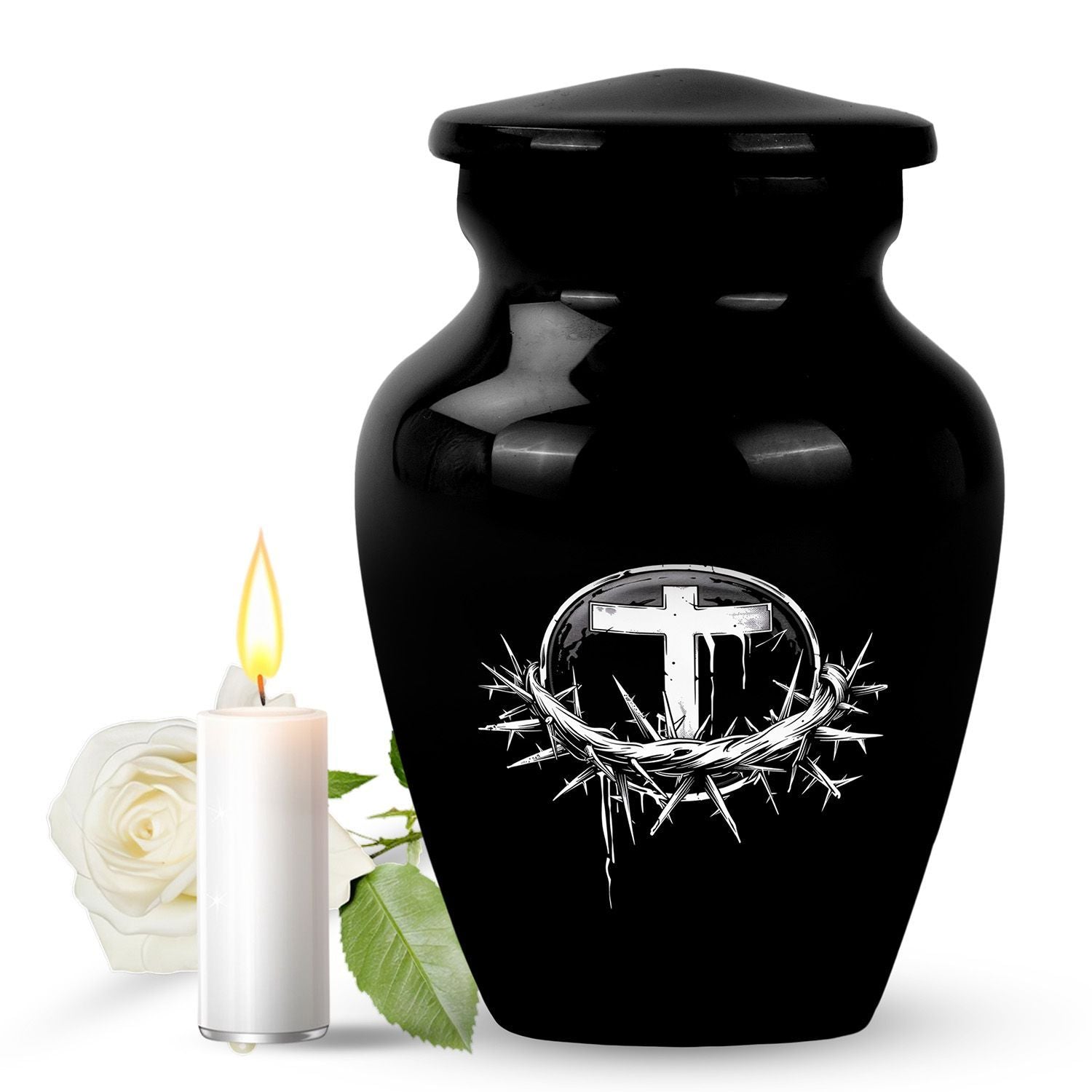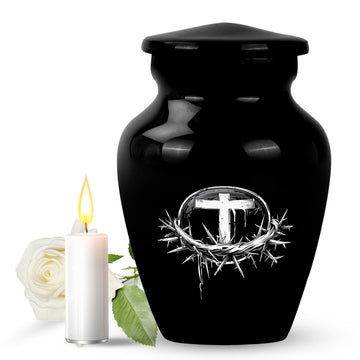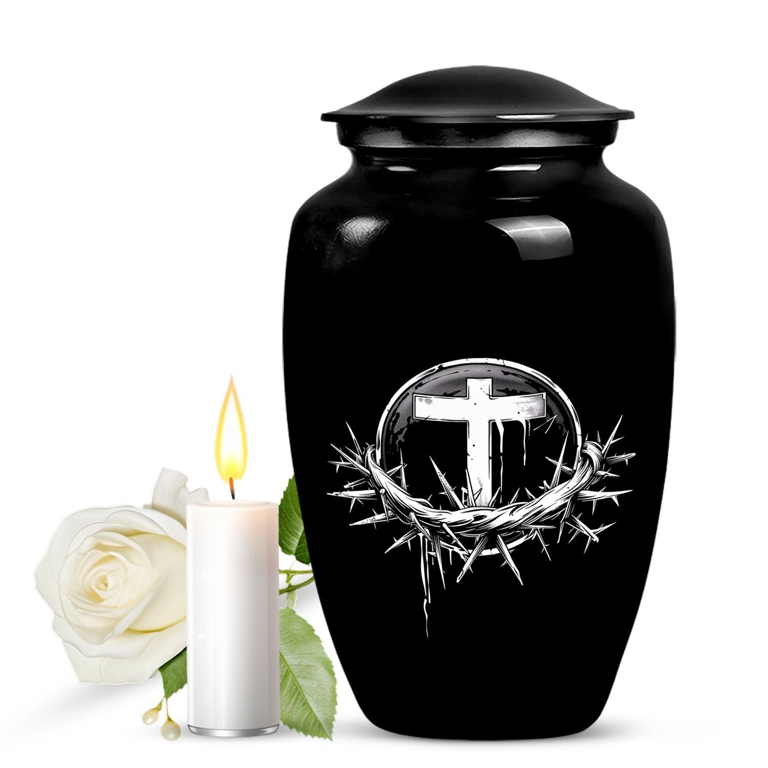 Experience a timeless remembrance with our exceptional Catholic urn. This Large Urn, crafted from robust Aluminium, showcases an impressive capacity of 200 cubic inches, ready to honor and cherish your loved ones in a unique way. Measuring 10 inches in height, it's just the perfect size to be a dignified home for your loved one's memories. The Classic Urn design, dipped in an abstract theme, brings an element of artful sophistication. This funeral ash urn also includes a velvet pouch, tastefully providing containment for ashes. Weighing 3.3 pounds, it guarantees durability and permanence. Add a touch more personal by engraving names on this cremation urn. Perfect for your memorial ceremony supplies, this urn human ash urn offers not just a resting place, but a symbol of everlasting love and respect. This unique urn, catering to Catholic rites, never fails to impress with its alluring design and solemn reverence.