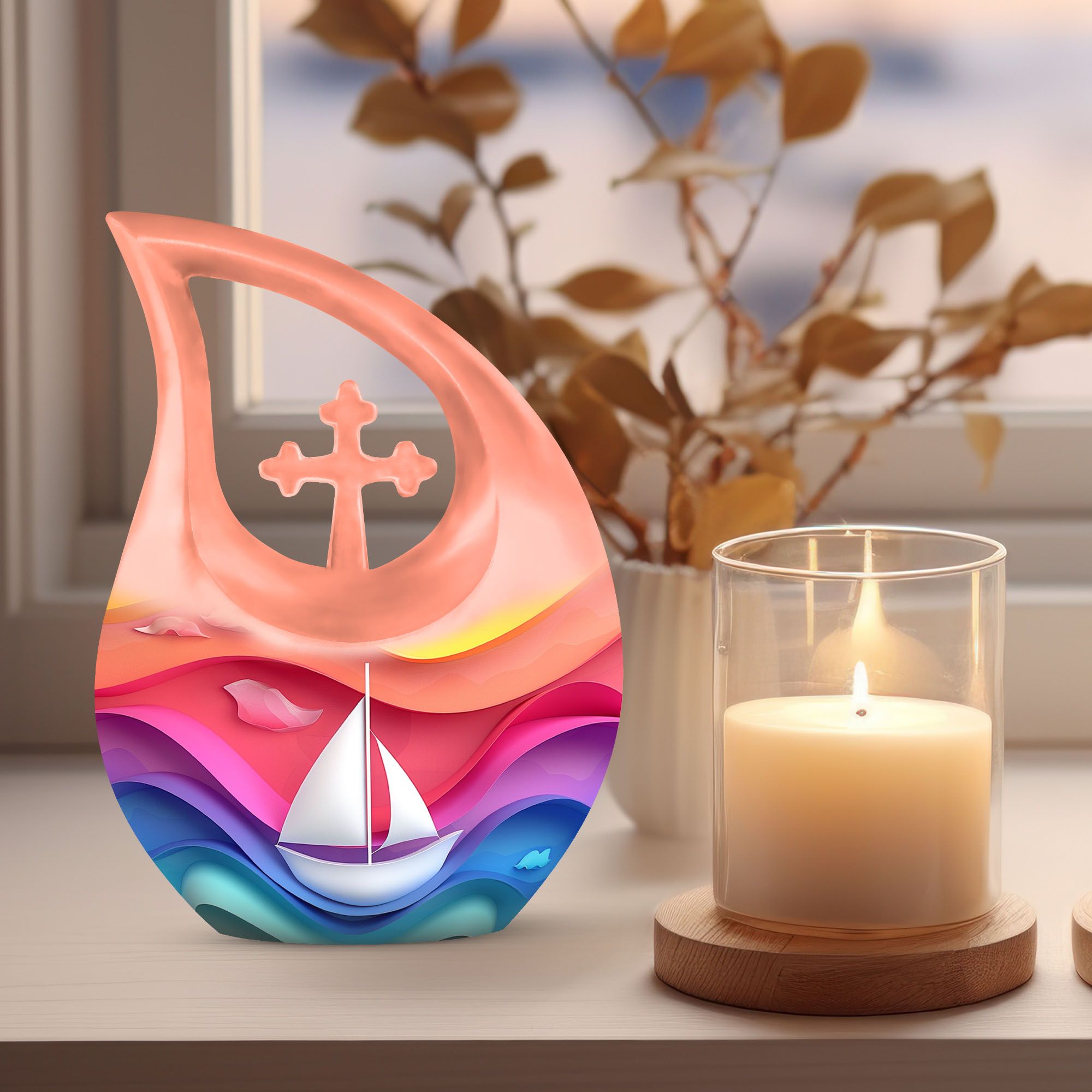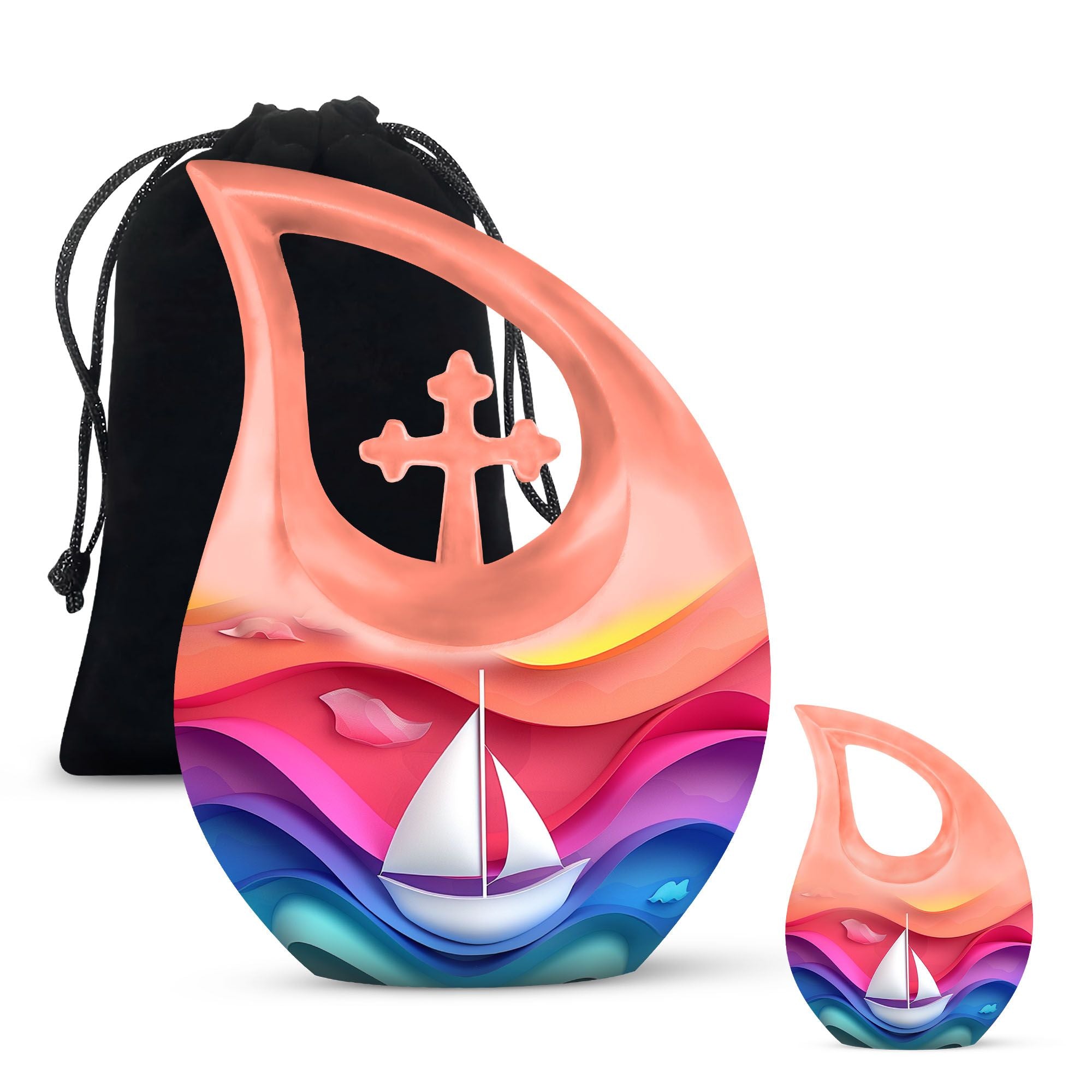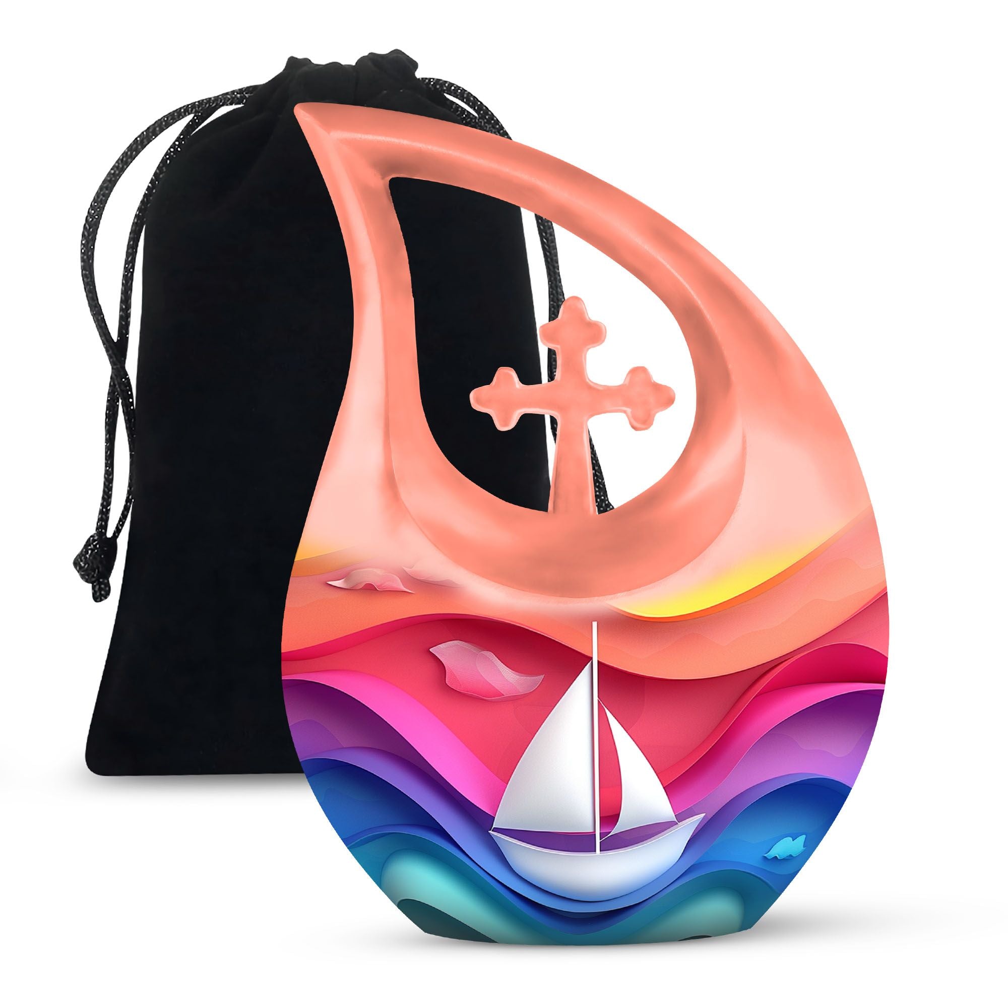 Honor the life and memory of a cherished parent with this Sail Boat Memorial Urn, a meaningful tribute designed to bring peace and comfort. Its uplifting colors and serene nautical motif make it a heartfelt choice for families seeking burial urns urn for ashes for women, urn for human ashes adult men, or a compassionate memorial for both Mom & Dad.