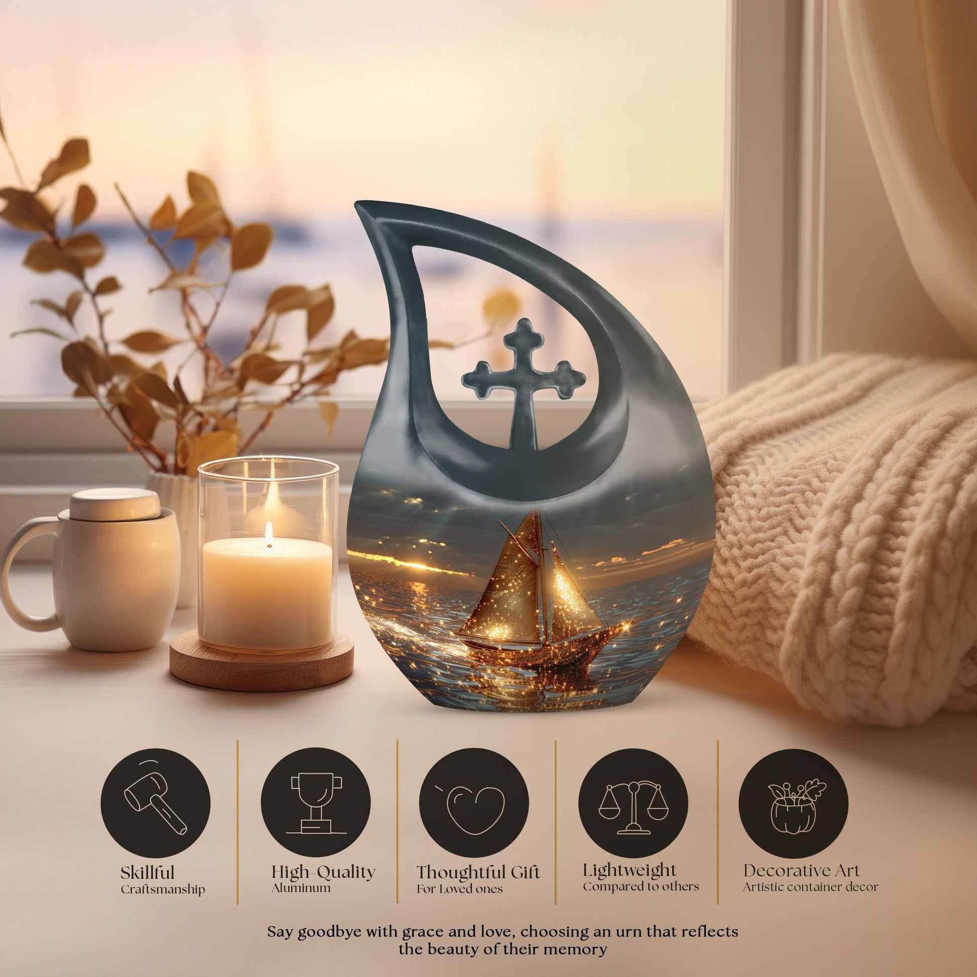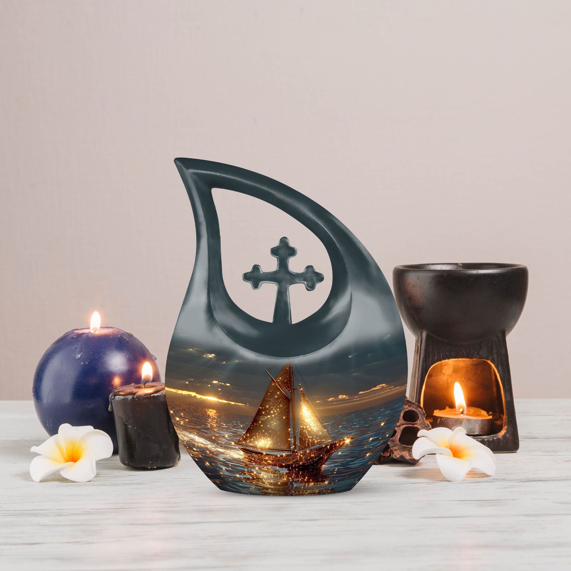 Honor cherished memories with this Sail Boat Cremation Urn, a serene and symbolic tribute designed especially for families seeking cremation urns for ashes for women, meaningful adult urns for women, or a gentle nautical-inspired memorial. The calm sailboat imagery represents guidance, peace, and a comforting journey, making it a beautiful option for a loved one’s remembrance.