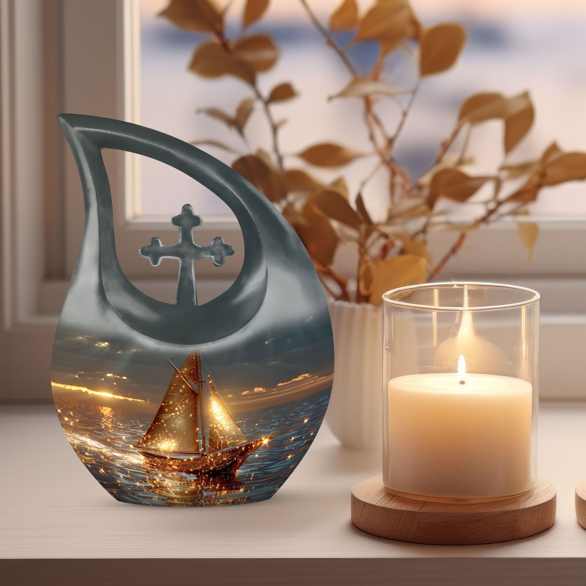 Honor cherished memories with this Sail Boat Cremation Urn, a serene and symbolic tribute designed especially for families seeking cremation urns for ashes for women, meaningful adult urns for women, or a gentle nautical-inspired memorial. The calm sailboat imagery represents guidance, peace, and a comforting journey, making it a beautiful option for a loved one’s remembrance.