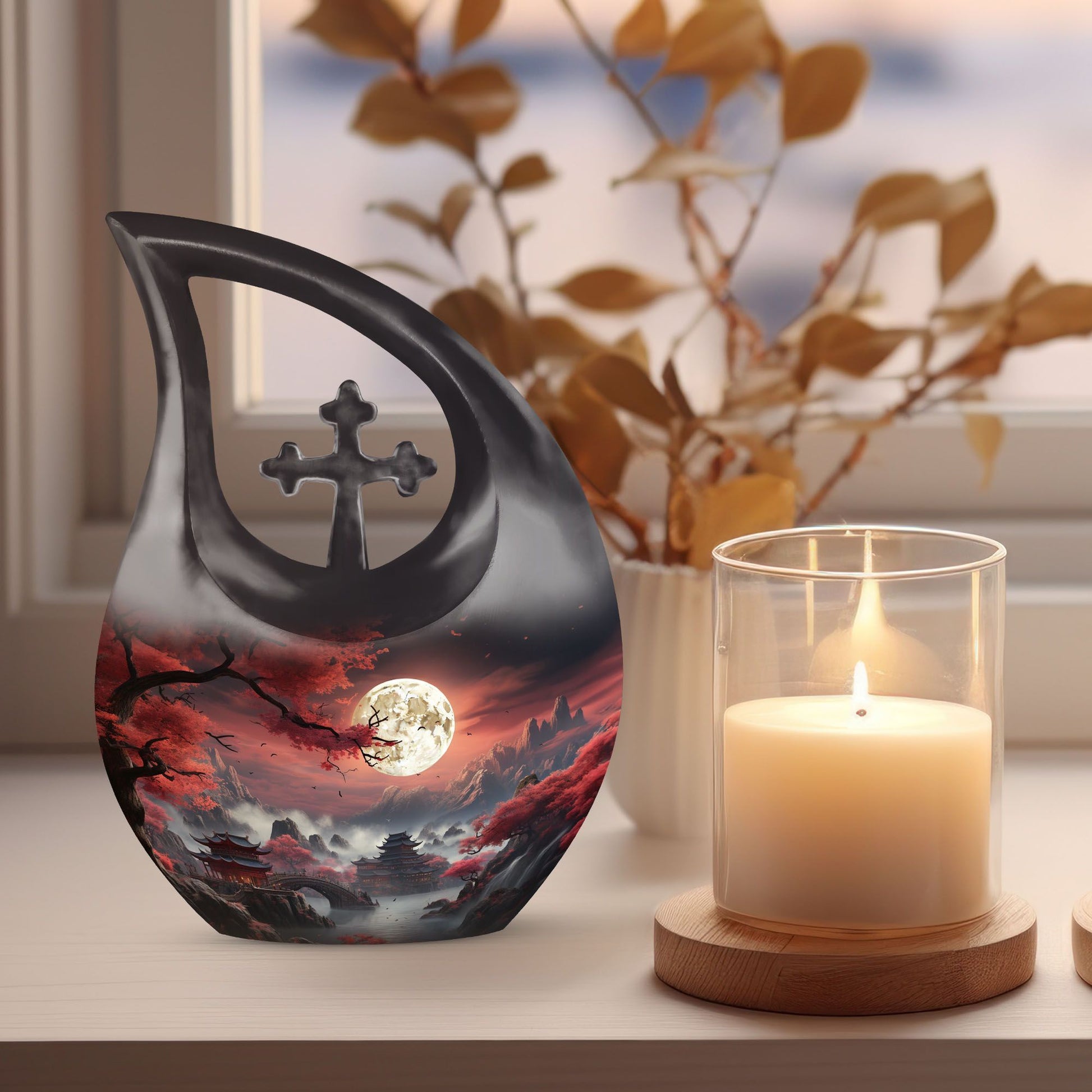 Honoring a loved one’s journey becomes truly meaningful with the Elegant Moonlight Japanese Landscape Funeral Urn. This exquisite piece symbolizes serenity, peace, and eternal love under the calm glow of moonlight. Designed to celebrate precious memories, it serves as a heartfelt choice among funeral urns for ashes adult, offering a dignified resting place that reflects beauty and respect.