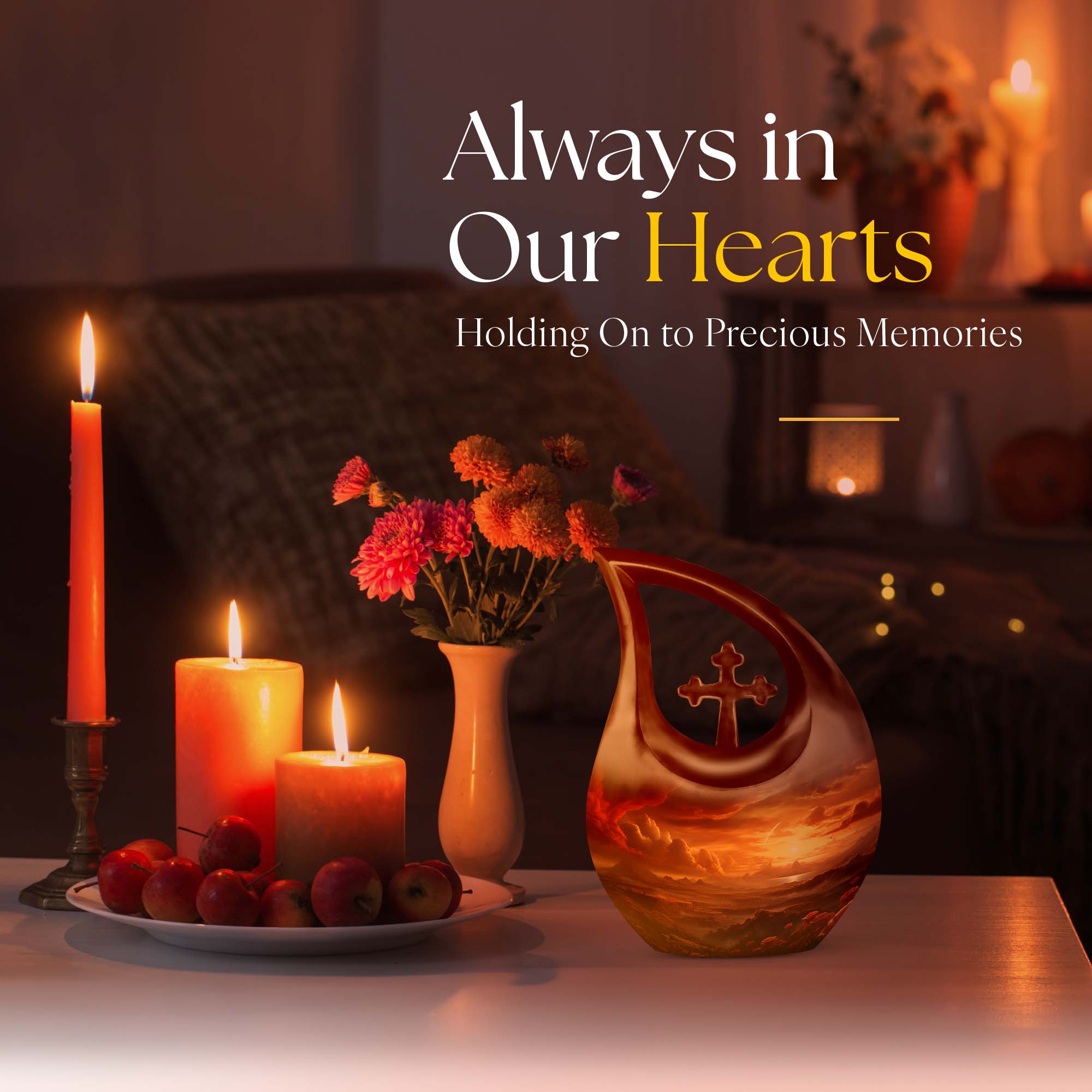 Warm, grounding, and symbolic, the Orange Sunset urn helps preserve cherished memories while offering families lasting peace and heartfelt presence.