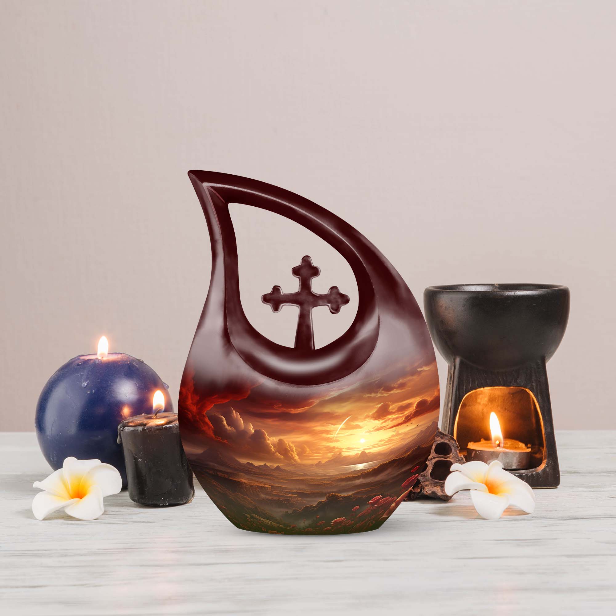 A life filled with strength, warmth, and unforgettable moments deserves a memorial that reflects that same beauty. This Orange Sunset urn for men & women offers families a heartfelt and dignified tribute, perfect for those seeking funeral urns for women, adult urns for women, or meaningful cremation keepsakes for men.