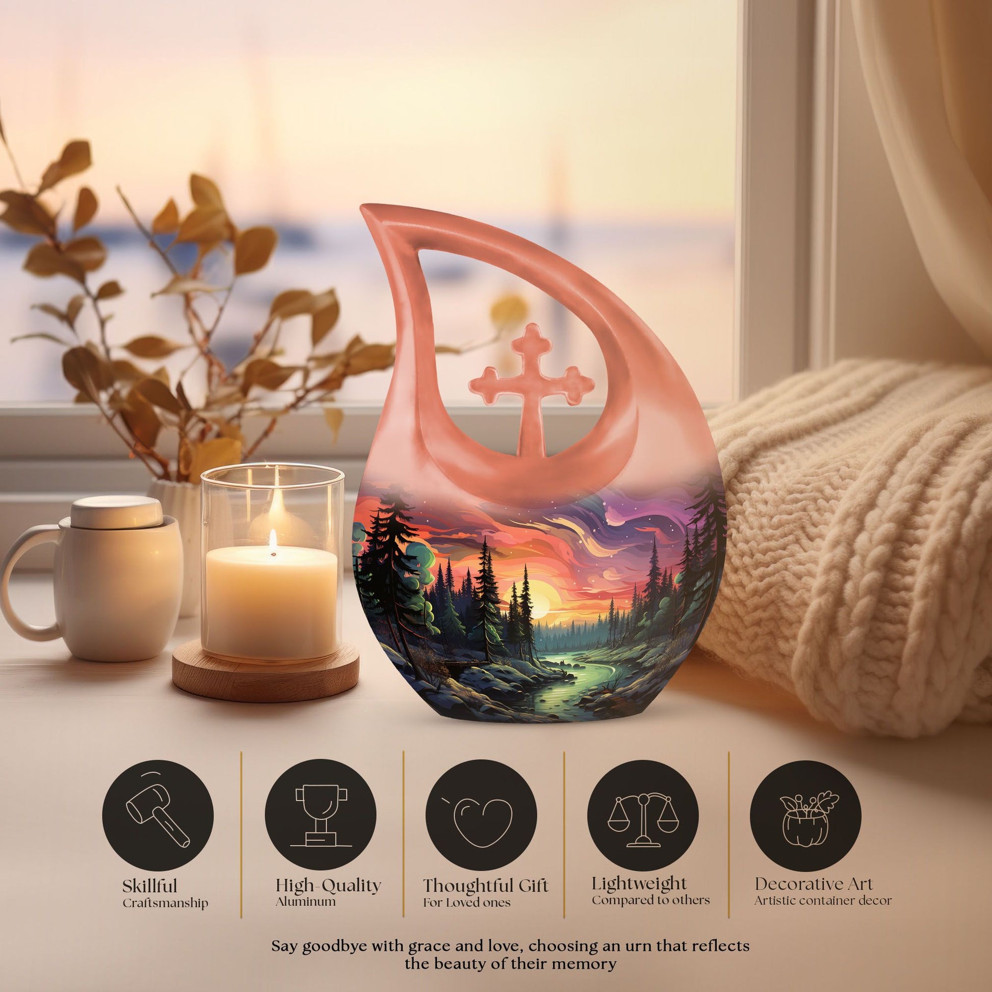 The Sunset Forest Scenic Cremation Urn is more than a vessel—it’s a heartfelt reminder of the peaceful moments shared and the eternal bond that remains. A meaningful choice among urns ashes male collections, it embodies love, remembrance, and enduring respect.