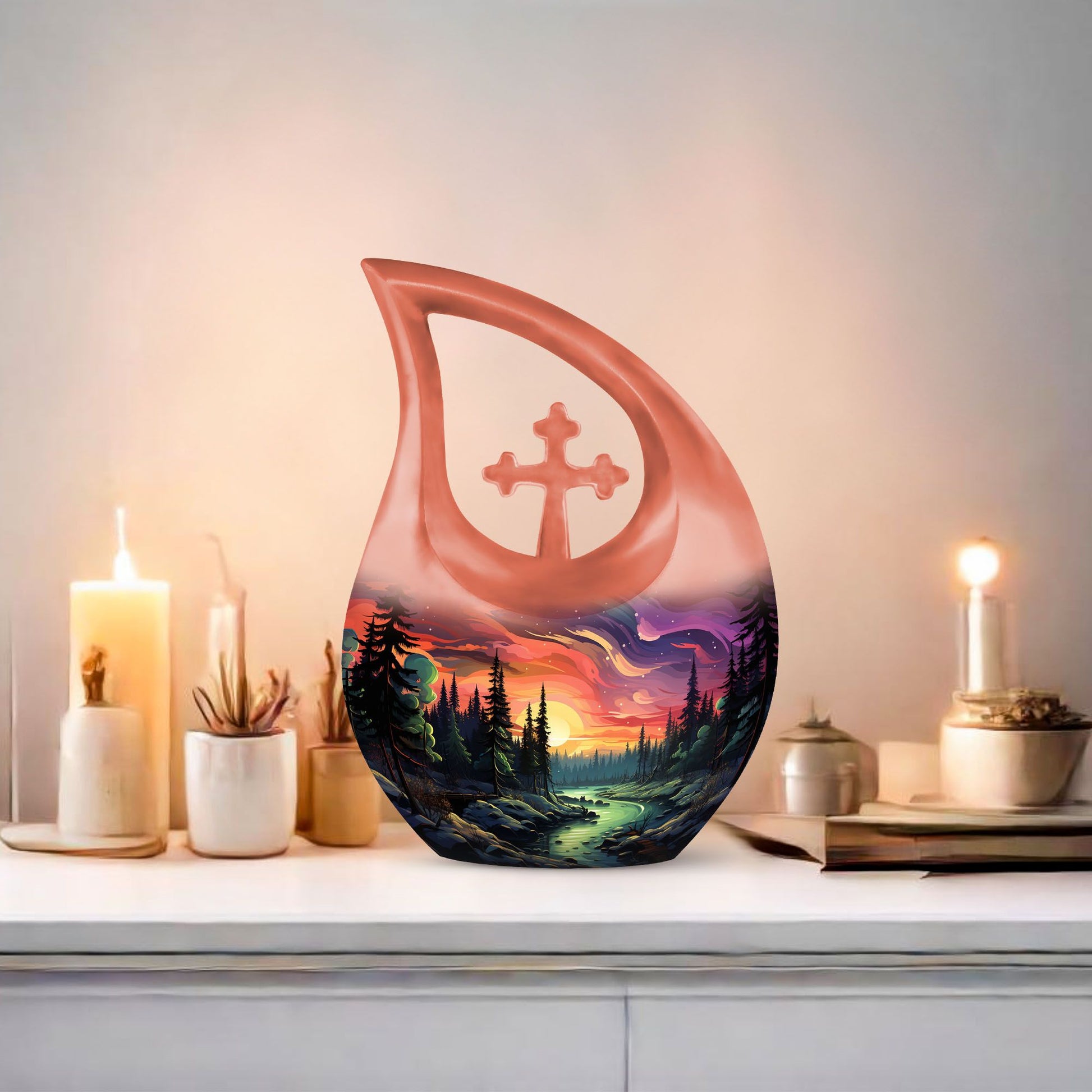 The Sunset Forest Scenic Cremation Urn serves as a timeless tribute to those who have brought light and meaning into our lives. With its serene forest and golden sunset design, this elegant memorial piece captures the beauty of eternal rest and remembrance. Whether chosen as urns ashes adult male or adult female urn, it offers a comforting way to preserve and honor precious memories with love and dignity.