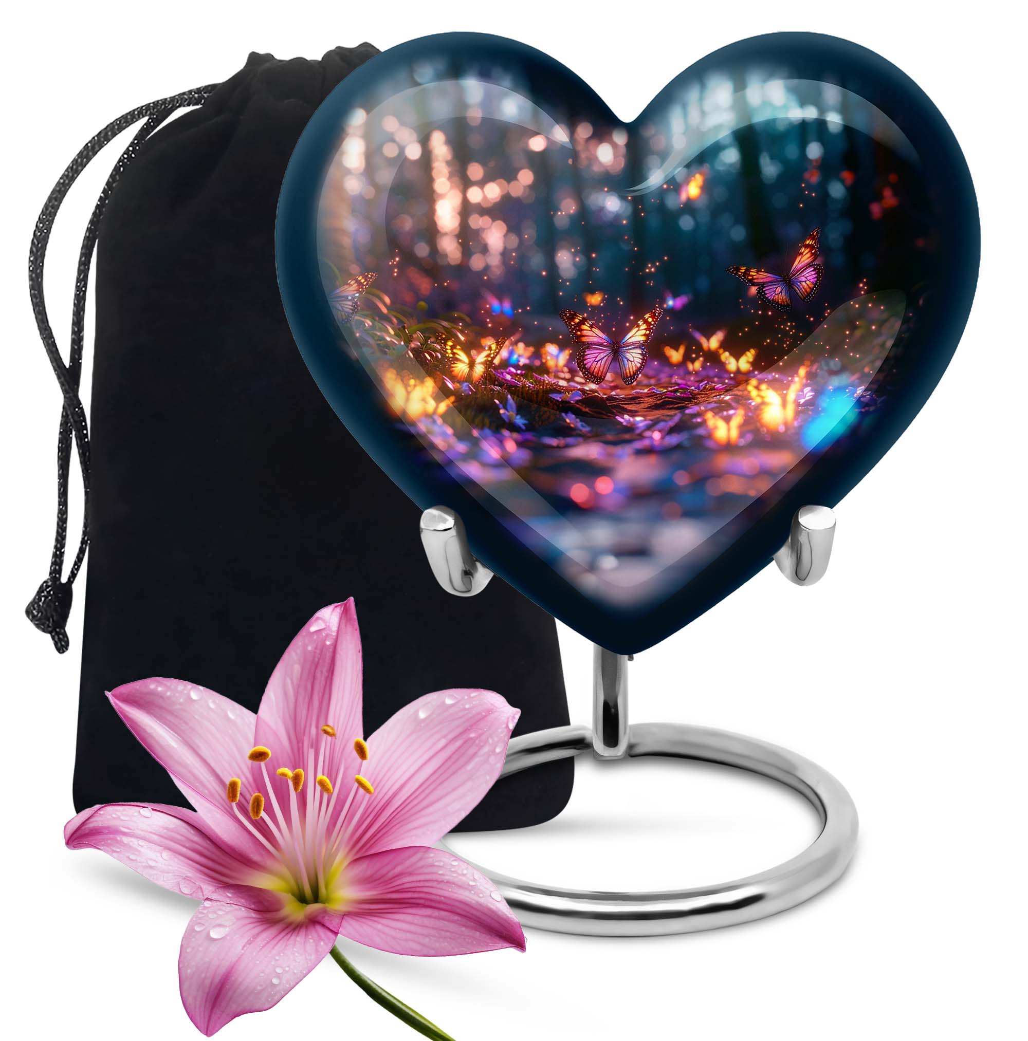 Discover our exquisite 'Heart Urn', a sacred place to rest your dear one's remains. Designed as an adult urn for ashes, this uniquely presenting bear urn encapsulates love with a blend of style and simplicity. The size of the item is 10 inches in height, meaning it effortlessly becomes a focal point of any space it adorns. Made from premium-quality aluminium, the urn is both resilient and comforting. The urn's capacity stands at a generous 200 cubic inches which is more than enough for keeping the ashes safe and protected. It weighs 3.3 pounds, monochrome and has an abstract theme adding a touch of artistry. The cremation urn package incorporates a velvet pouch that provides a dignified home to the ashes. Customize this urn by engraving your loved one's name on it. In this way, their memory is duly honored, while also enabling a personal touch. This burial urn for ashes combines contemporary design with timeless sentiment and is the perfect homage to your loved one.
