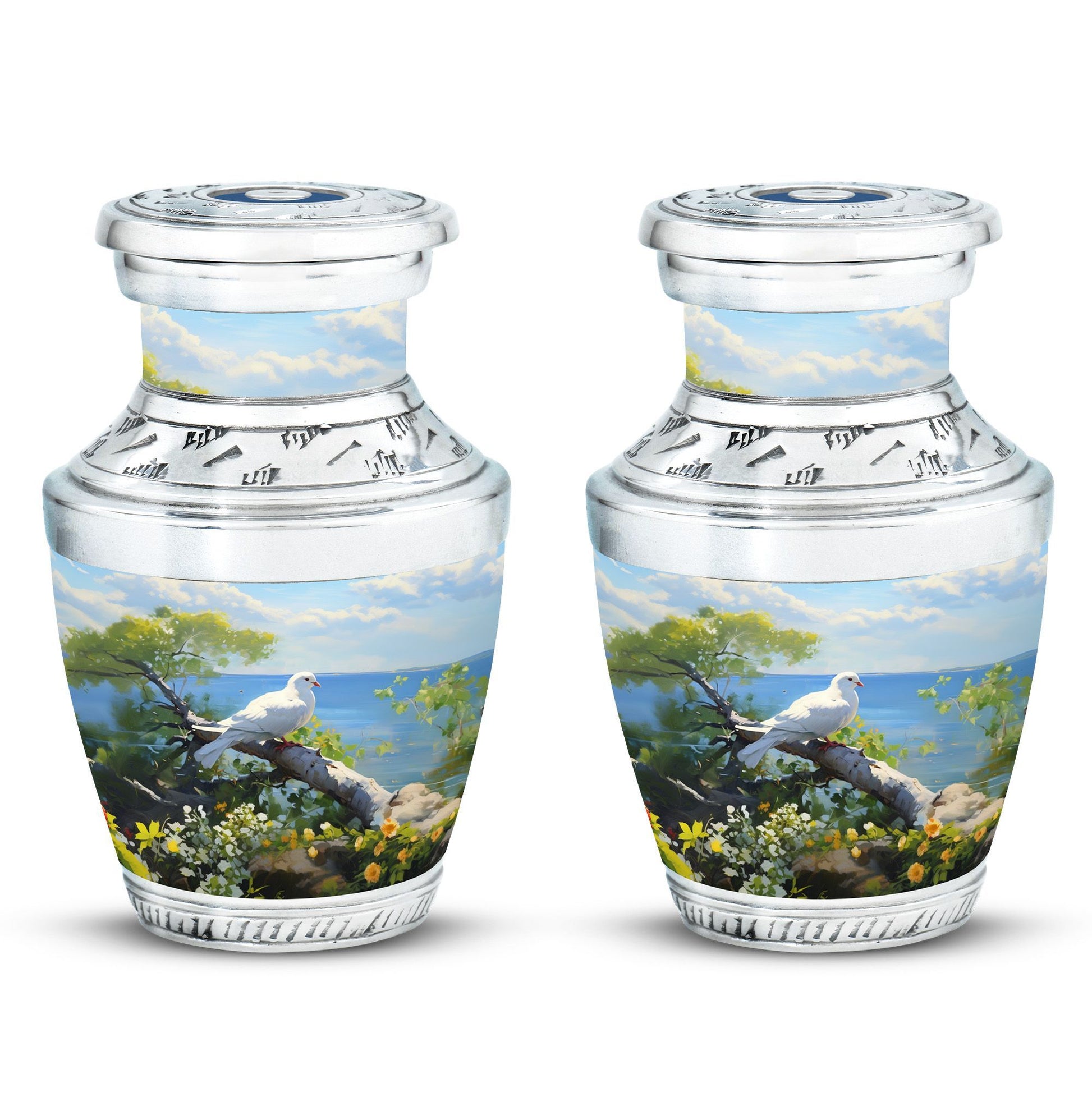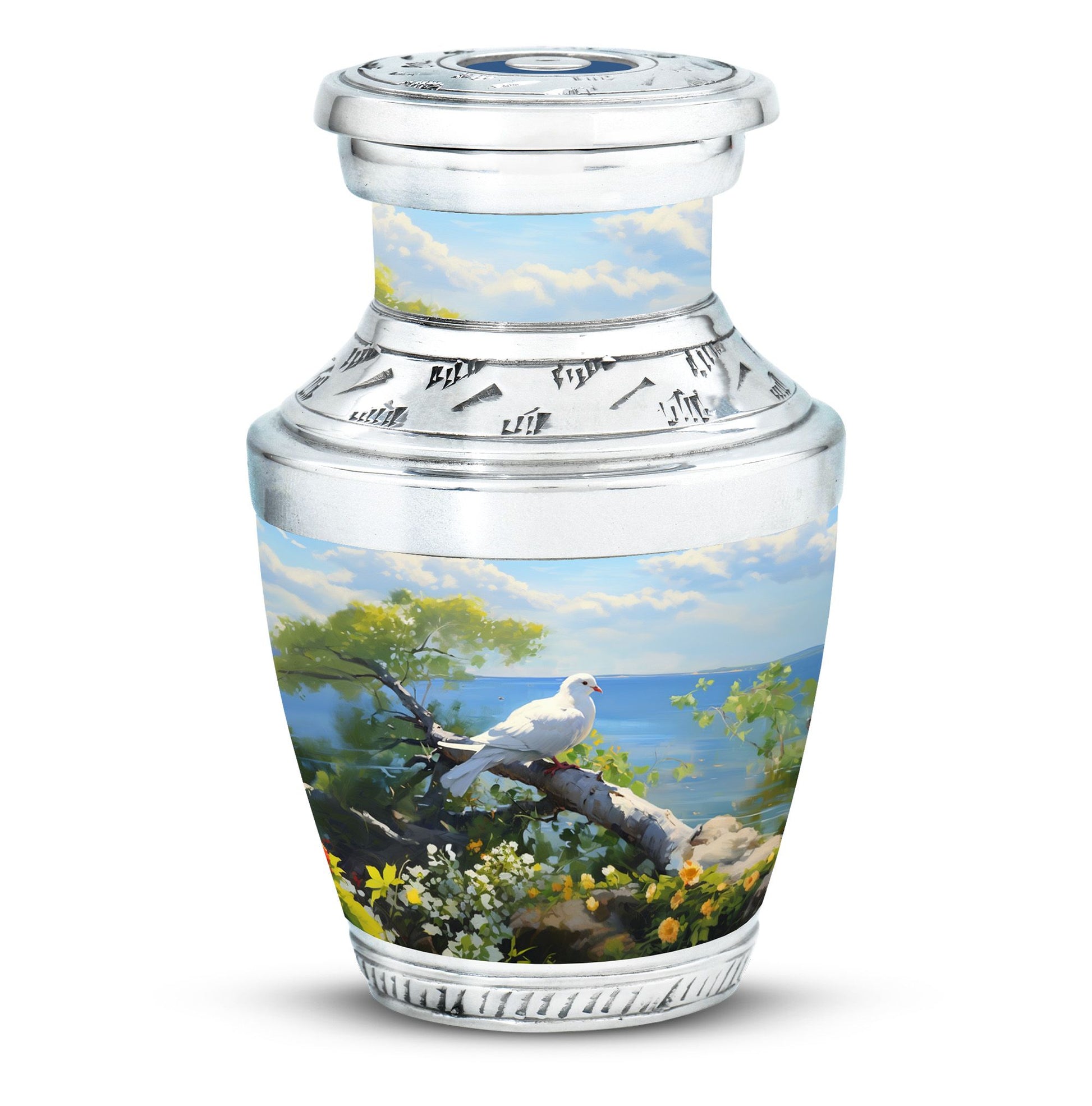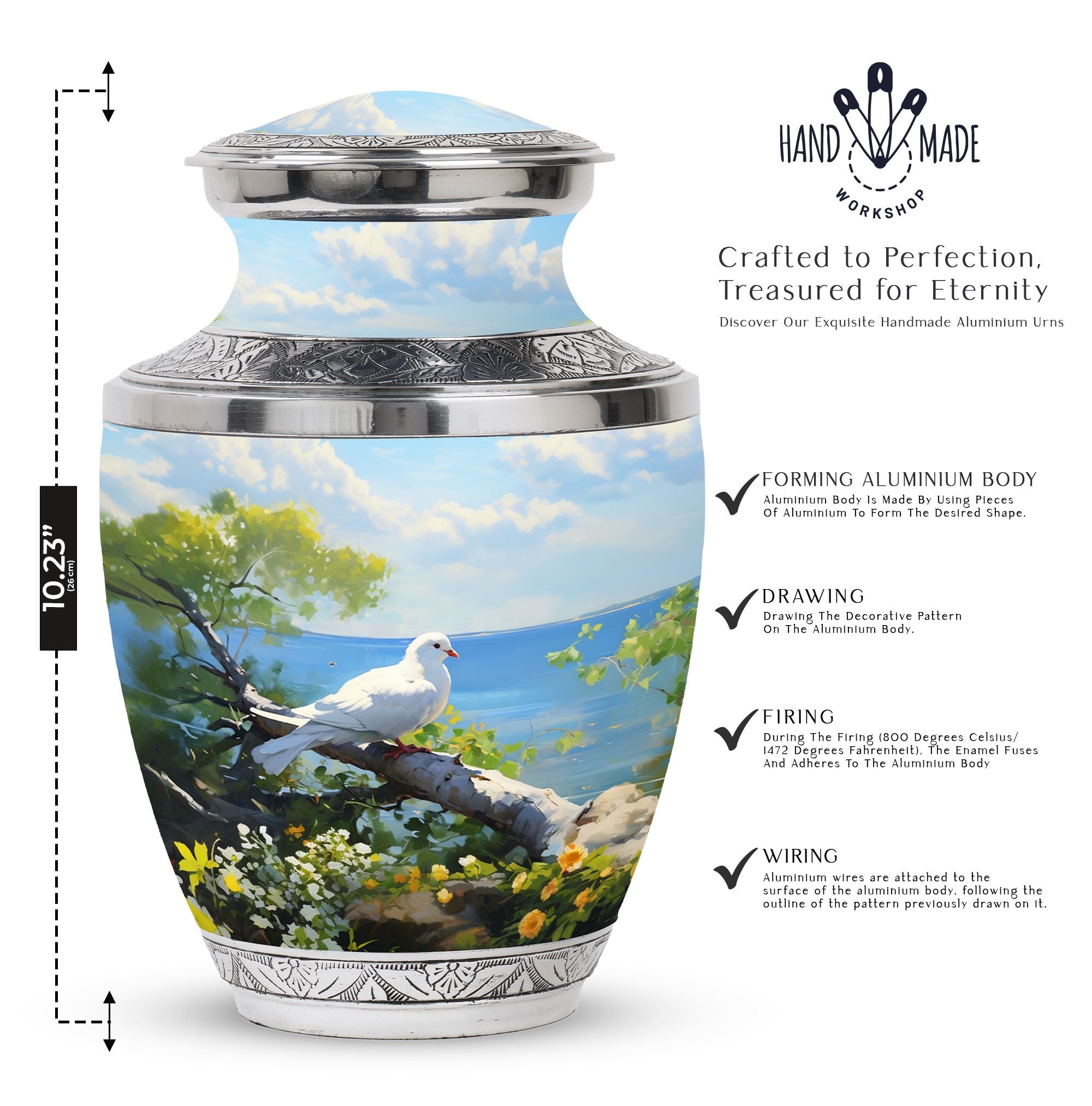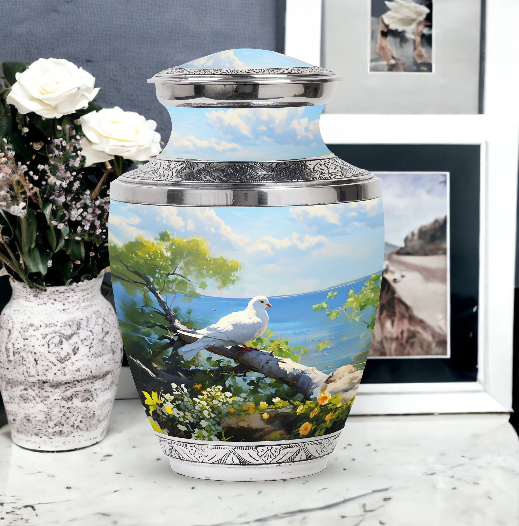 Introducing the Serene Dove: Aesthetic Memorial Urn, a beautifully crafted urn designed to offer dignified last honors to your loved one. Featuring an elegant dove motif, symbolizing peace and tranquility, this urn is meticulously made from high-quality materials to ensure durability and a timeless appearance. Its graceful design and serene imagery provide a comforting and fitting tribute, making it a perfect centerpiece for any memorial setting. The Serene Dove Memorial Urn not only serves as a secure and respectful resting place for ashes but also as a poignant reminder of the cherished memories and everlasting love shared with your loved one.