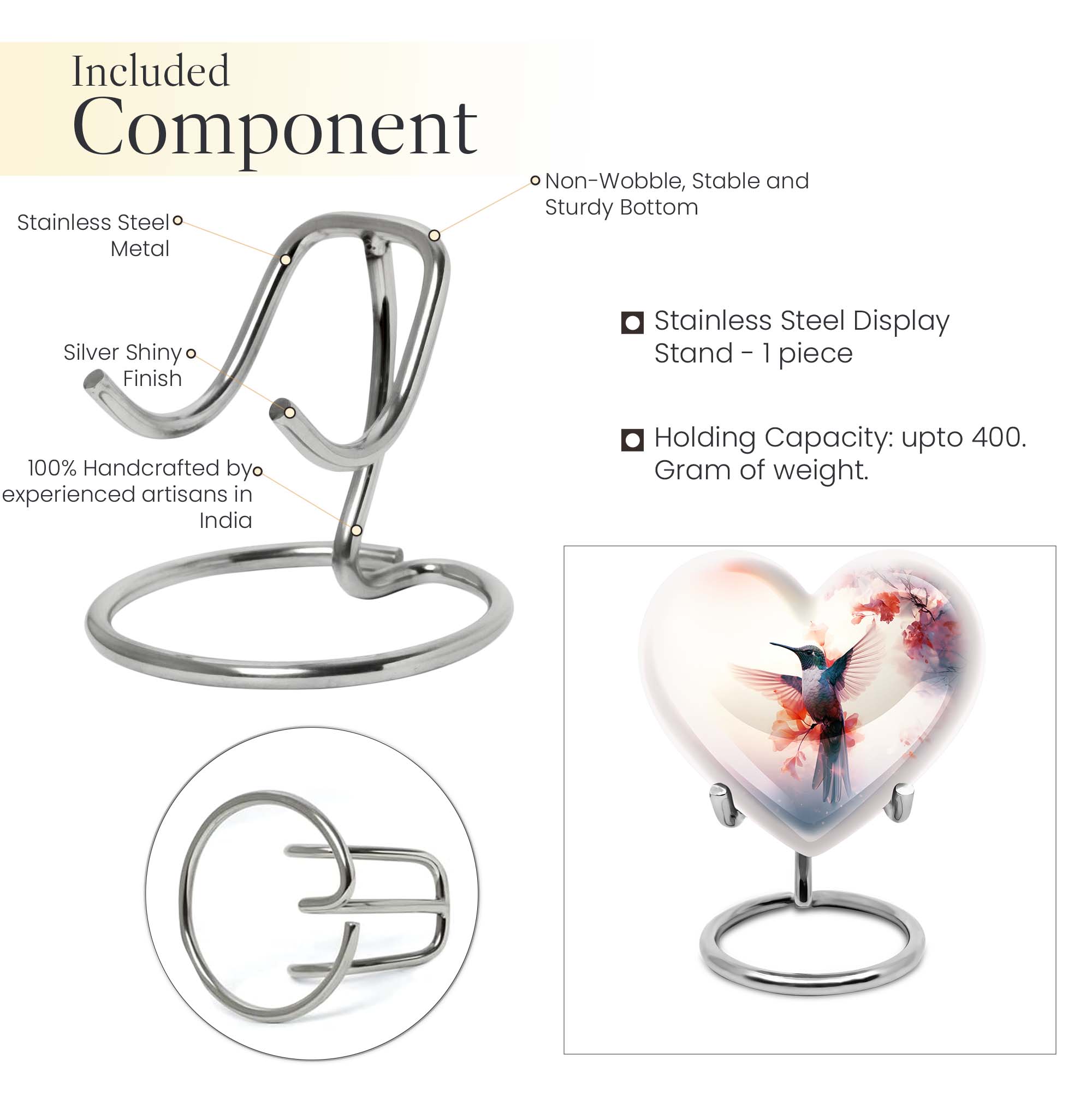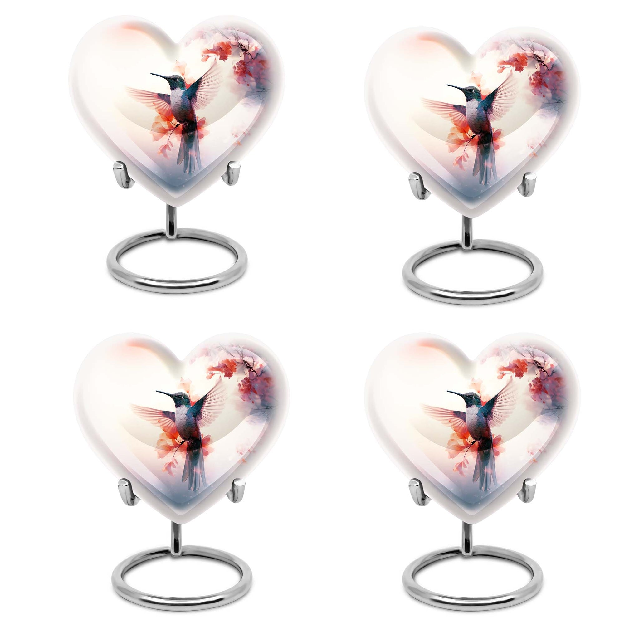 Discover the perfect blend of style and remembrance with our distinctive Heart Urn. This magnificently crafted 10-inch burial urn boasts an abstract theme that conveys the spiritual tranquillity inherent in memorial events. Made from durable, quality aluminium, it offers a comforting weight of 3.3 pounds and impressive dimensions of 10 inches in height, our large urn has a capacity of 200 cubic inches, making it suitable for adult human ashes. This Humming Bird Urn comes with the convenience of personalization, allowing you to engrave names as per your wishes, adding an extra layer of sentiment to your memorial efforts. Each purchase includes a plush velvet pouch for safe and tranquil containment of your loved one's cremation ashes. Attractively unique in design and utilitarian in performance, our Heart Urn offers an unparalleled approach to treasuring loved ones. Note: Excluding 'Design', this description contains rare terminologies, caters for keywords like 'cremation urn for human ashes, burial urns for cremation ashes, memorial urns,' and others to assist in online searchability.