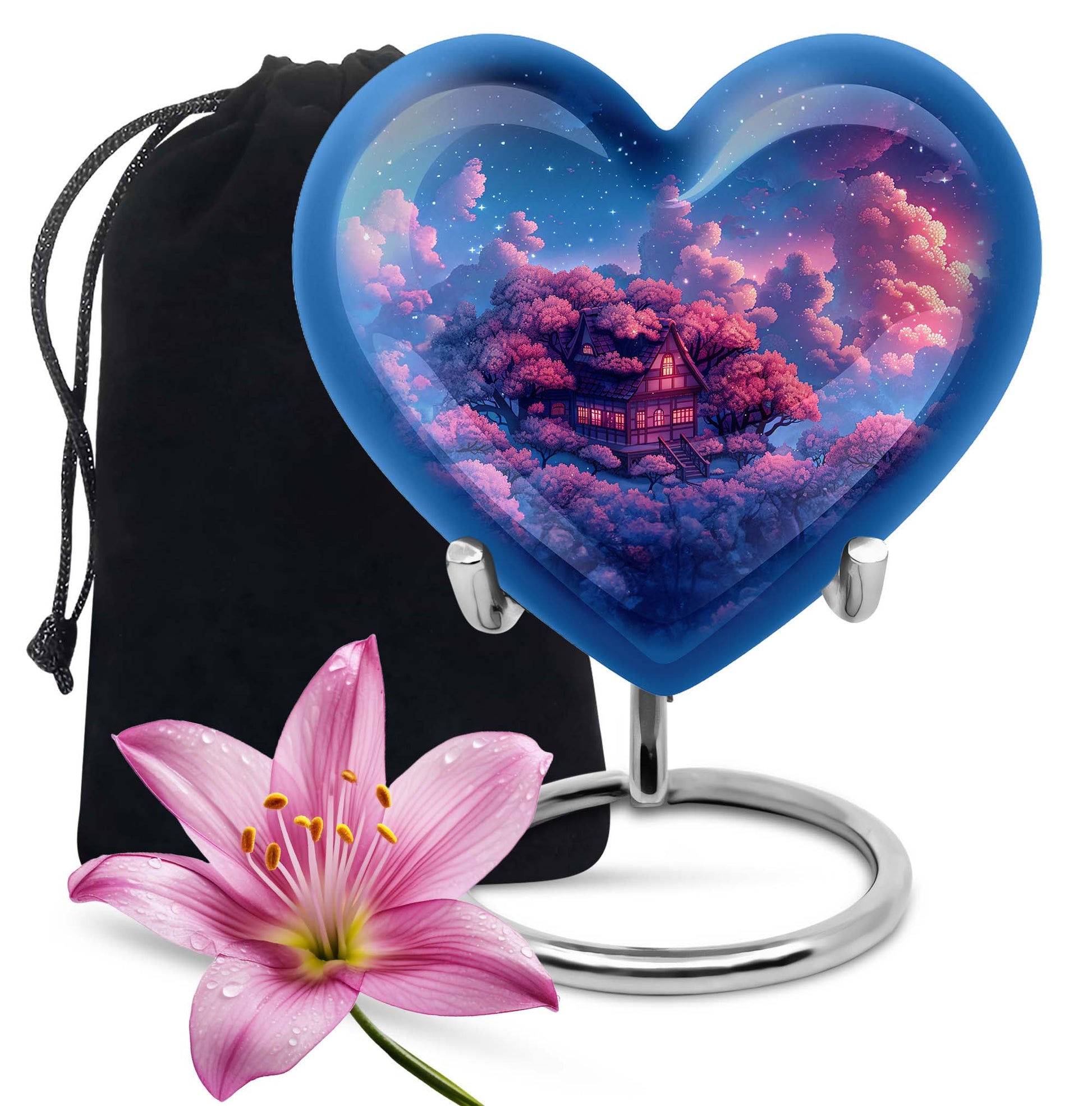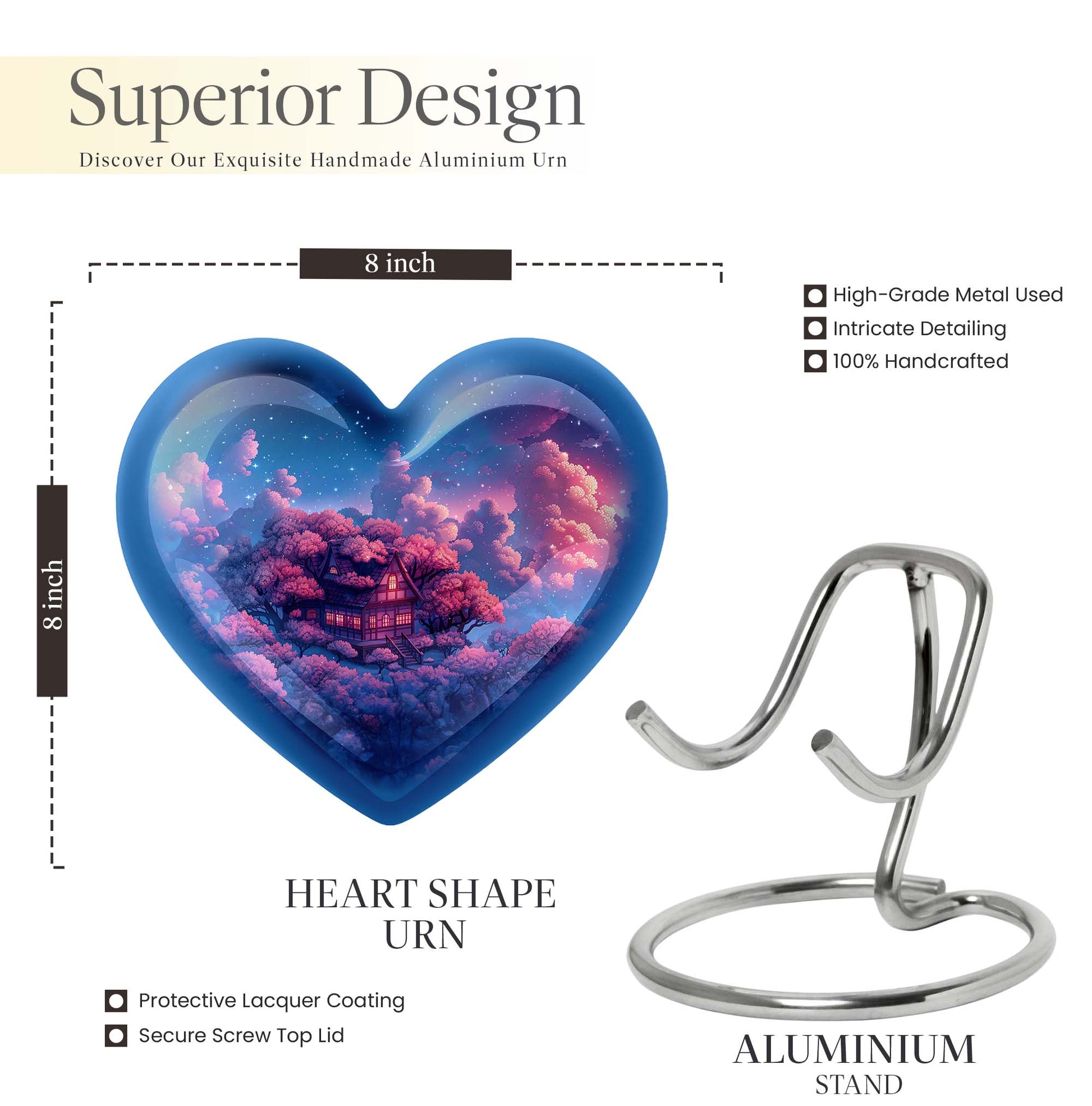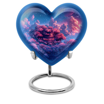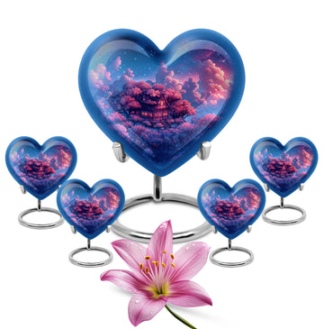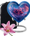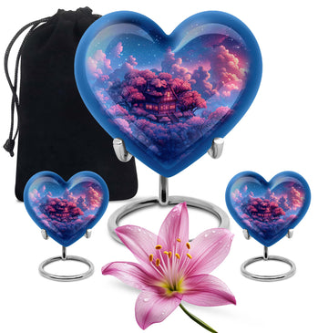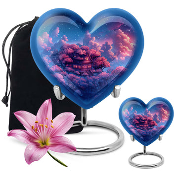 Discover a peaceful, dignified way to remember your loved ones with this quintessential 'Clouds Urn.' This large urn, crafted meticulously from high-quality aluminium, is designed for aged and mature buyers who appreciate the transcendent blend of religious and ceremonial symbols in memorial ceremony supplies. Of eye-catching detail is the heart-shaped urn, elegantly accentuated with a butterfly theme. The urn stands majestically at 10 inches, and weighs a respectable 3.3 pounds. Despite its beauty, the urn’s practical functionality isn’t compromised; it boasts a capacity of 200 cubic inches. For those who value discretion, the urn comes with a velvet pouch designed for the containment of ashes. This urn offers another special feature: you can personalize it with engraved names. The ‘cremation urn,’ is synonymous with funeral burial urns, creating an enduring testament to your devotion and respect for the departed.