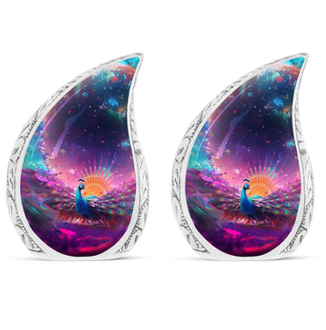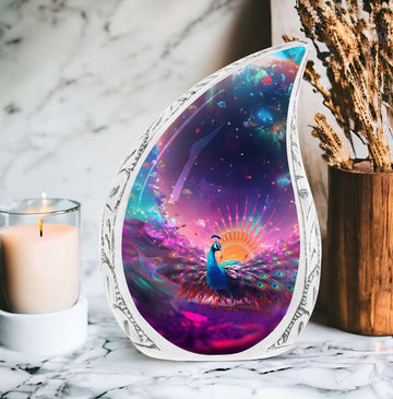 Hold cherished memories close with our Peacock Memorial Urn, a dignified, serene, and beautifully crafted vessel for your loved one's final rest. With a 3-inch size, this urn offers ample space, boasting a capacity of 200 cubic inches. Forged from robust, durable aluminium, it weighs 3.3 pounds and stands 10 inches in height - a substantial addition to any memorabilia display. Our urns for ashes reflect not only the irreplaceable value of the one you’ve lost but also the magnificence of their spirit. You can add a personal touch by engraving the names, turning the Classic Urn into a cherished keepsake. The urn is also accompanied by a velvet pouch, ensuring the containment and utmost respect for the ashes. These large urns, including memorial urns and urn containers, are idea for adults and seniors. Move beyond the commonplace with our Customized Urns for Ashes for Adults, not just untangling the complexity of your loss, but also embarking on the journey of cherishing a life lived.