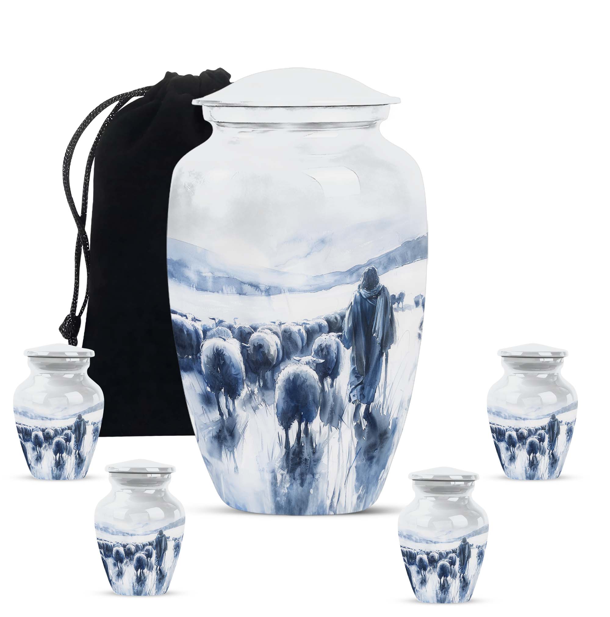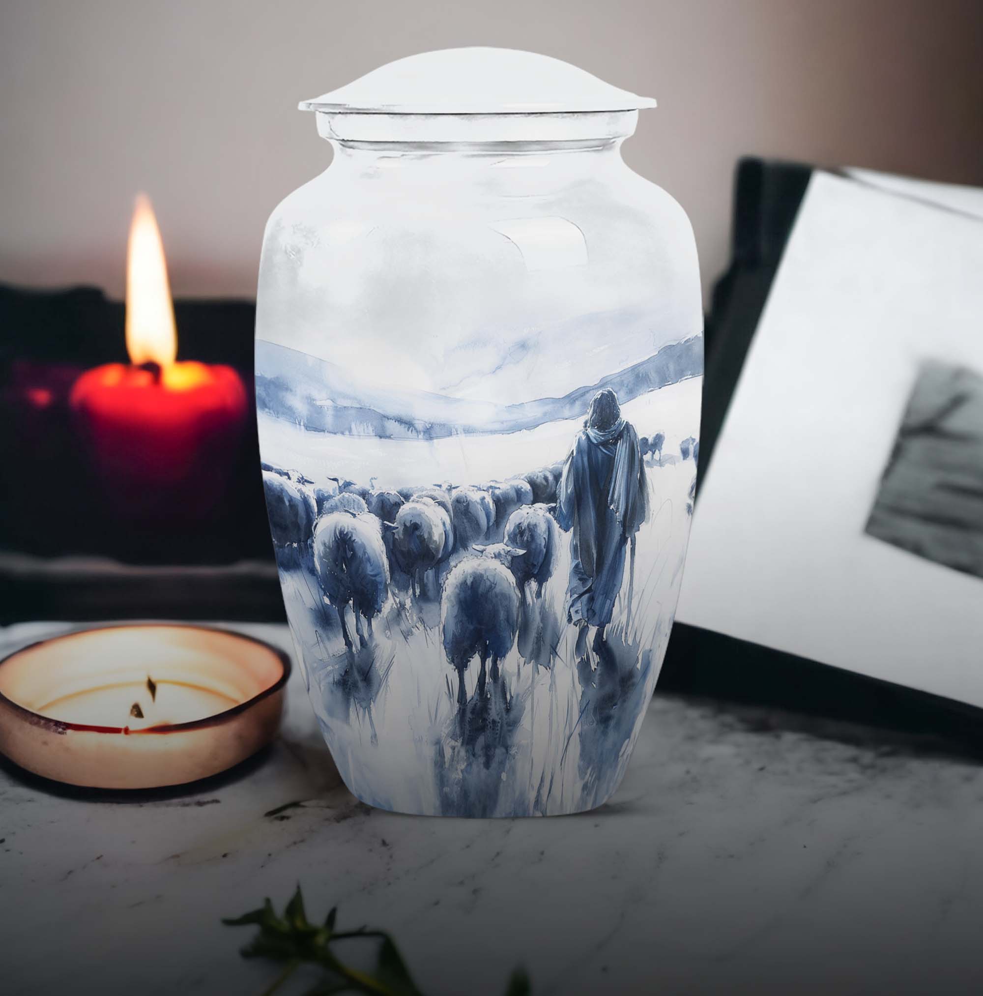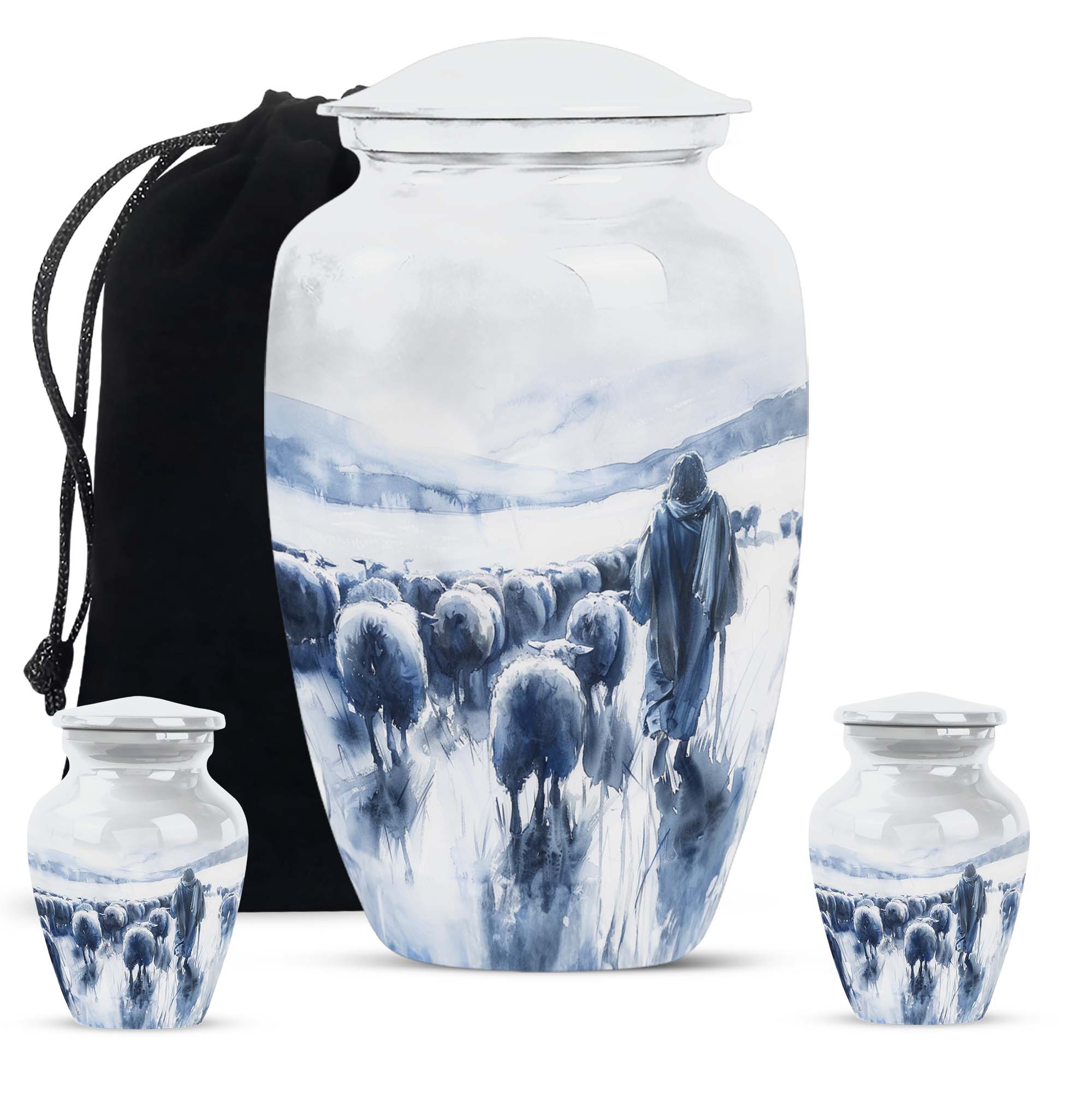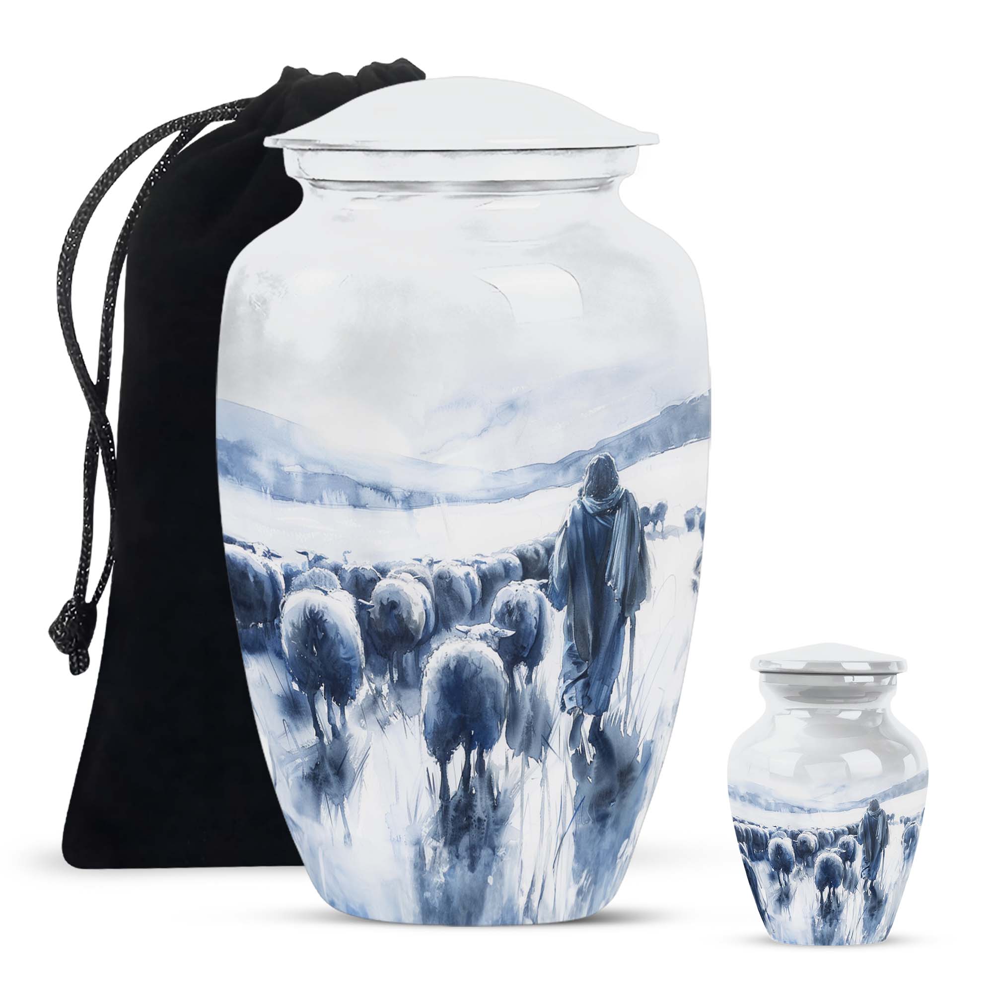 Our Shepherd Urn, a marvellous blend of simplicity and elegance, is perfect for those who are looking for funeral cremation urns for women. Crafted with superior quality aluminium, this large urn stands 10 inches tall and can comfortably contain up to 200 cubic inches of ashes. Its 3.3-pound weight is indicative of its robustness. This urn, which carries an abstract theme, adds a subtle grace to the solemnity of the memorial ceremony. The package also includes a velvet pouch, offering a dignified containment for the ashes. One can personalise it with engraved names, adding a special touch to the urn. The size, material, theme, personalisation feature of our Shepherd Urn make it a popular cremation urn choice. This urn goes beyond just its practical use, it helps you keep your loved ones close even in their absence. Add our Shepherd Urn to your memorial ceremony supplies for a unique, personalised, and thoughtful tribute.