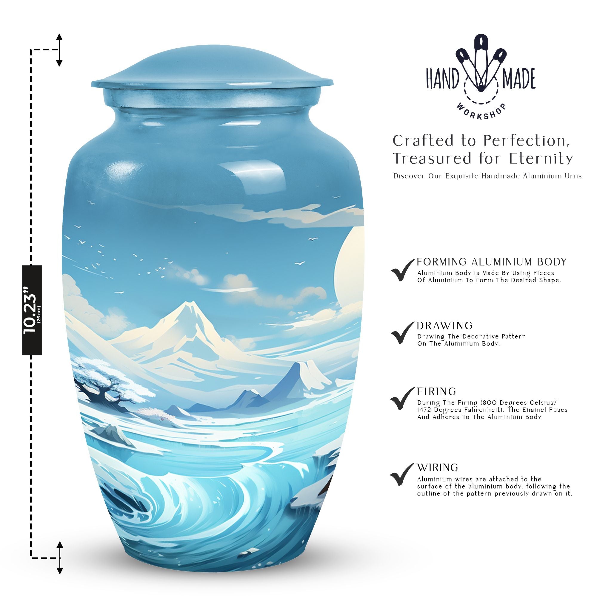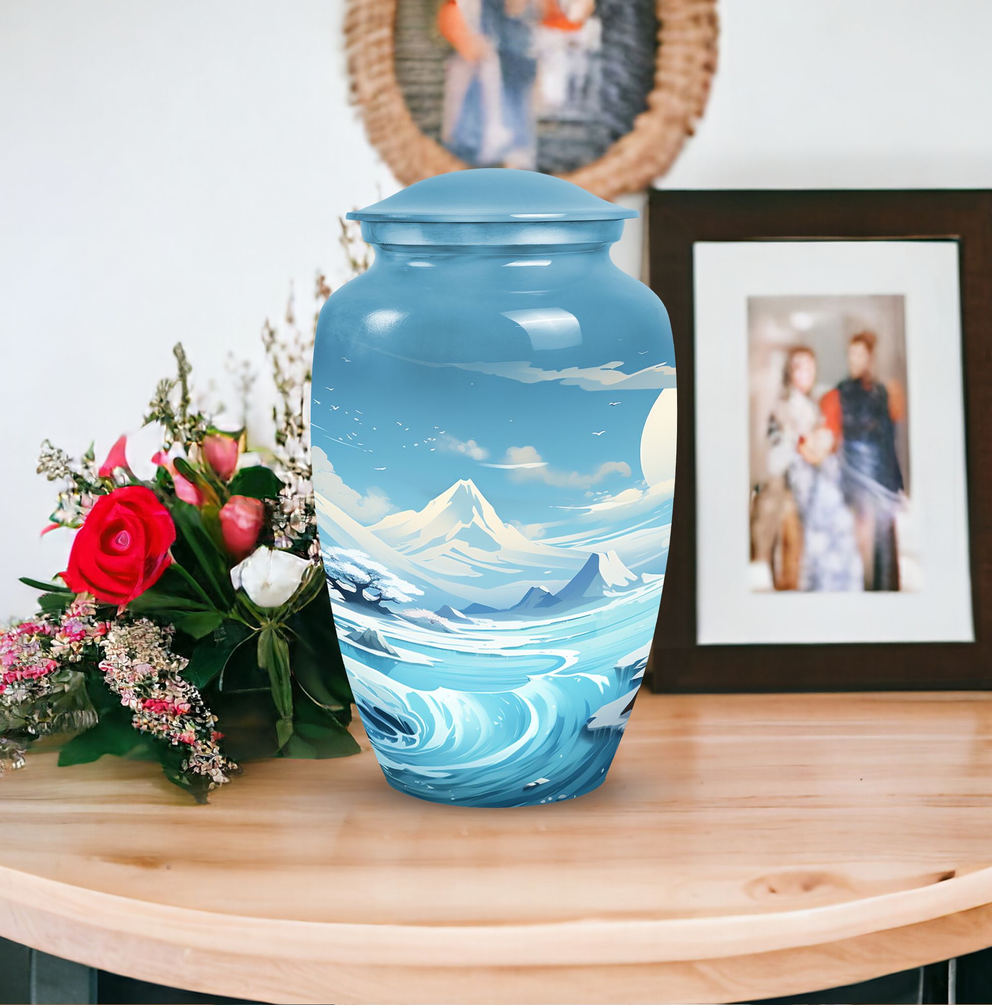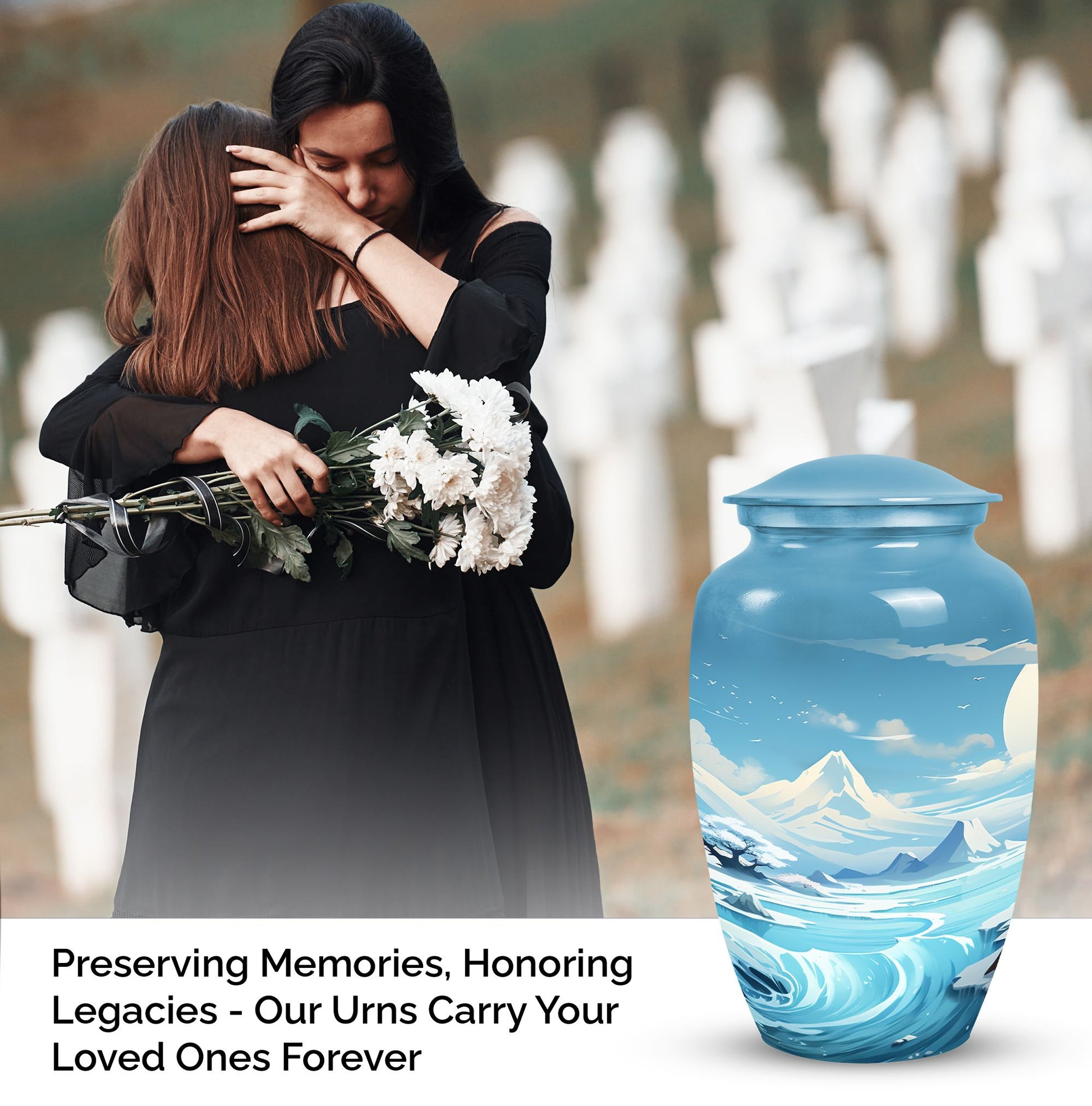 Capturing an ethereal beauty, our Clouds Urn creates a serene final resting place fitting the unique spirits that touched our lives. Ideal for Cremation Ashes of Mother or any beloved adult, this large urn emanates the poignancy of loss yet the tranquil acceptance that follows. Handcrafted with distinctive mastery, it affirms a heavenly abode accentuating symbolic immortality. Our urns for Human Ashes for Men resonates a Machismo of love's everlasting memories, while the Large Urn For Ashes For Women encapsulates the feminine spirit's endless journey. We ensure creating not just a Cremation Urn, but a piece holding onto the love and memories echoing into eternity. Perfectly accommodating large adult male or female remains, making it a poignant choice for your cherished ones' eternal slumber. An urn not merely a physical vessel but a celebration of a life lived and the love never diminishing.