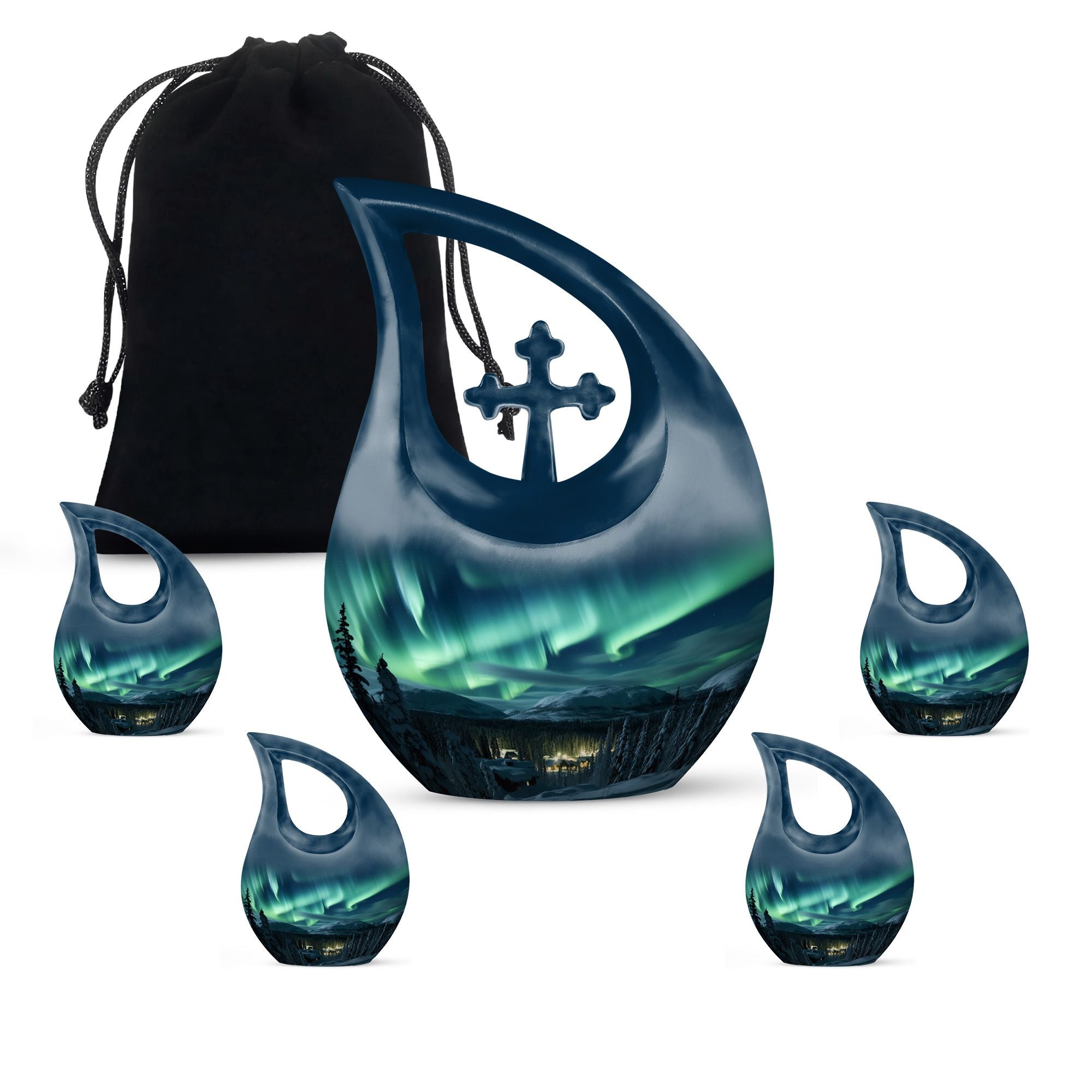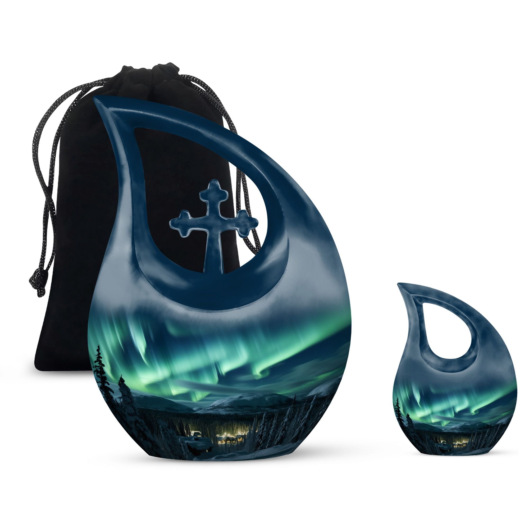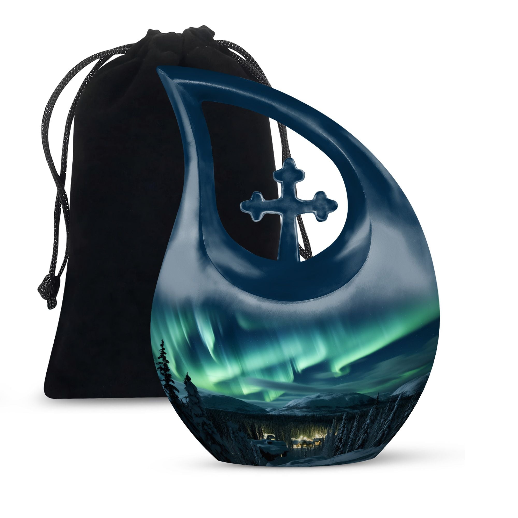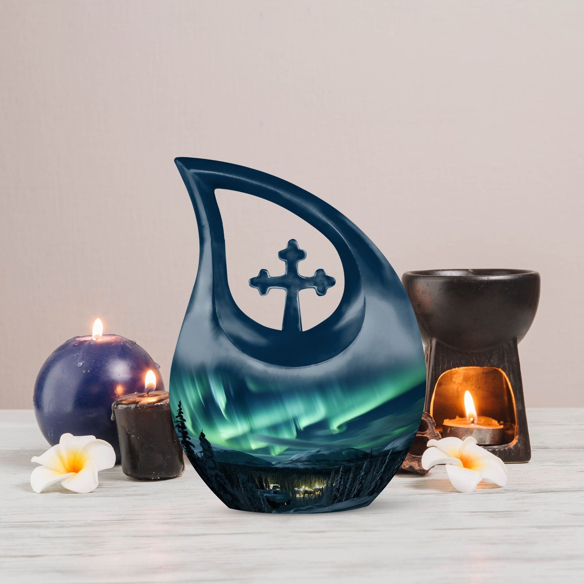 Celebrate the beautiful spirit of your loved one with the Decorative Northern Lights Cremation Urn, a timeless tribute symbolizing peace, light, and eternal love. Crafted for those who wish to keep memories alive in a dignified way, this large decorative urn provides the perfect resting place for your cherished one. Its captivating design mirrors the celestial glow of the northern lights, making it an exquisite choice among funeral urns for human ashes adult.