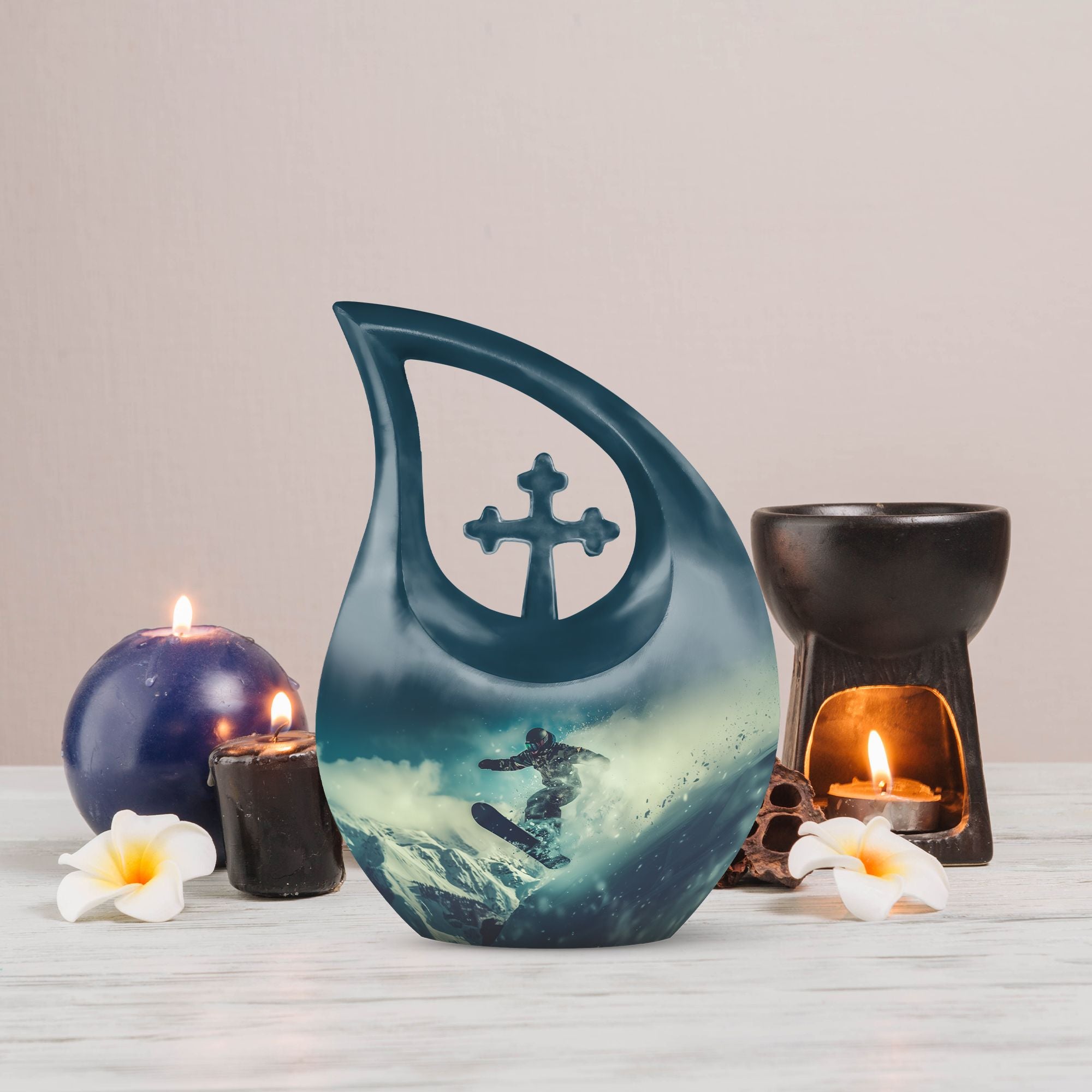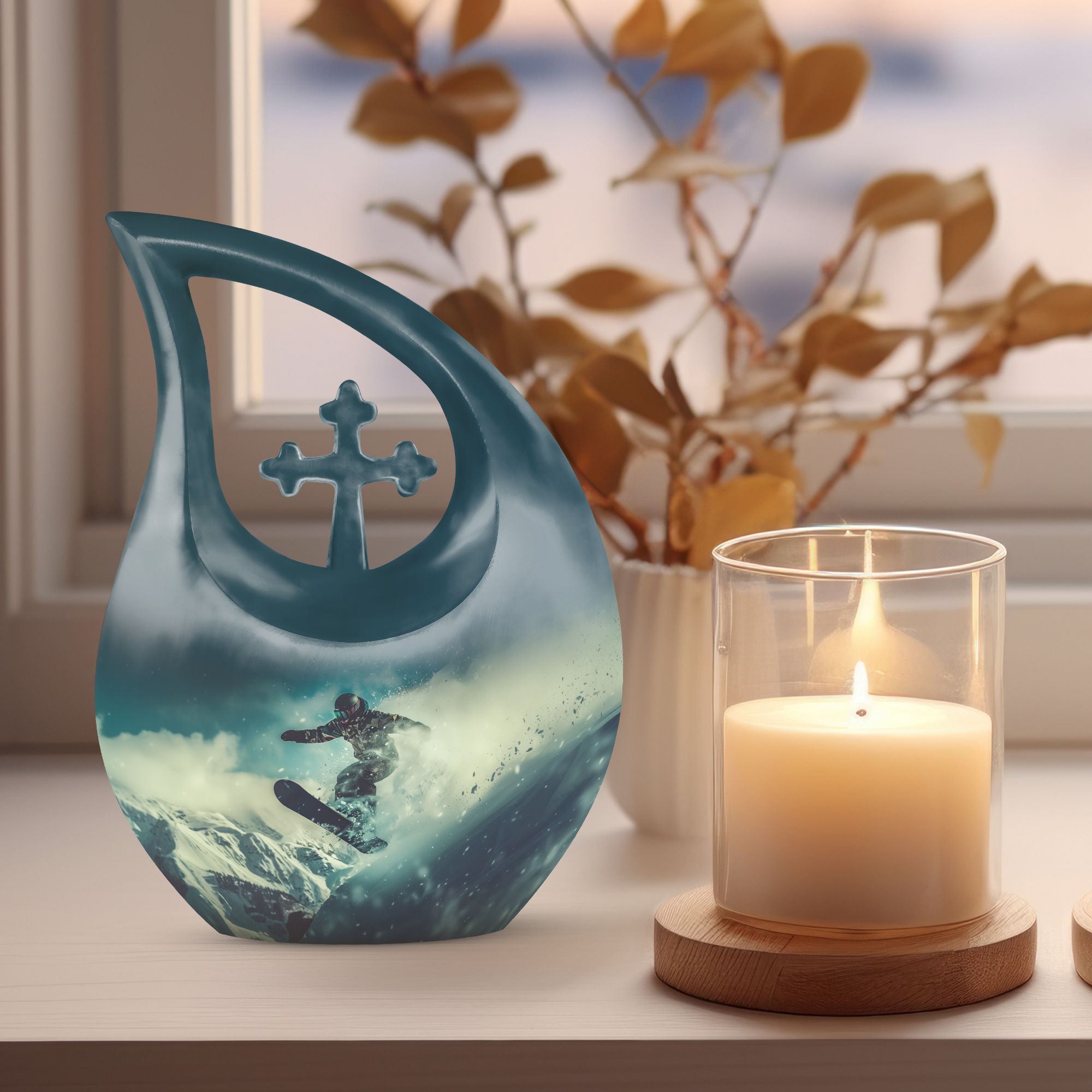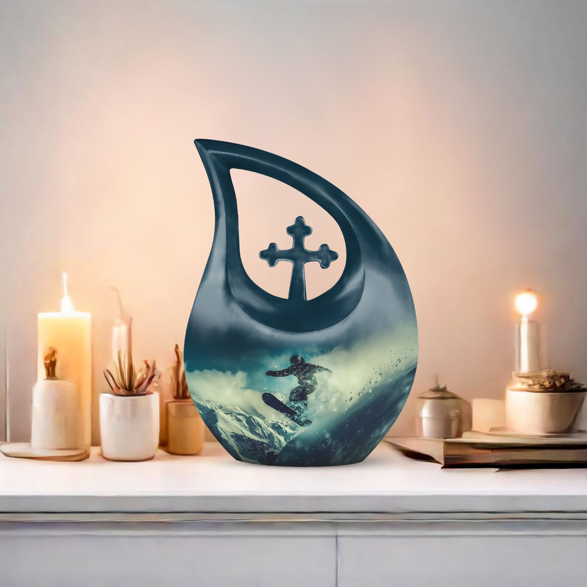 A memorial should honor both the spirit and the passions of a loved one. This Snowboarding Serenity Funeral Urn offers a heartfelt tribute for families seeking an urn for ashes for men, funeral urns for women, or a design that reflects adventure, freedom, and the joy of the mountains. Thoughtfully crafted, it provides comfort for families honoring active, vibrant souls.