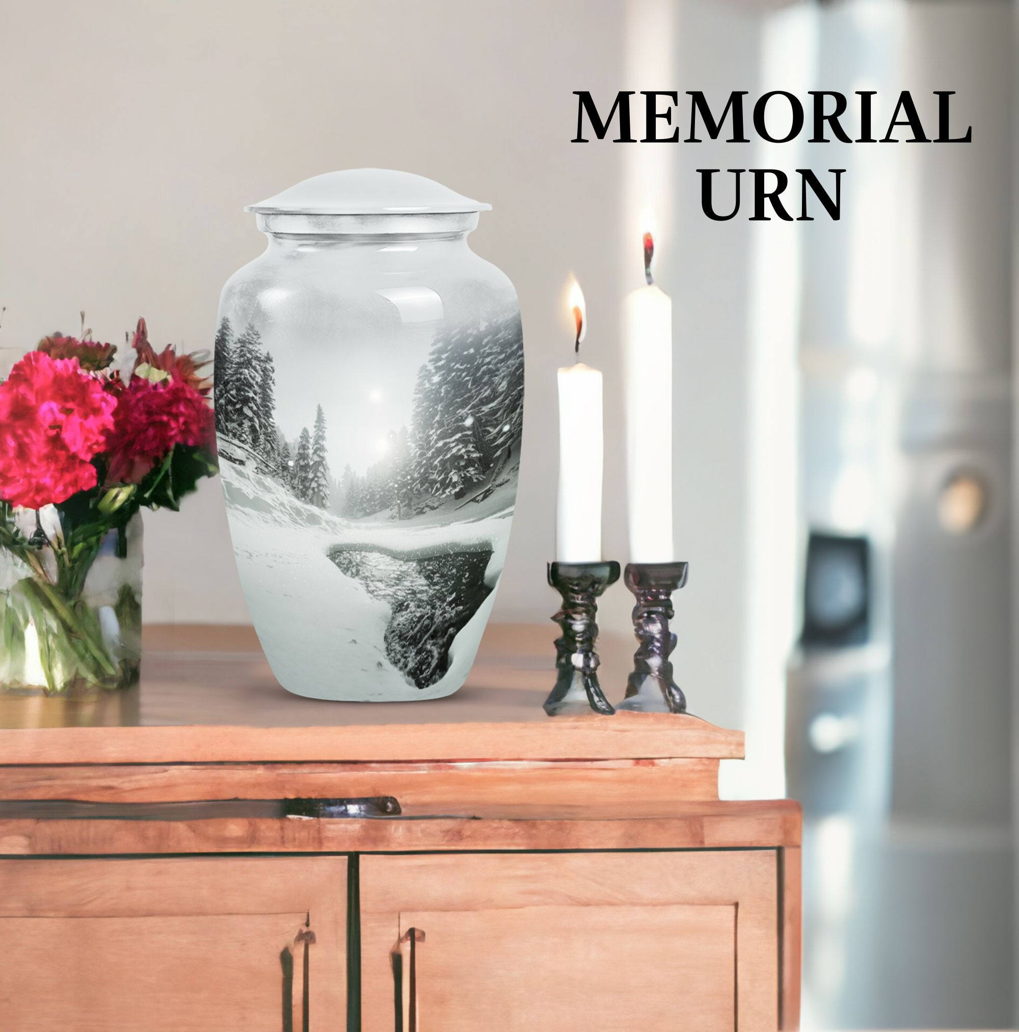 Expertly crafted, this decorative large urn combines artistry and functionality. Made from durable aluminium, it features a secure screw-top lid and a stunning snowflake pattern that symbolizes purity and remembrance. Perfect as a cremation urn for adult ashes women or adult urns for men & women, it brings style and dignity to any memorial setting. Its versatile design ensures it fits beautifully in homes, columbariums, or funeral spaces as a cherished urn for human ashes adult women.
