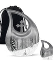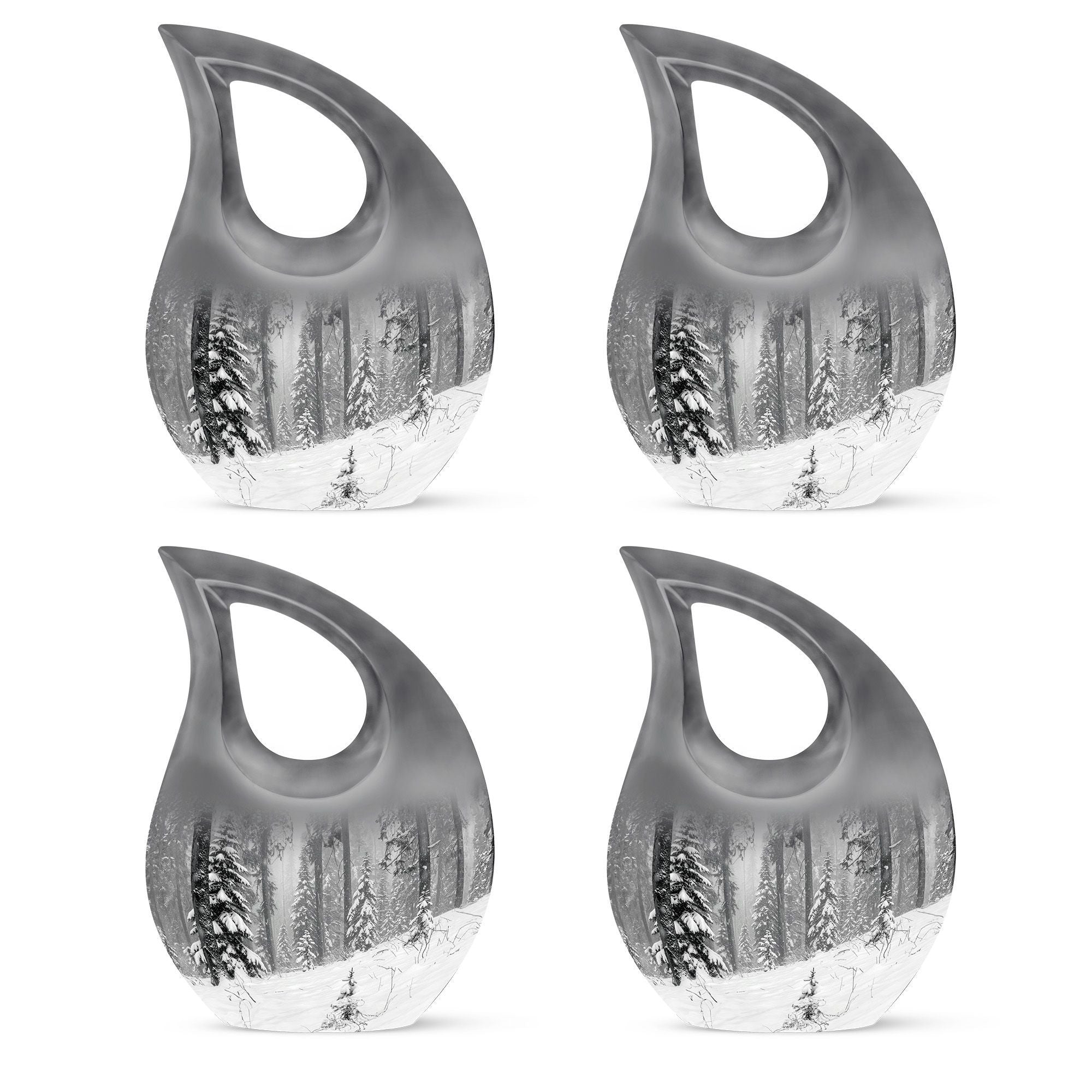 Crafted from durable aluminum, this urn features a smooth black finish accented with a delicate winter forest design. Its secure lid ensures the ashes are preserved safely, making it a reliable and timeless urn for cremations. Available in standard and cremation urns small sizes, it can also be part of a set of small urns for human ashes keepsake pieces for family members who wish to share in honoring a loved one. Each detail is made with care, offering both strength and beauty among the finest human cremation urns adult selections.