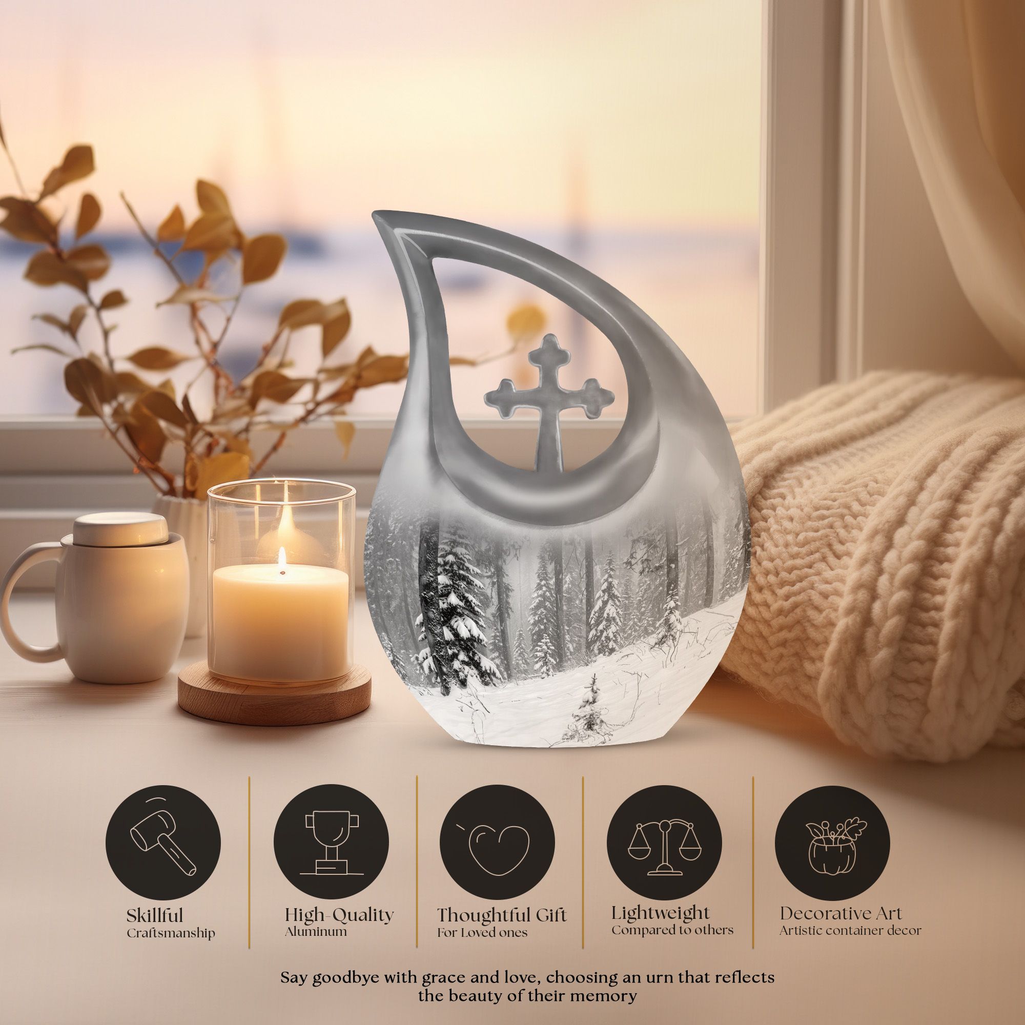 Let the Peaceful Snow Forest Memorial Urn serve as a timeless tribute — a serene reflection of love, peace, and the beauty that remains forever.