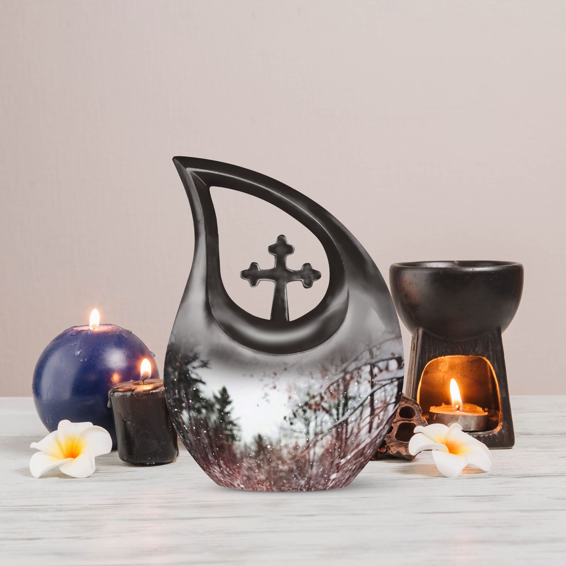Snow Forest Cremation Urn - Decorative Large Urns For Human Ashes