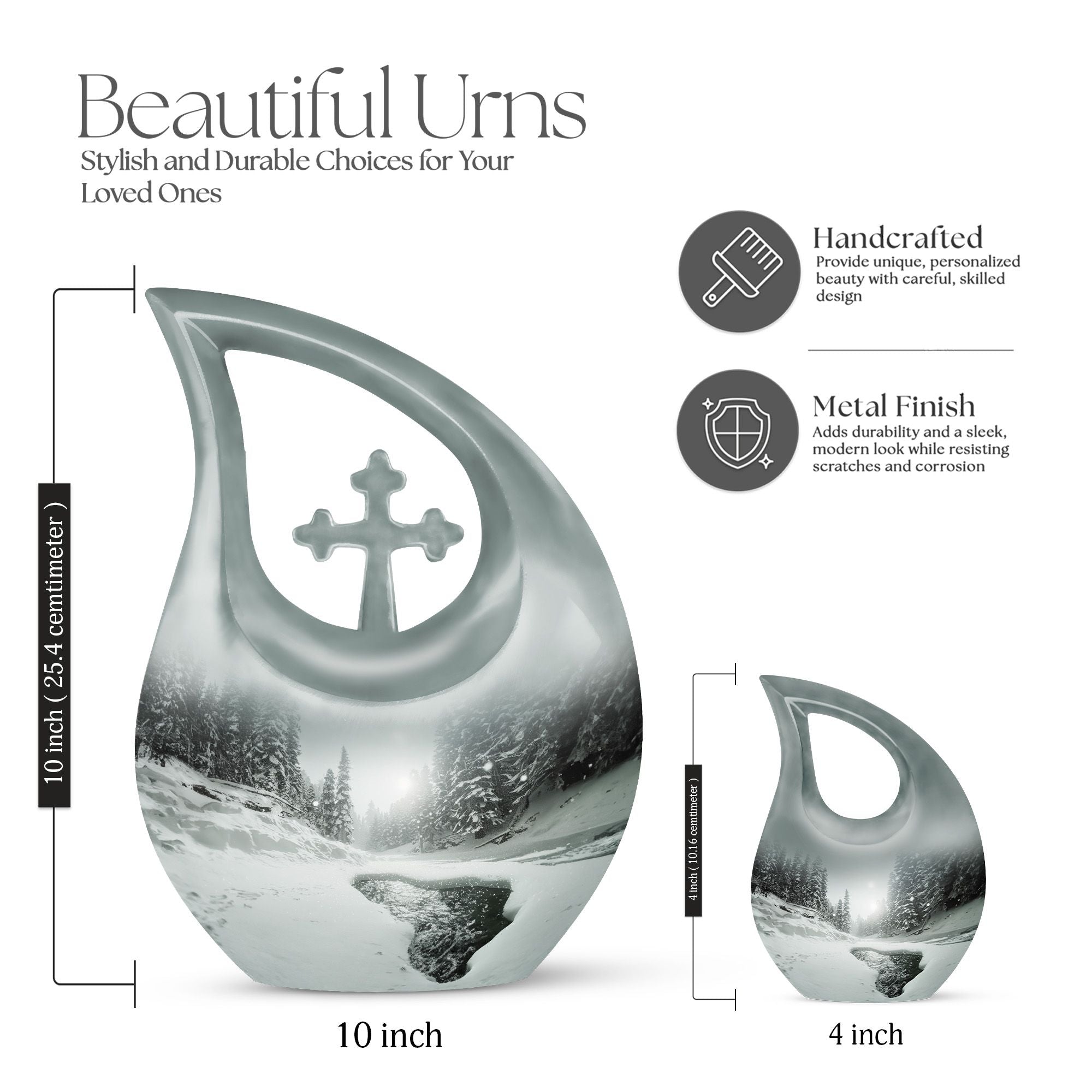Honor the spirit of your loved one with the Winter Forest Cremation Urn for Human Ashes, a symbol of peace, beauty, and everlasting memory. Inspired by the quiet stillness of a winter landscape, this cremation urn for human ashes offers comfort through elegant design and timeless craftsmanship. Its soft silver tones and gentle curves reflect tranquility, making it a perfect choice for both home display and memorial ceremonies.