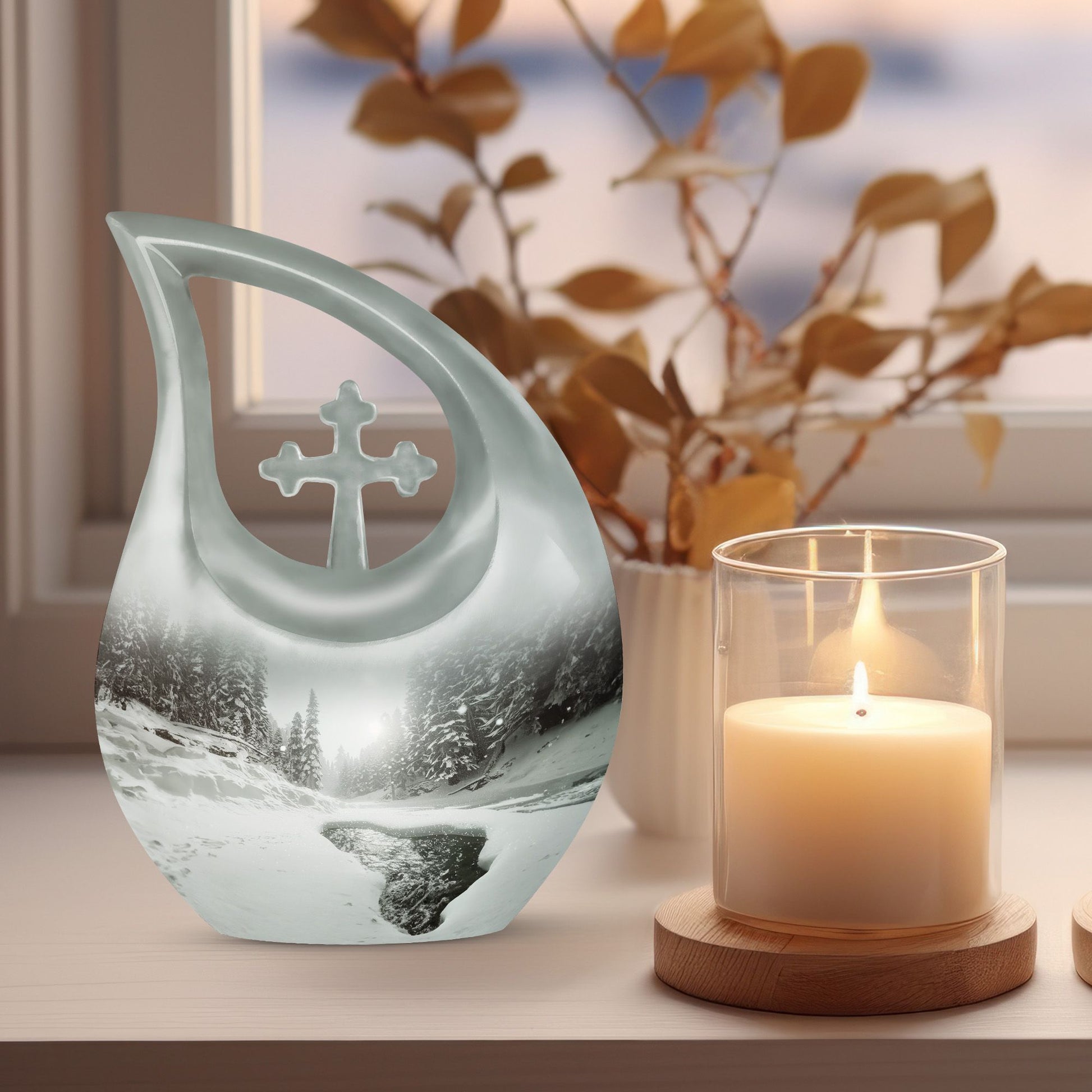 Let the Winter Forest Teardrop Urn be a comforting symbol of remembrance — a reflection of nature’s stillness and the timeless bond that lives forever in your heart.