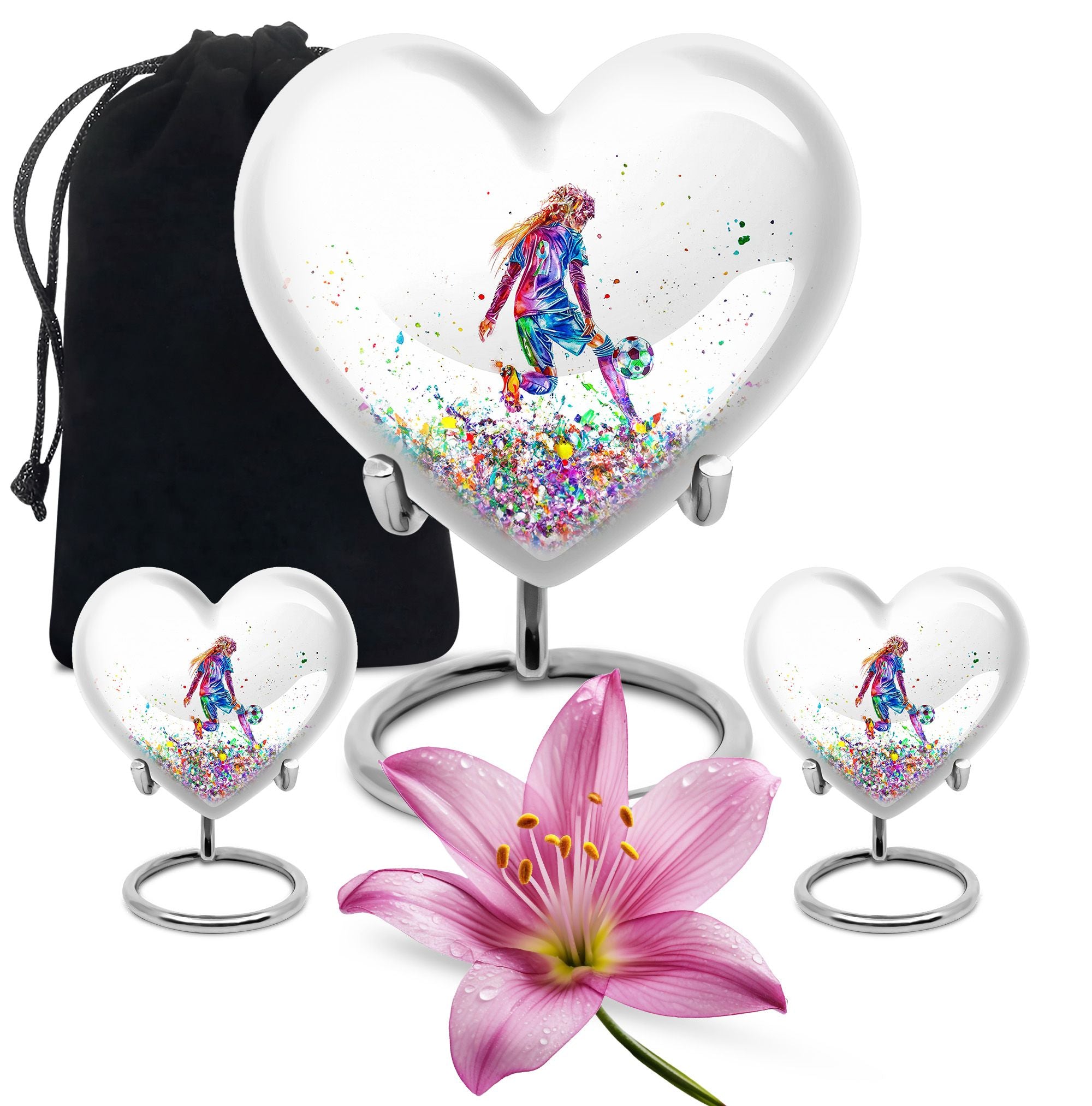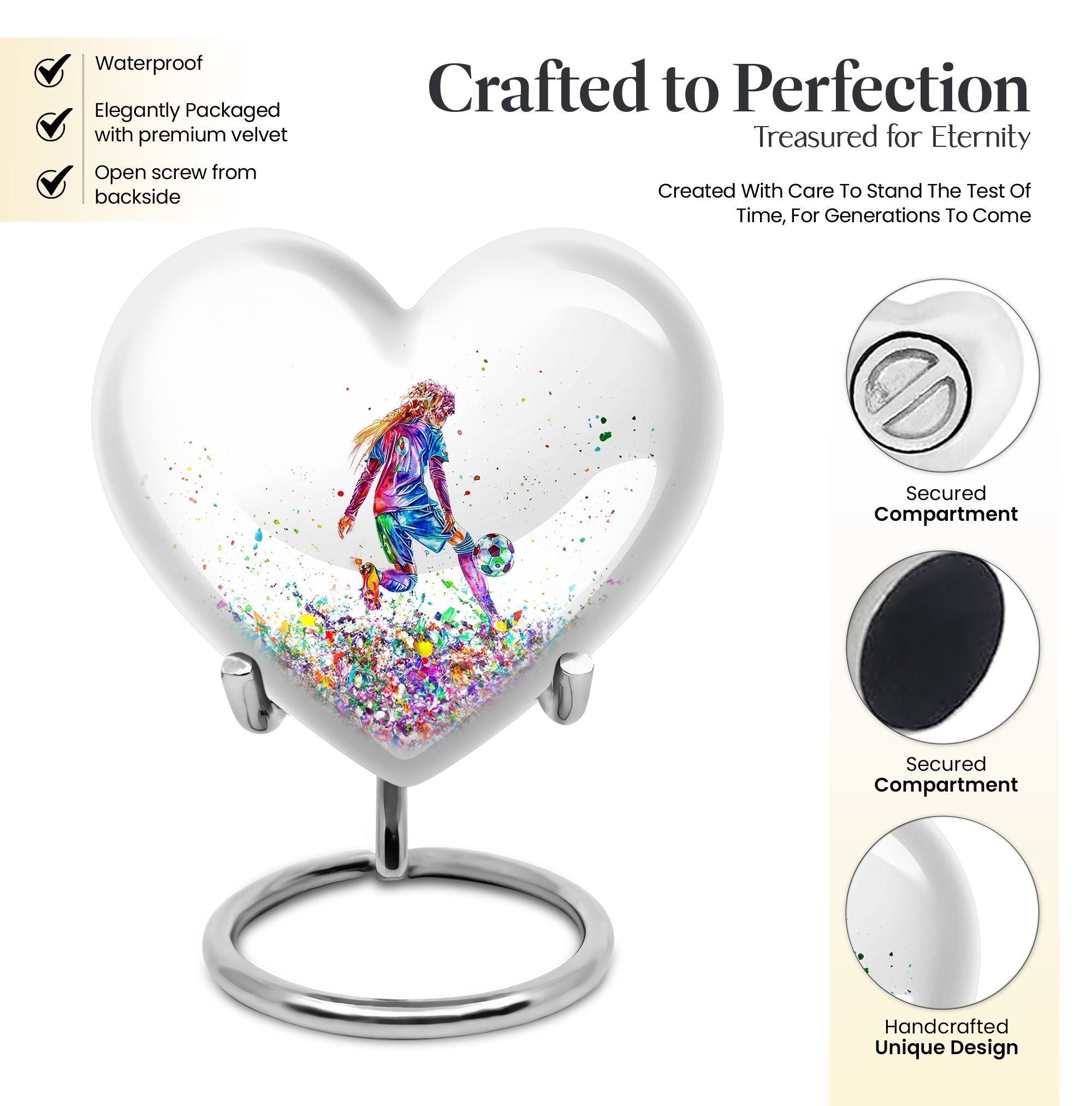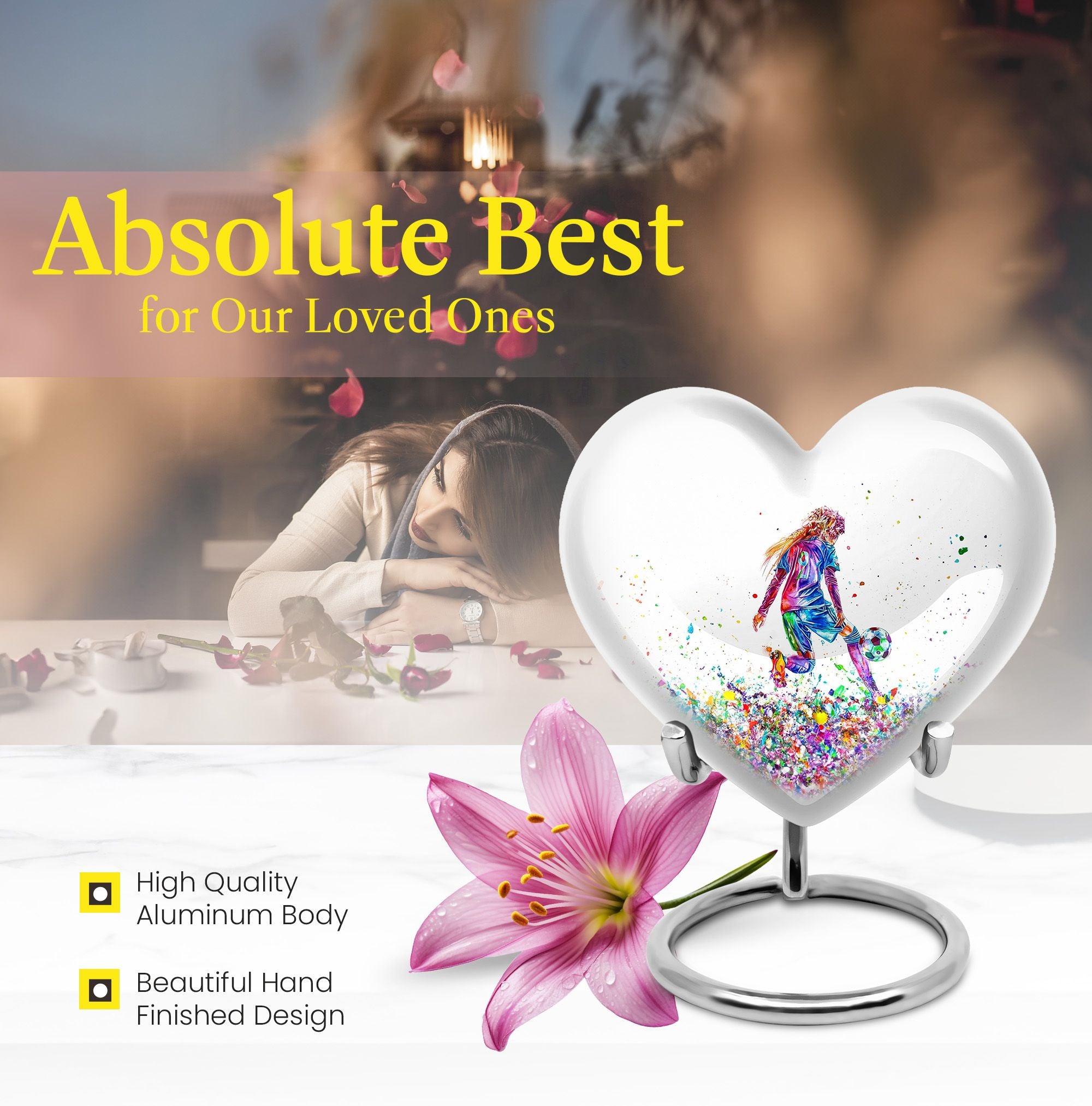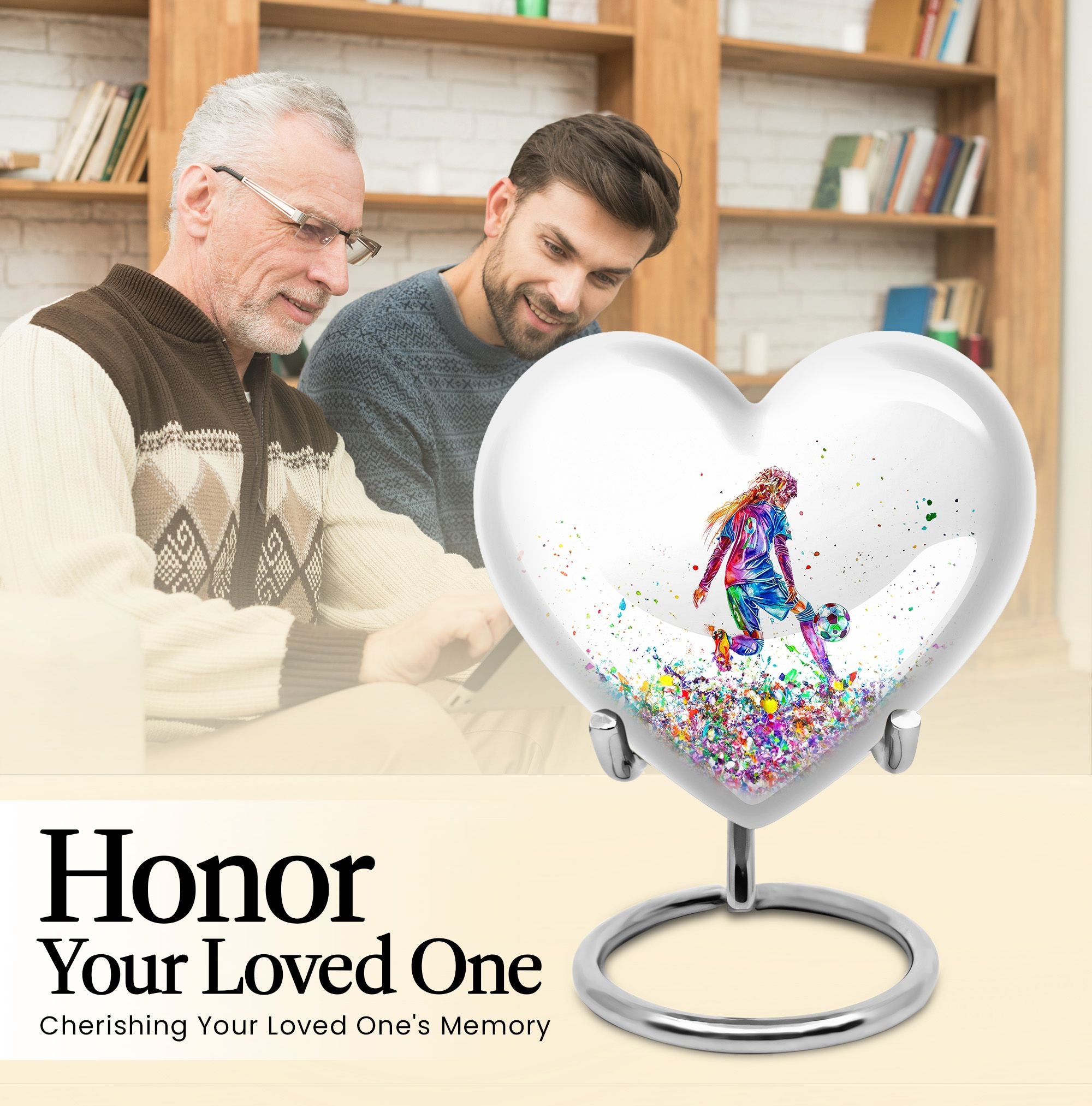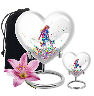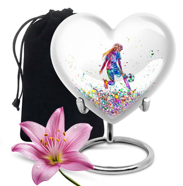 Honor the memory of a passionate soccer enthusiast with our Soccer Tribute Memorial Cremation Urn. This elegant funeral urn features a beautifully crafted soccer design, making it the perfect tribute for someone who loved the game. Expertly made with high-quality materials, this urn offers a dignified and lasting resting place for your loved one, celebrating their life and love for soccer. Whether displayed at home or used in a memorial service, this urn serves as a heartfelt reminder of the cherished moments shared on and off the field.