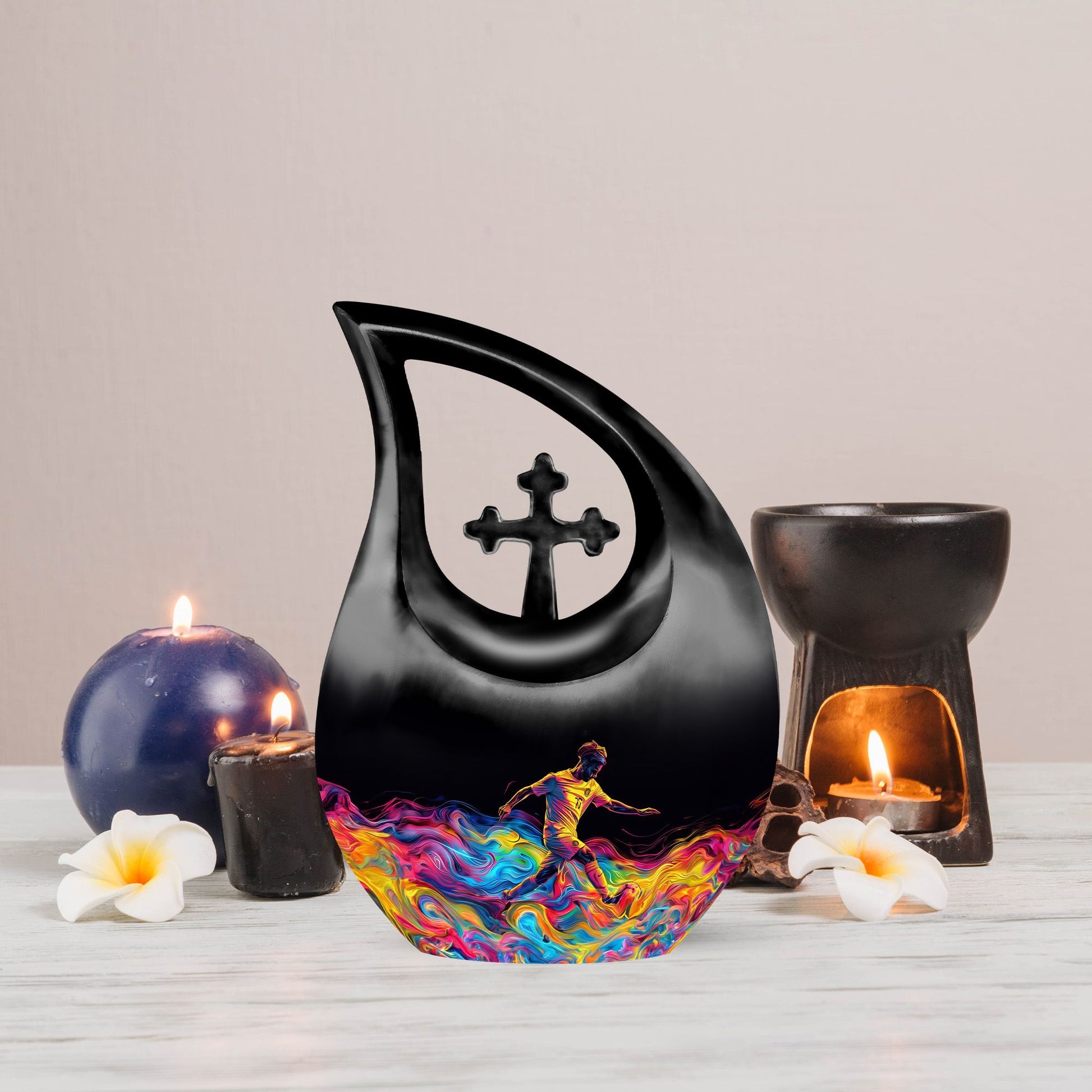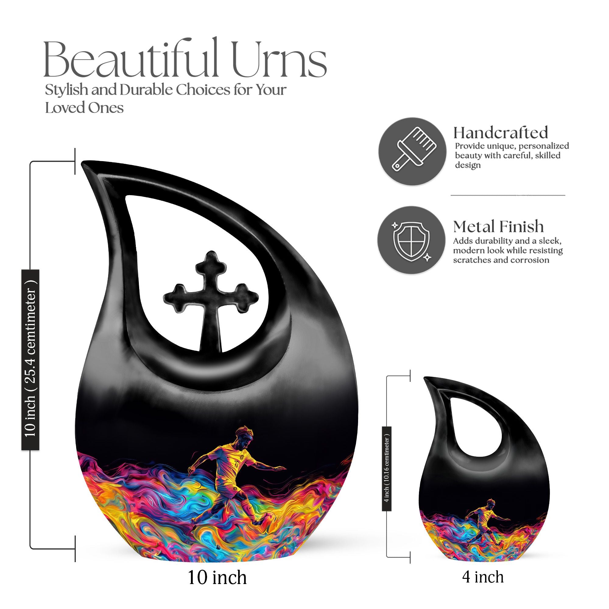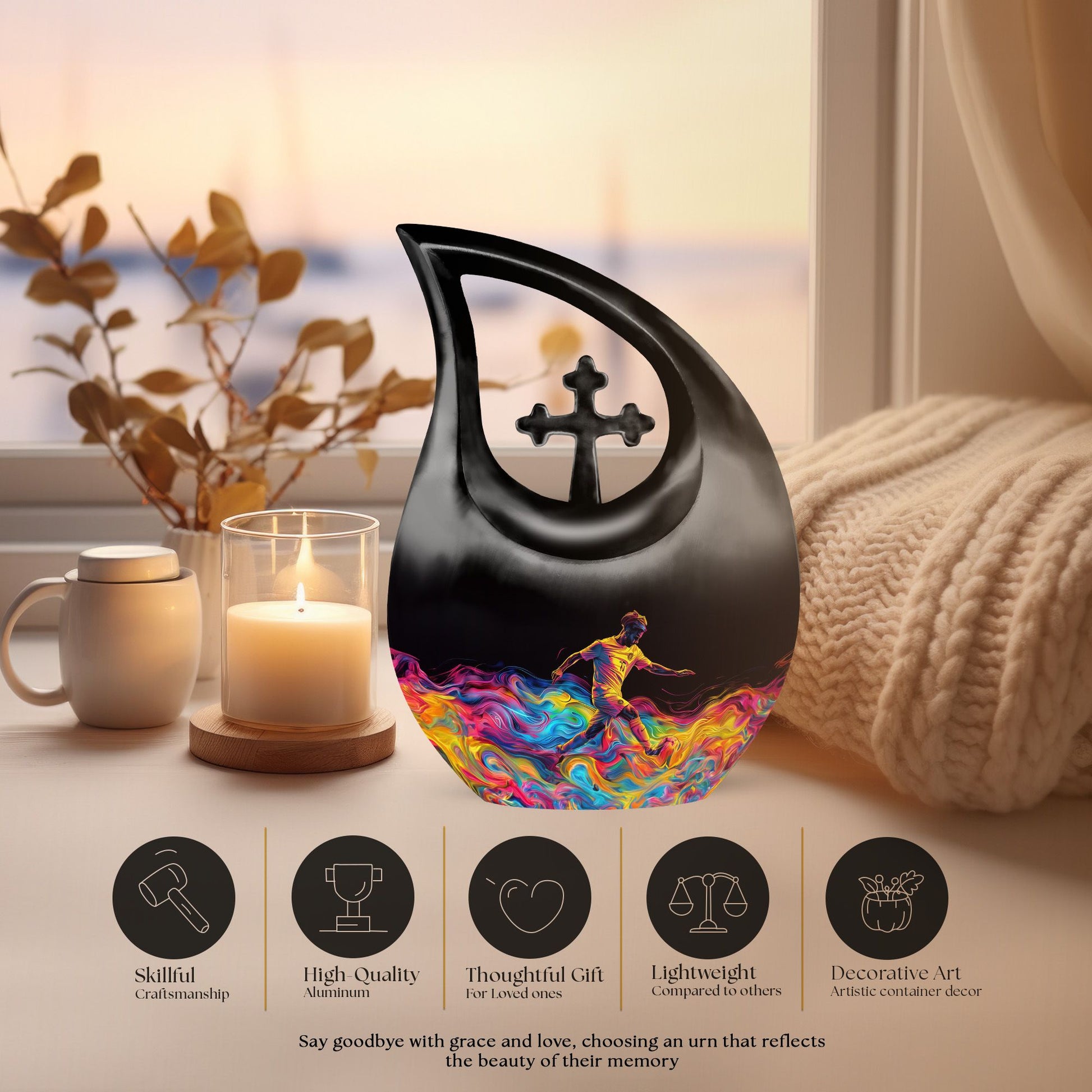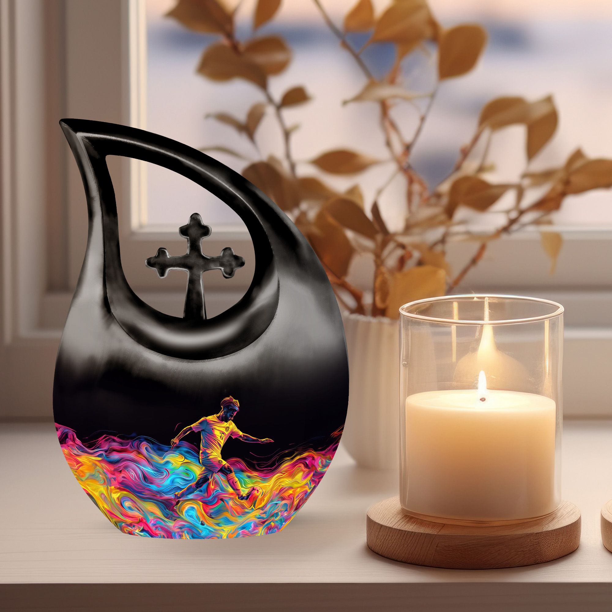 This Colorful Soccer Cremation Urn offers a heartfelt tribute for anyone whose passion for the game brought joy to family and friends. Designed to provide comfort and dignity, it serves beautifully as an urn for ashes adult female or an urn for adult male, honoring a life filled with energy, teamwork, and unforgettable moments on the field.