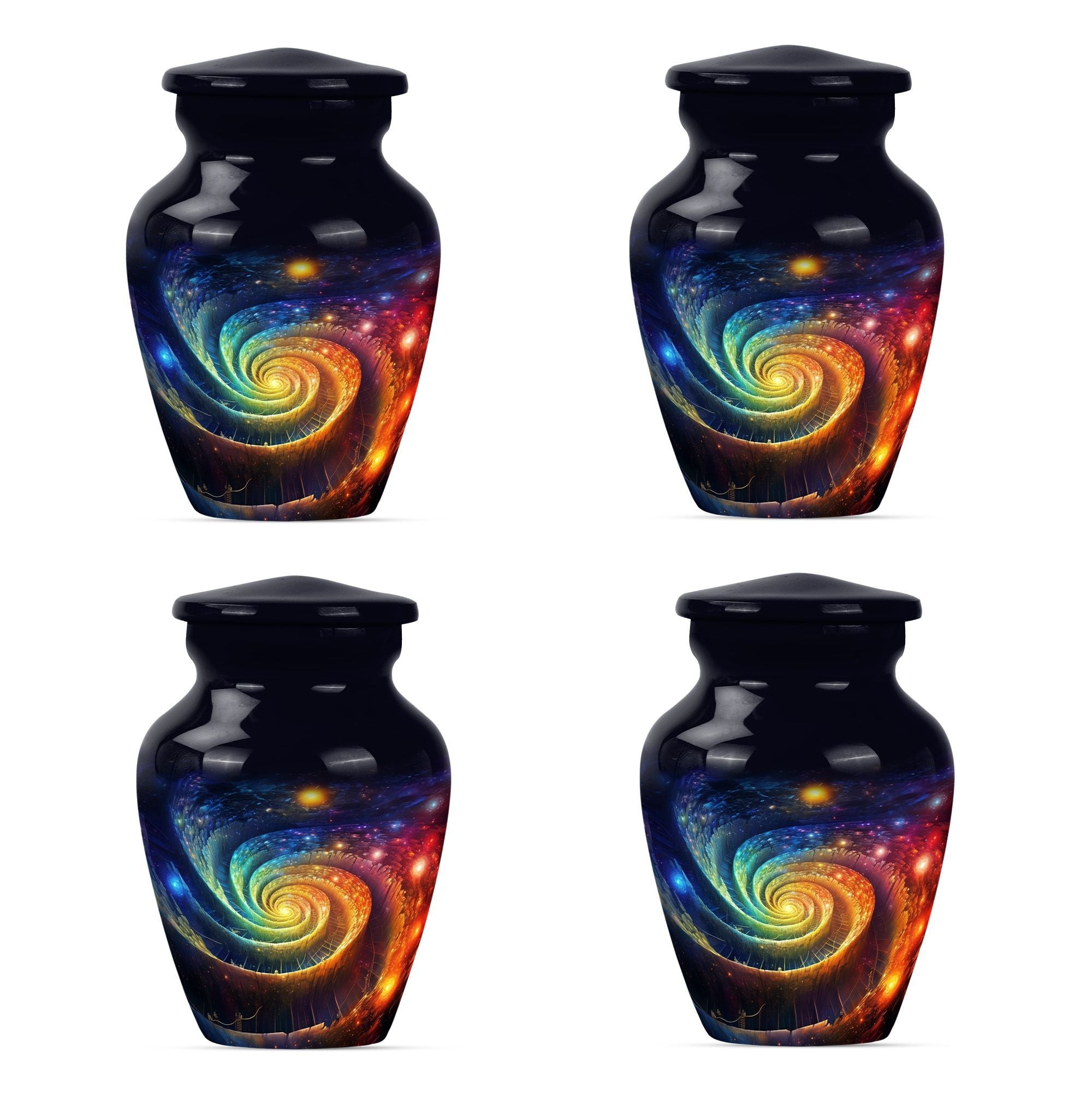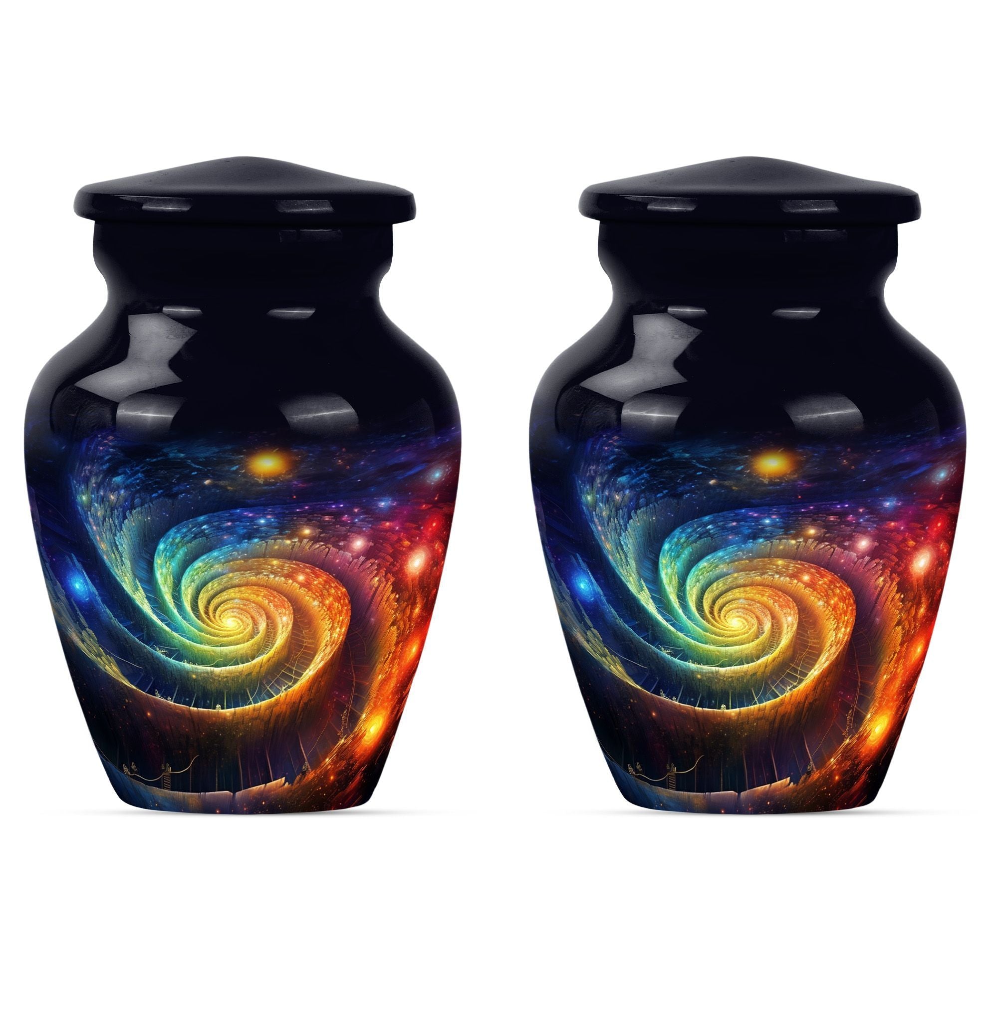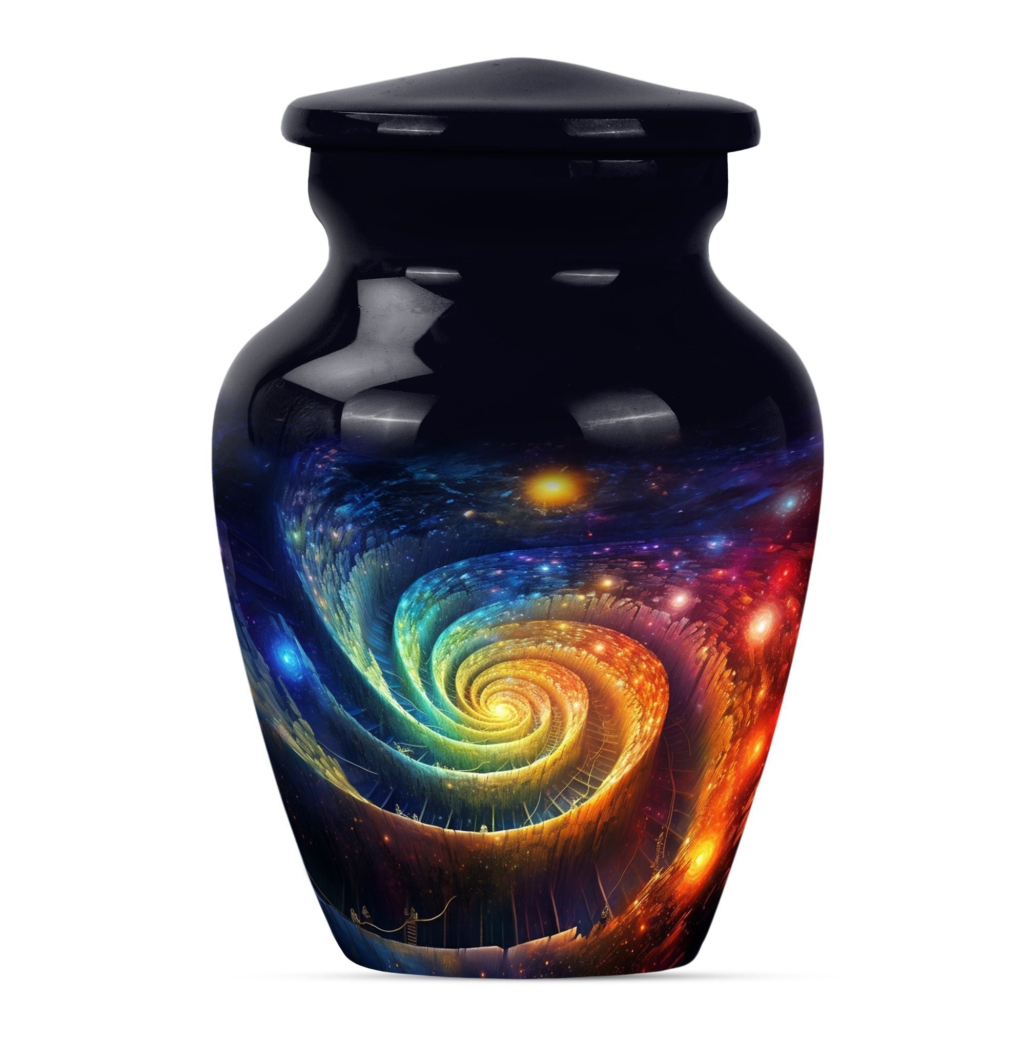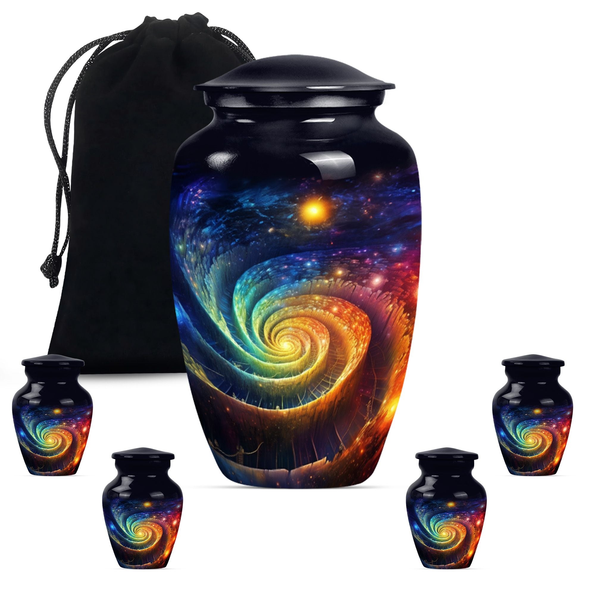 Immerse yourself in the poignant beauty of memorial remembrance with this enchanting 10 inch Galaxy Urn. A comforting tribute for the significant men in your life, it beautifully combines the strength and beauty of Aluminum. Weighing a modest 3.3 pounds, this urn is as substantial as it is minimalistic. Its classic design is tastefully accentuated with a vibing 'Purple Meadow' theme that lays beautiful on its large urn profile. Its capacity holds a generous 200 cubic inches of ashes, offering ample space to preserve the memory of your loved one. Along with the Galaxy Urn, the package also contained a velvet pouch for safe containment of those precious ashes. Adding a profoundly personal touch, the urn can be customized with engraved names. Celebrate their legacy and transform their final resting place into one of elegance with these stylish funeral urns for men's ashes. This work of art is not just a decorative urn but a piece that cherishes the precious moments you shared with them.