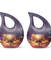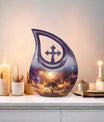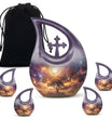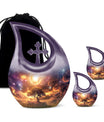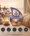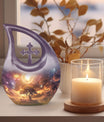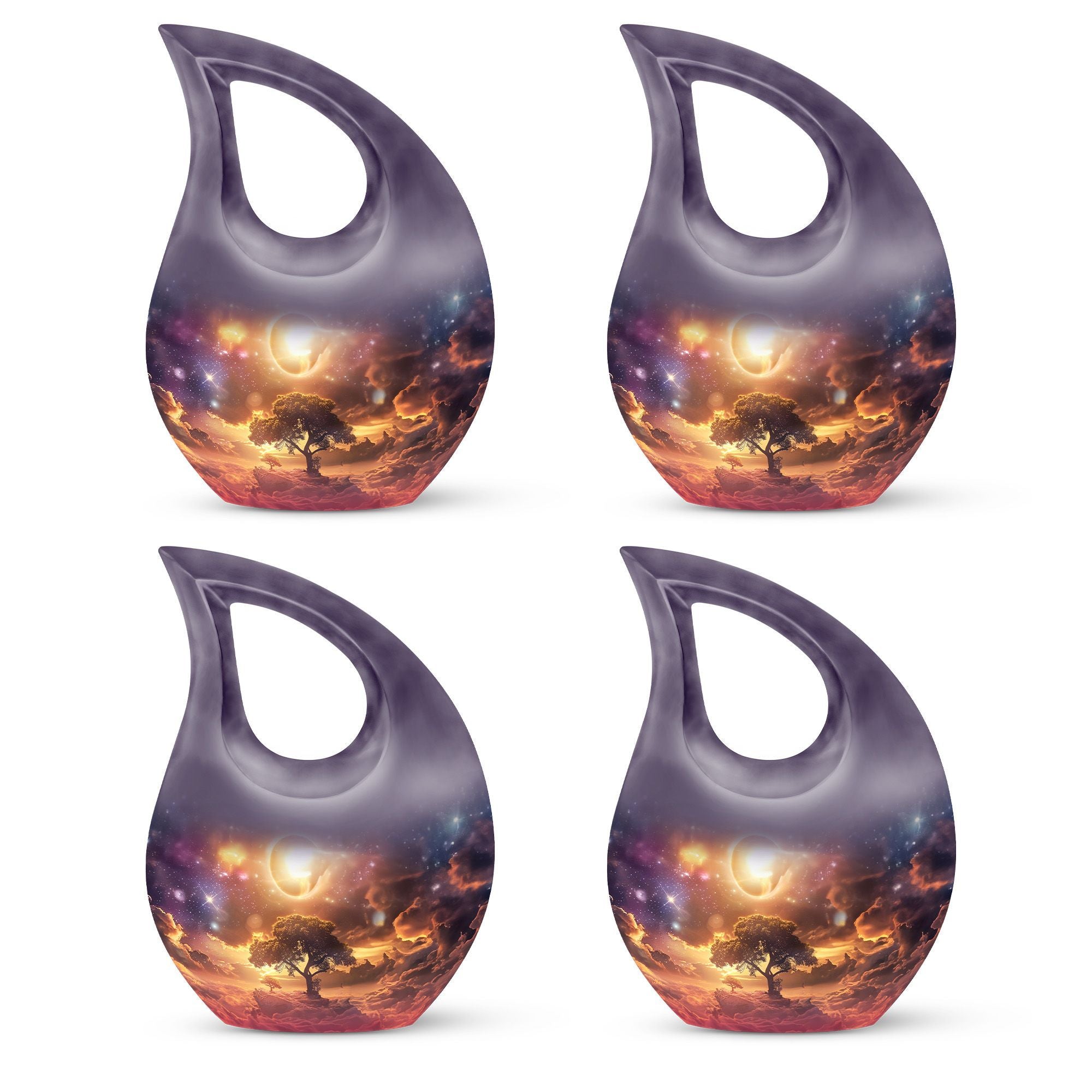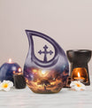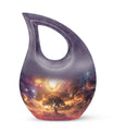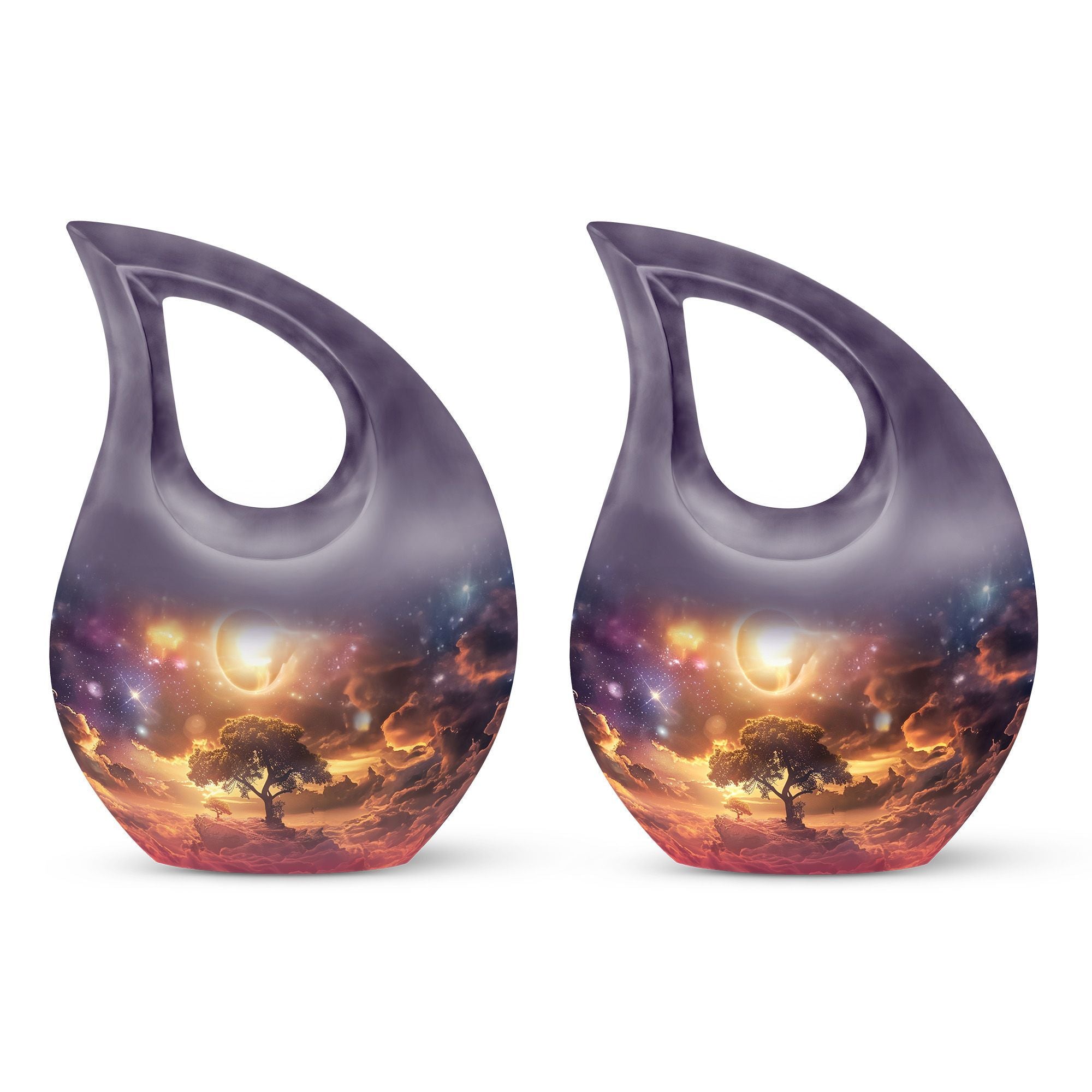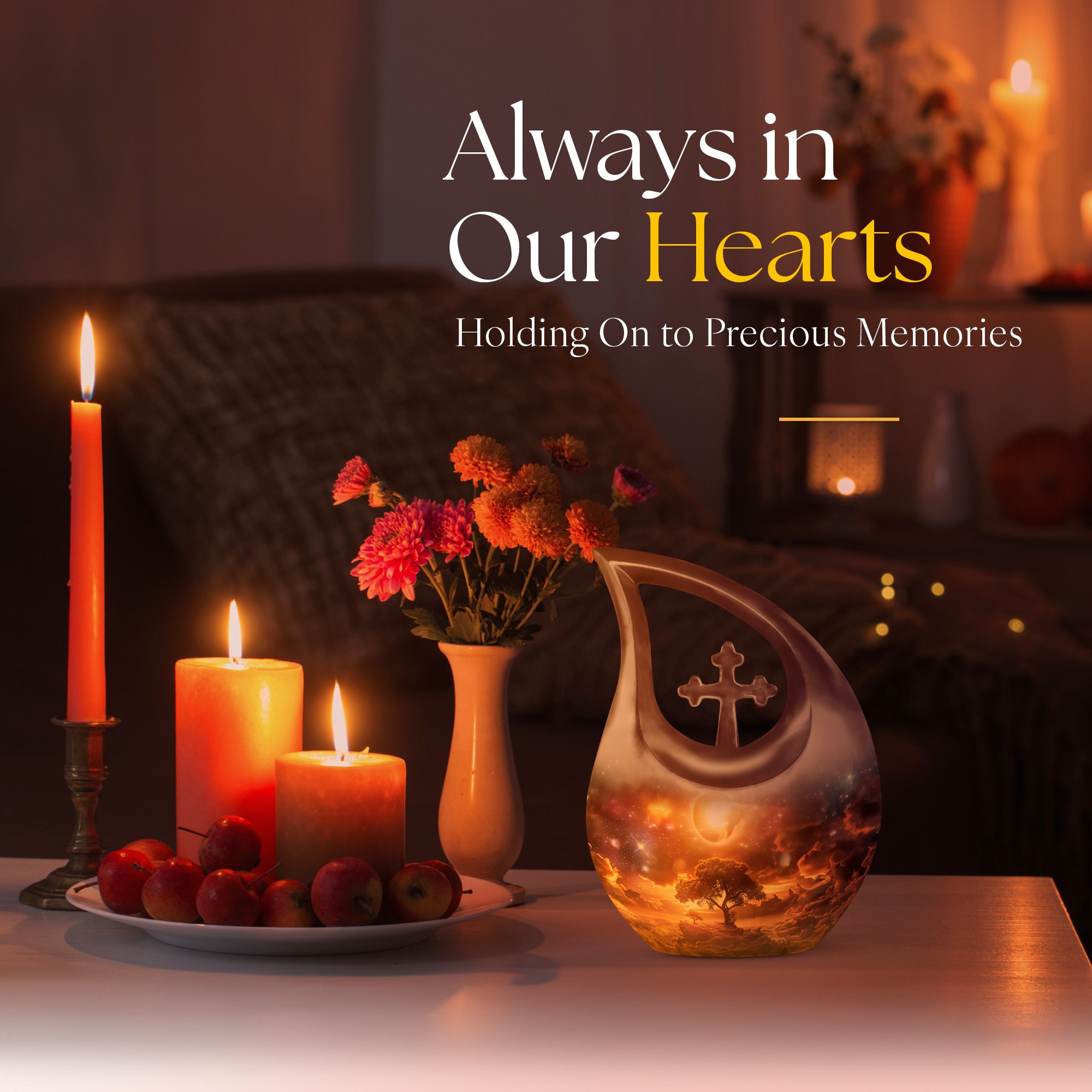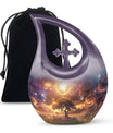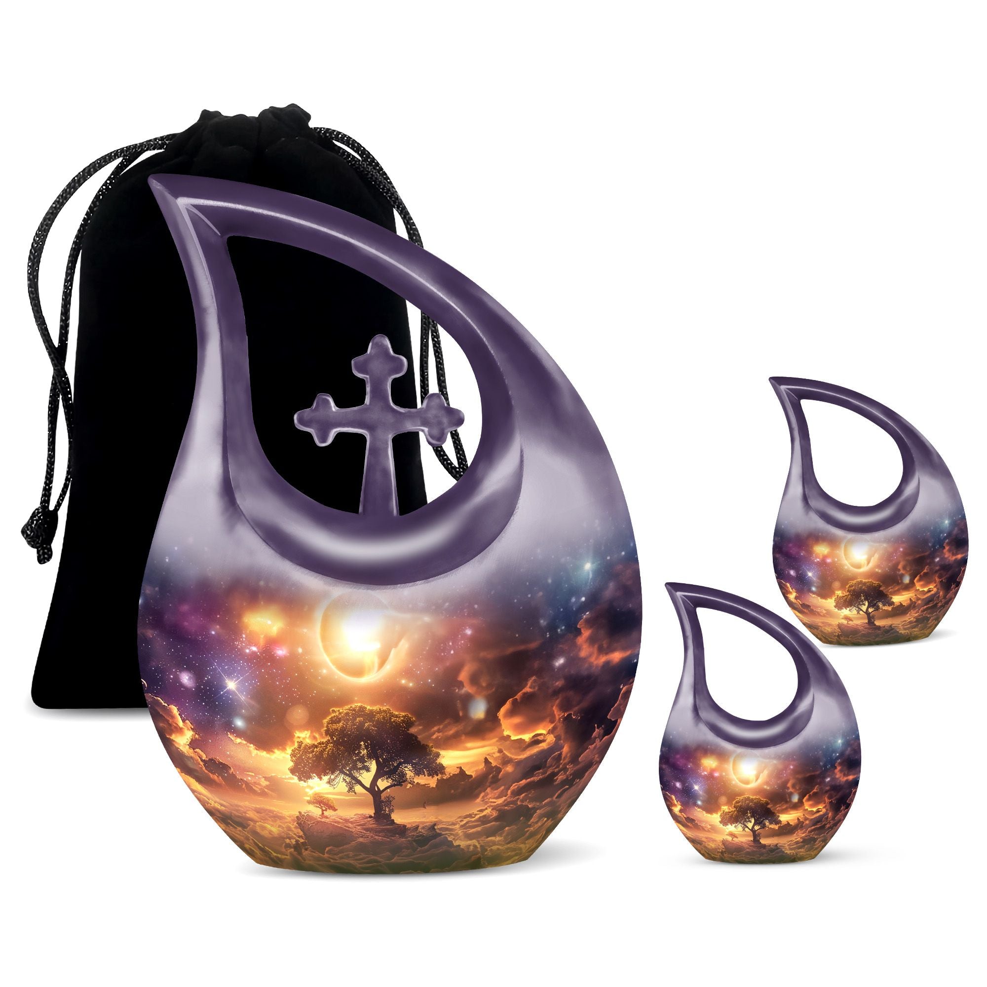 With a unique concept of remembrance, our Solar Symphony Urn is an emotionally striking choice among Decorative Urns for Human Ashes, bringing solace and comfort during a time of bereavement. The design, a Cross Drop symbol, adds an element of gravity and nobility. Crafted from high-quality Aluminum, this Large Urn has a weight of 3.3 pounds and stands tall at 10 inches, with the capacity of 200 cubic inches, suitable for any adults. A velvet pouch accompanies the urn for the safe containment of ashes, adding another layer of respect and modesty. Complementing the dignity of the urn is the personalization feature that allows for engraved names, creating a unique heartfelt tribute. Whether you're in search of Personalized Urns ideal for Mom, or XL Urns for Human Ashes, or Small Memorial Urns, our stand-out Solar Symphony Urn ties it all together with a beautiful and solemn final resting place for your loved ones.
