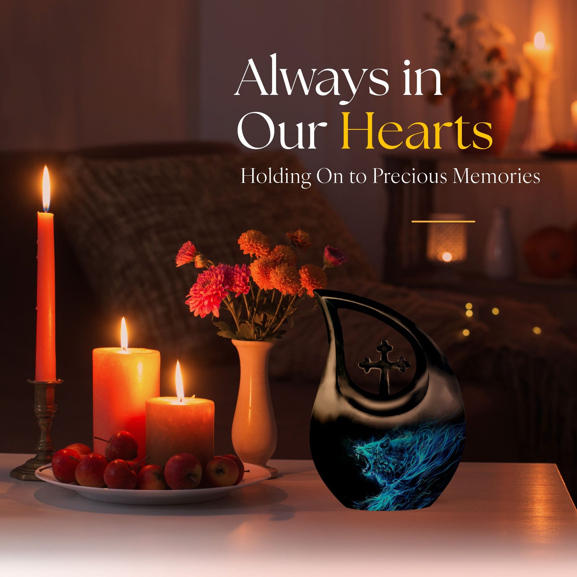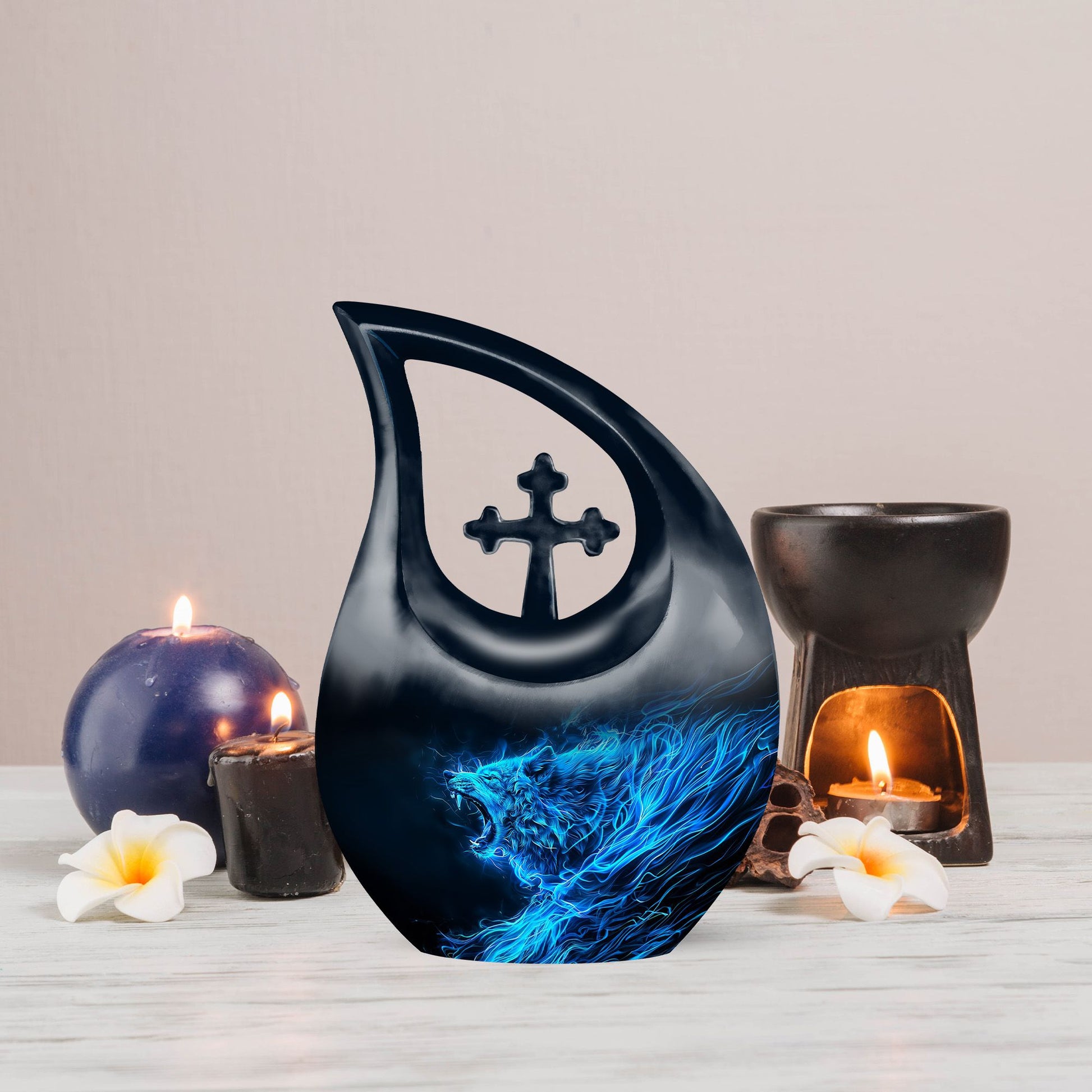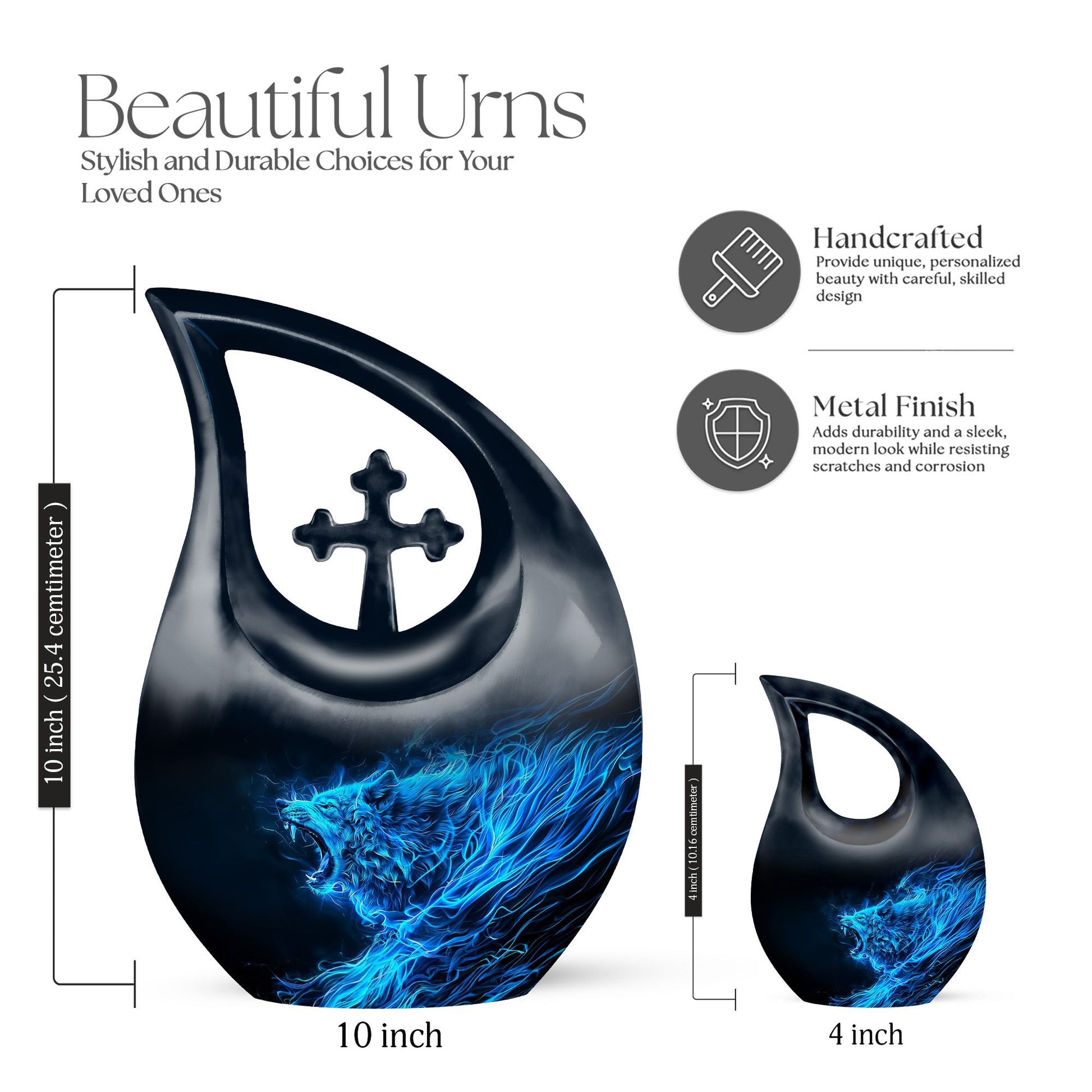 Keep the memory of your loved one alive with our unique 10-inch Wolf Urn. Crafted meticulously with a captivating Cross Drop theme, this Garden Urn for Ashes is more than just a resting place; it’s a monumental tribute. Our urn is constructed from high-grade aluminium for long-term durability and adorned with an exquisite wolf theme that reflects natural beauty. This Large Urn boasts a capacity of 200 cubic inches, adequately sized to hold remains securely. Weighing 3.3 pounds and standing at a full 10 inches in height, this Burial Urn gracefully balances stability and grandeur. Its personalized appeal is reflected in our customized offer, where you can engrave names to further immortalize your beloved’s memory. This tribute comes complete with a velvet pouch for sensitive containment of ashes. Our Wolf Urn showcases the harmony of strength and elegance, making it one among the best memorial urns for endowing a lasting homage. NB: Unique terminology applied to enhance SEO.