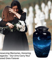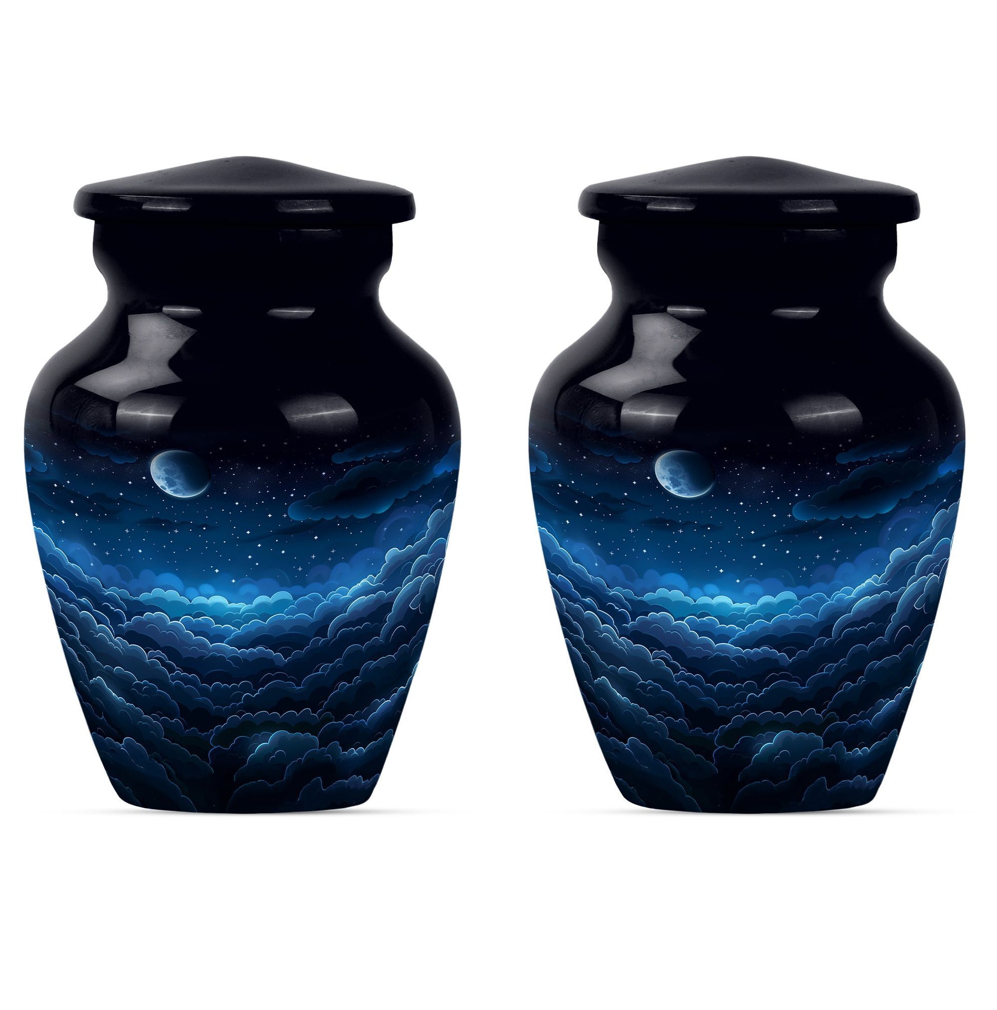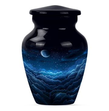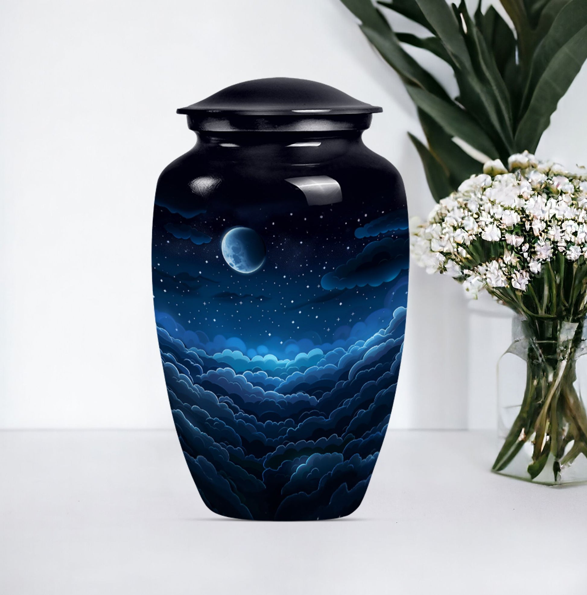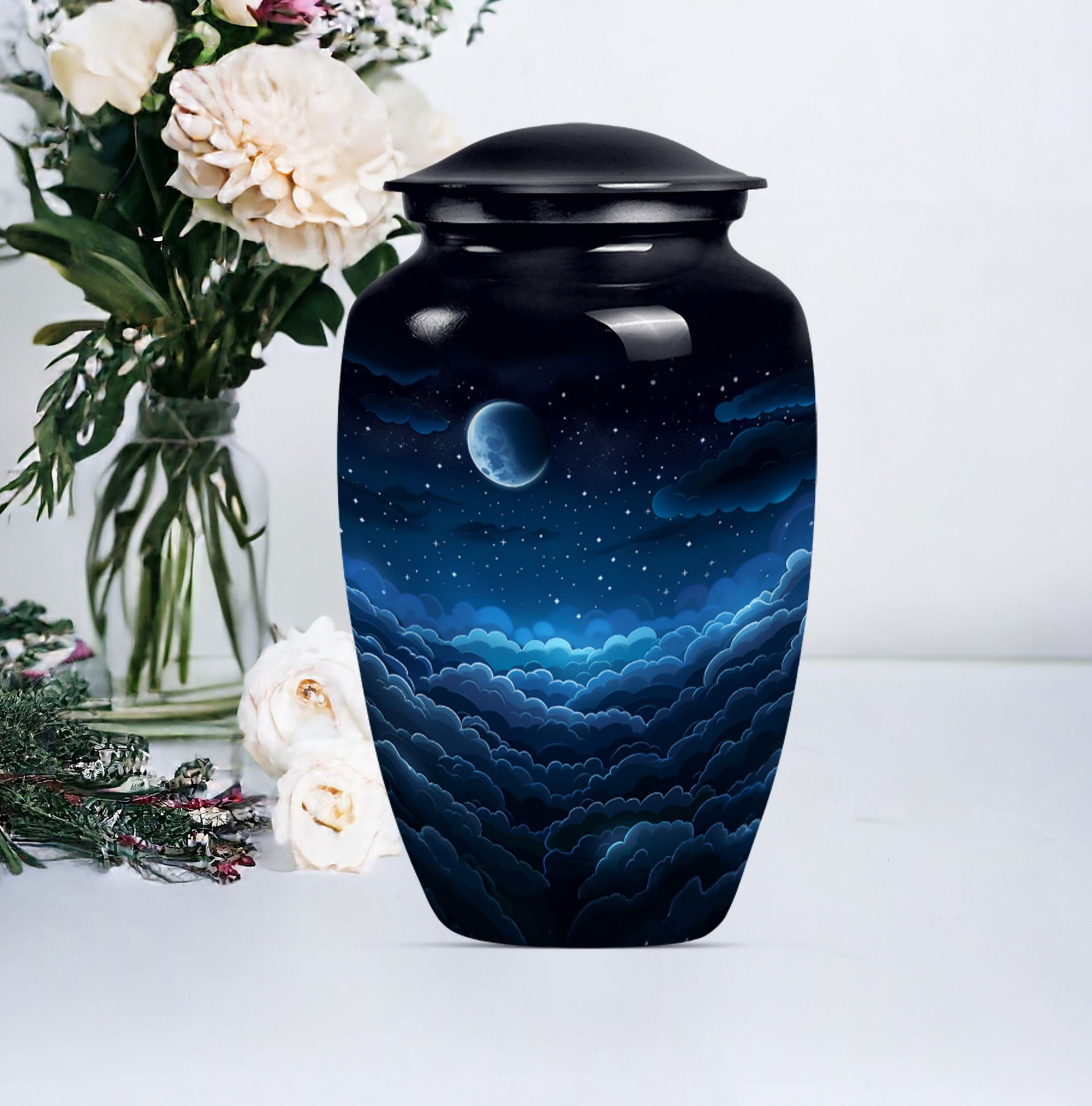 Immerse in remembering your loved ones with our captivating 10-inch Clouds Urn. Inspired by the harmony of the heavens, this 'Urns for Adult Cremation Ashes' is a respectful, significant piece for preserving your beloved's essence. Crafted from robust, everlasting aluminium, the weight of 3.3 pounds reflects the enduring demonstration of your abiding love and memory. Sized at 10 inches in height, this large urn holds a capacity of 200 cubic inches, ensuring your loved one's entirety is embraced. Additionally, the offer includes a plush velvet pouch for respectfully containing the ashes. Moreover, there is an exclusive opportunity to personalize this transferable generational heirloom with engraved names, creating an enduring family treasure. Our butterfly-themed urn creates a serene, restful cornerstone in your memorial space. Stay connected with the departed using our burial ash urns for humans - an eloquent centrepiece for cherishing those meaningful memories.