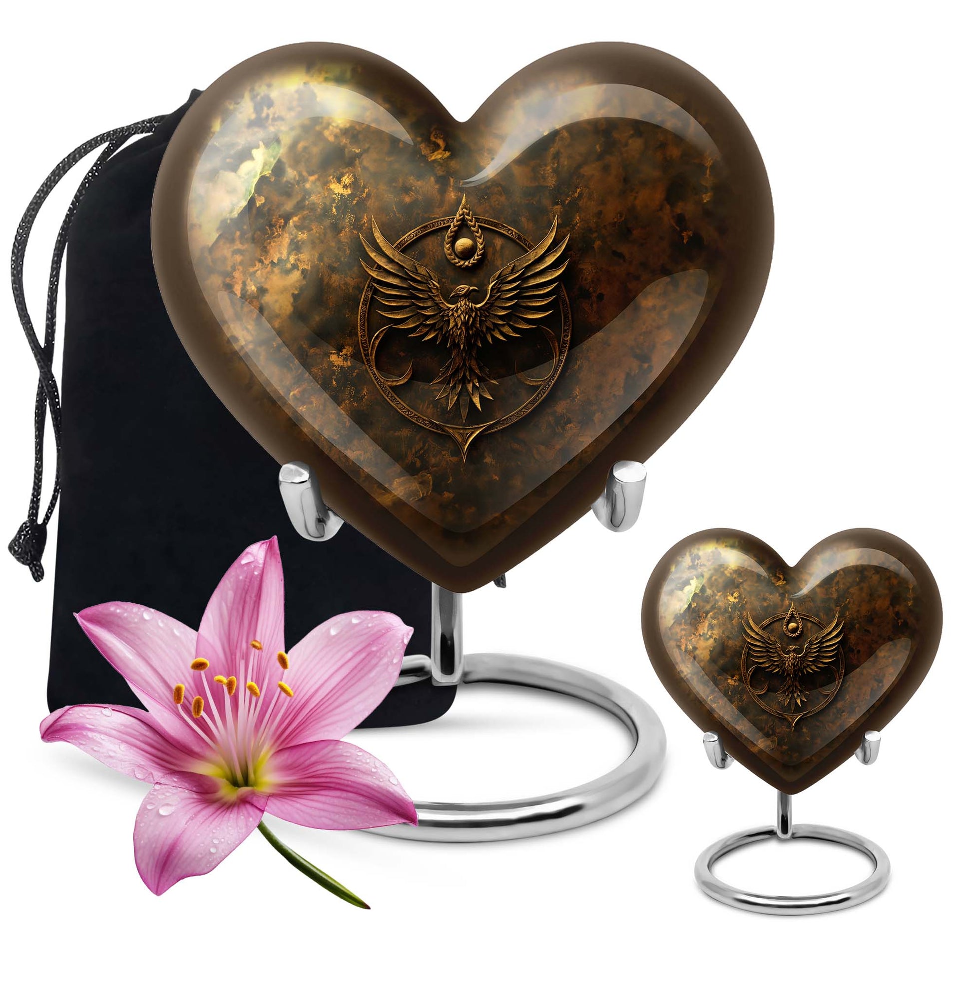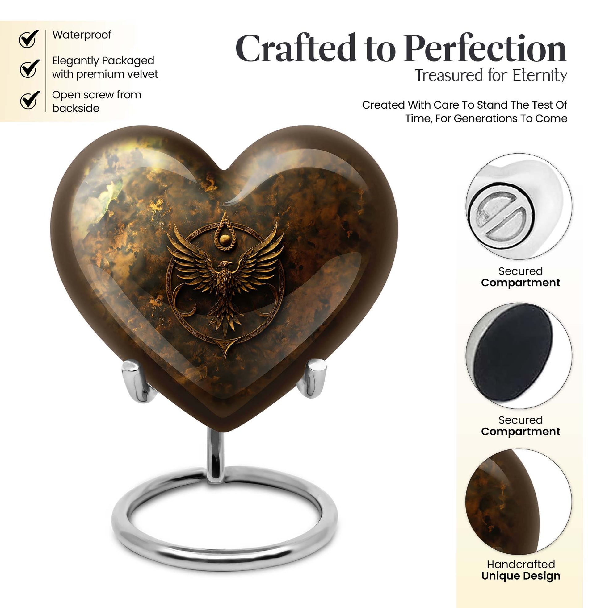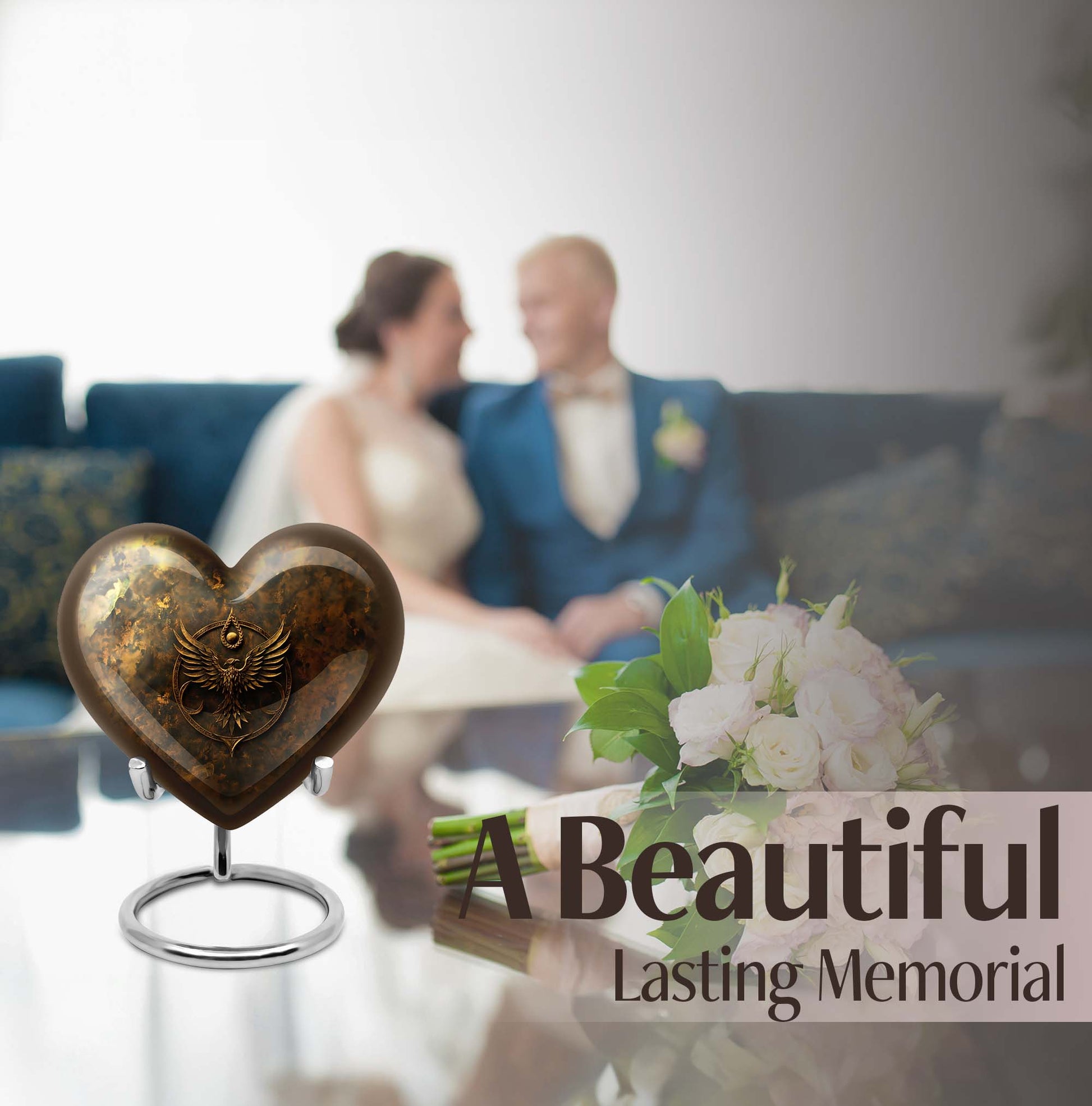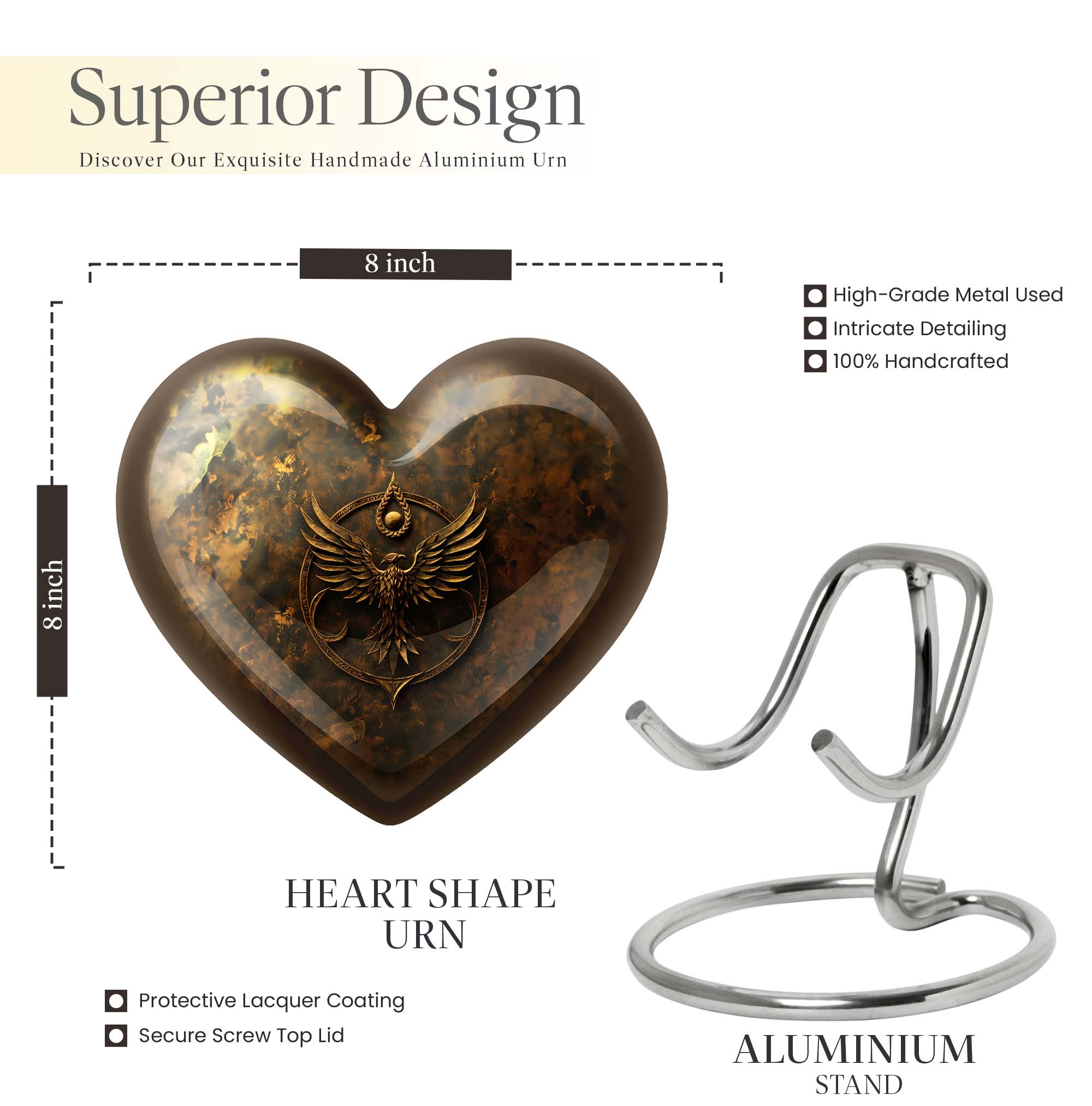 Honor your loved ones with this exquisite, uniquely-designed Catholic Urn. Crafted from high-quality, sturdy aluminium, this large, heart-shaped urn offers a capacity of 200 cubic inches, standing 10 inches in height and weighing around 3.3 pounds. This abstract-themed cremation urn allows you to cherish your memories in a profound and artistic manner. You can personalize this memorial urn with engraved names, offering an added layer of sentiment to the remembrance. Each urn comes with a velvet pouch for containment of ashes, maintaining the sanctity, dignity, and privacy of the cremation process. This versatile urn is not limited for men. It can also be used as a burial urn for cremation ashes of a mother, functioning as a tasteful urn ash funeral urn. This product promotes an aesthetic and meaningful celebration of life and memory. Please note size details - this item measures 10 inches.
