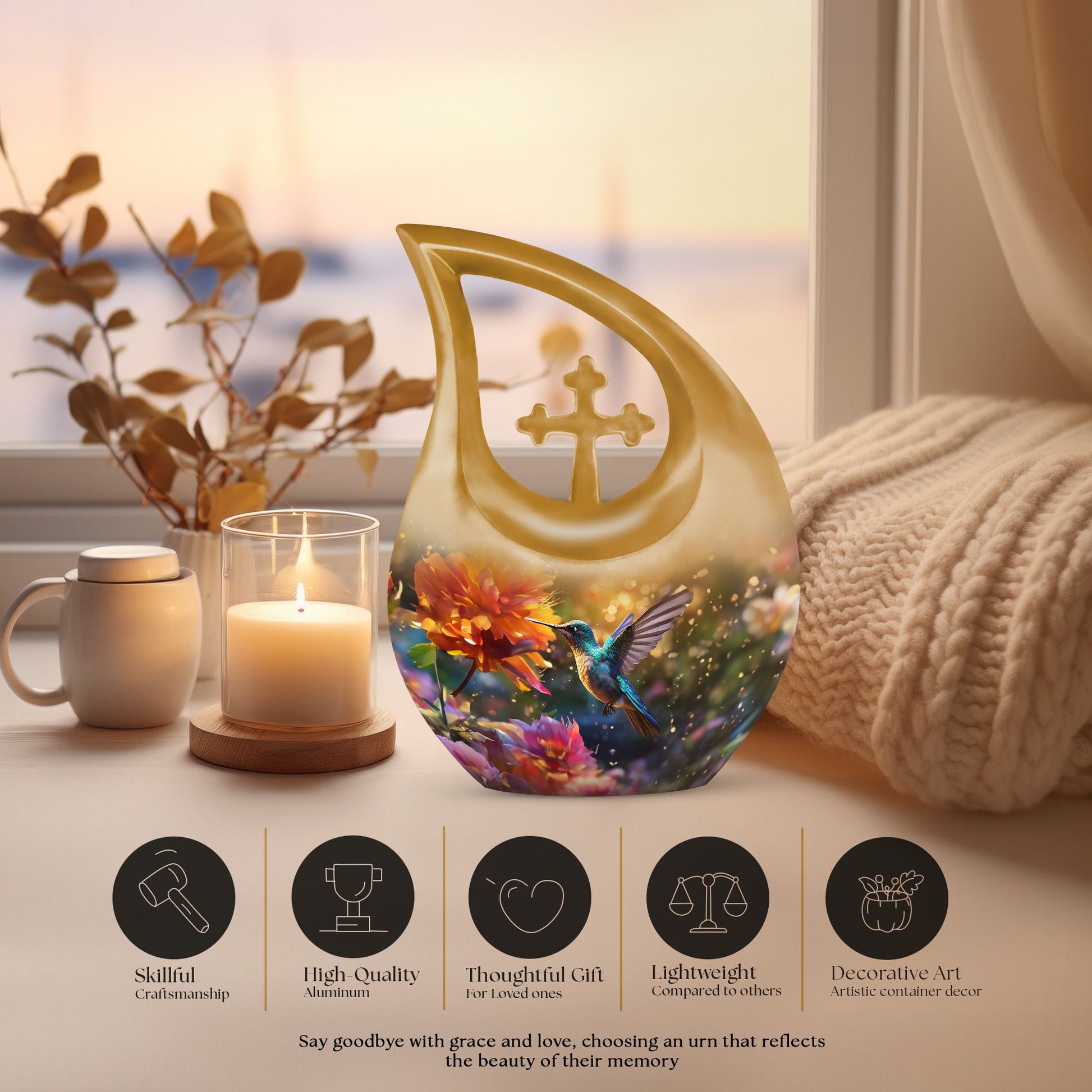 Crafted from durable aluminium, this 10 inch urn blends artistry with reliability. The delicate hummingbird design transforms it into a large decorative urn while maintaining the strength expected from cremation urns large adult. With ample capacity, it functions as a cremation urn adult large, ideal for families needing a large funeral urn or urns for human ashes large that balance elegance and purpose. Its smooth finish and thoughtful construction make it one of the most dependable large cremation urns for human ashes.