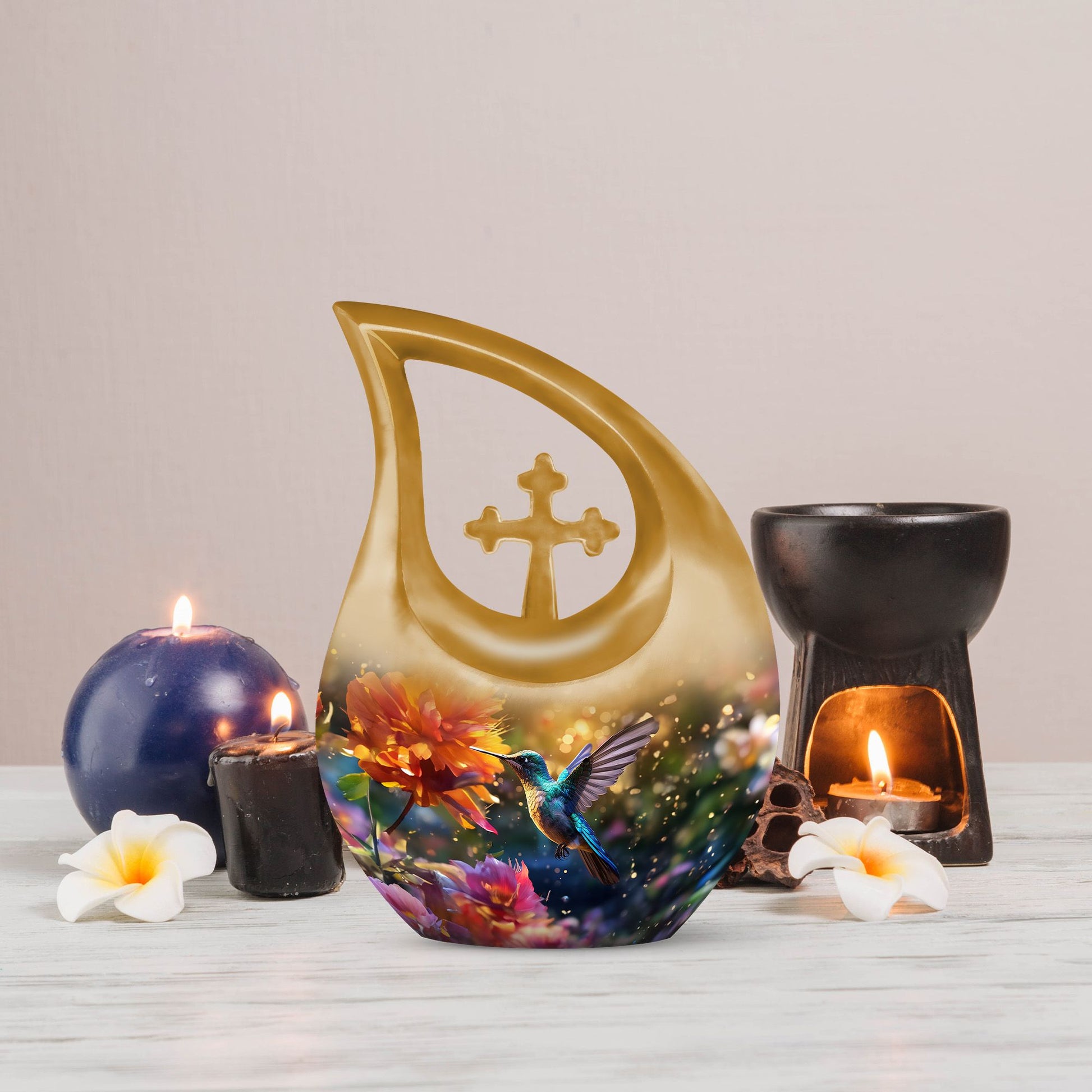 Honoring a loved one’s spirit with beauty and grace, this humming birds funeral urn offers a heartfelt way to preserve cherished memories. Designed for families seeking large urns for human ashes, it provides a comforting presence while respectfully holding cremation urns for large human ashes adult.