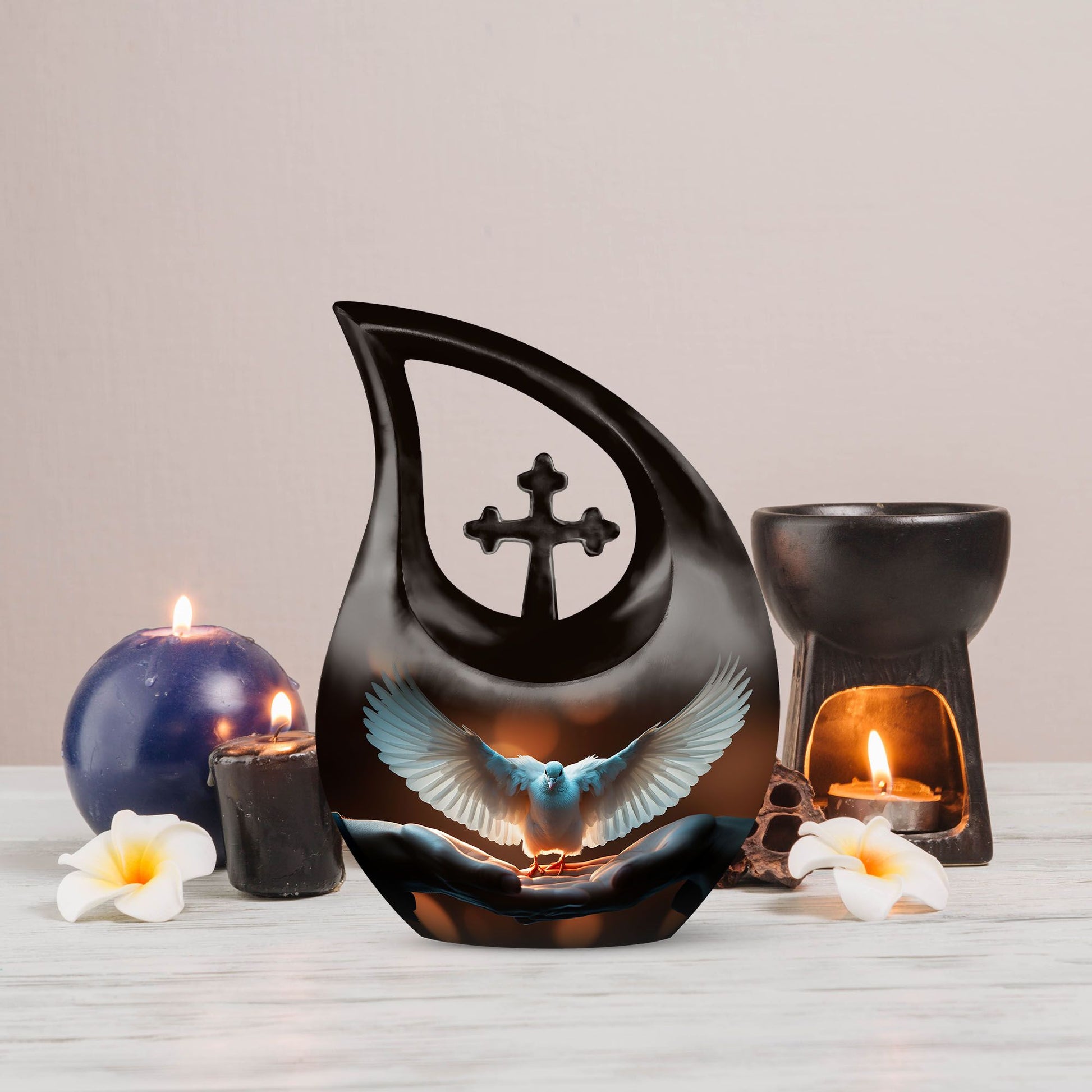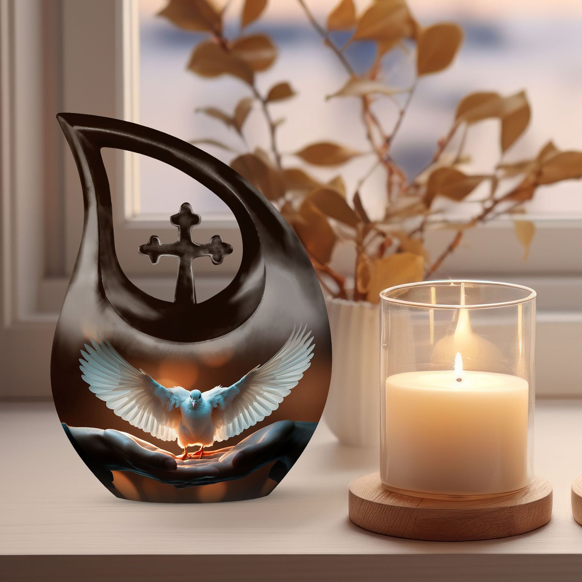 With the White Dove Cremation Urn, you create a serene and meaningful remembrance, honoring a loved one through a compassionate, elegant, and enduring memorial keepsake for human ashes.