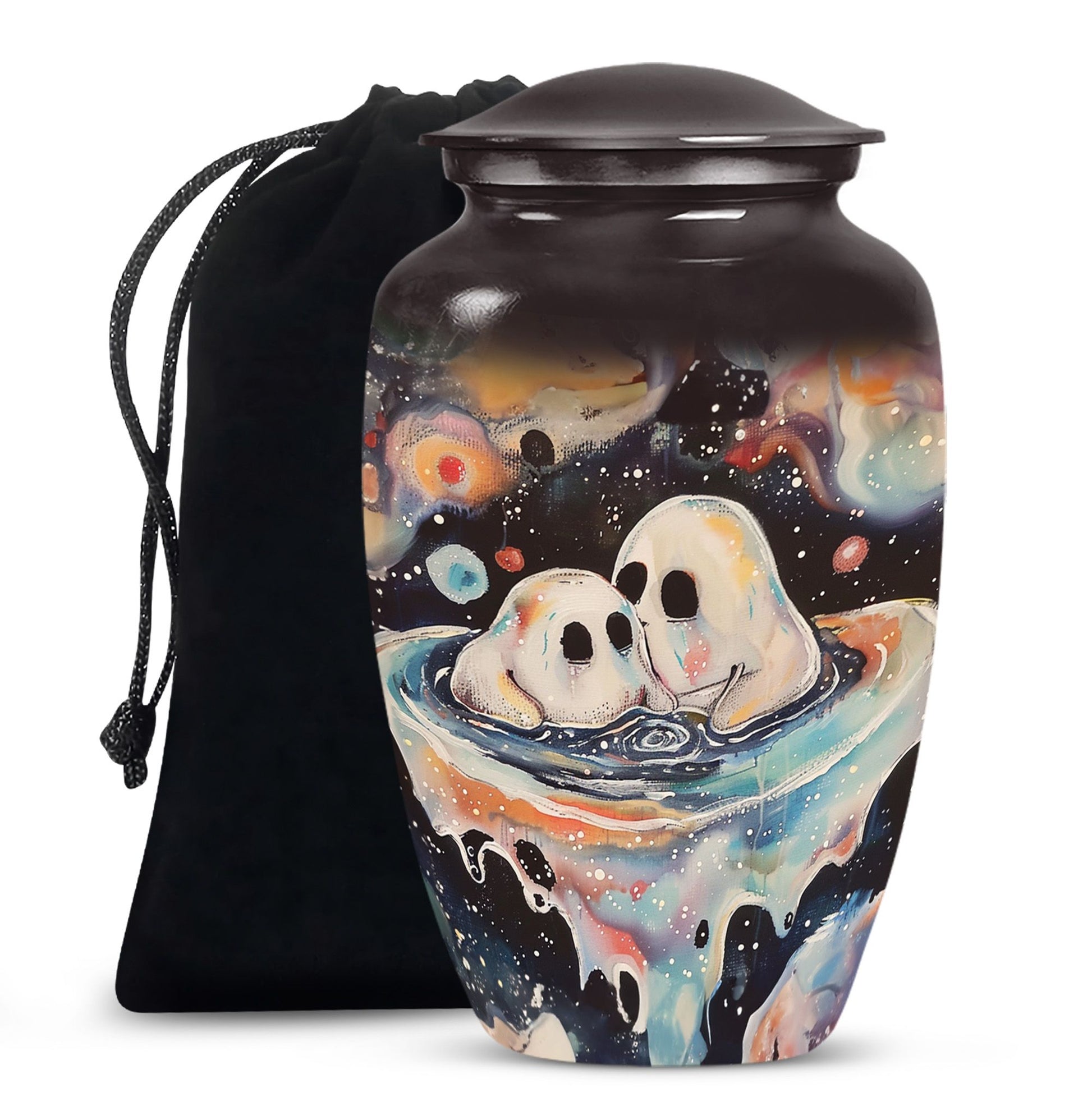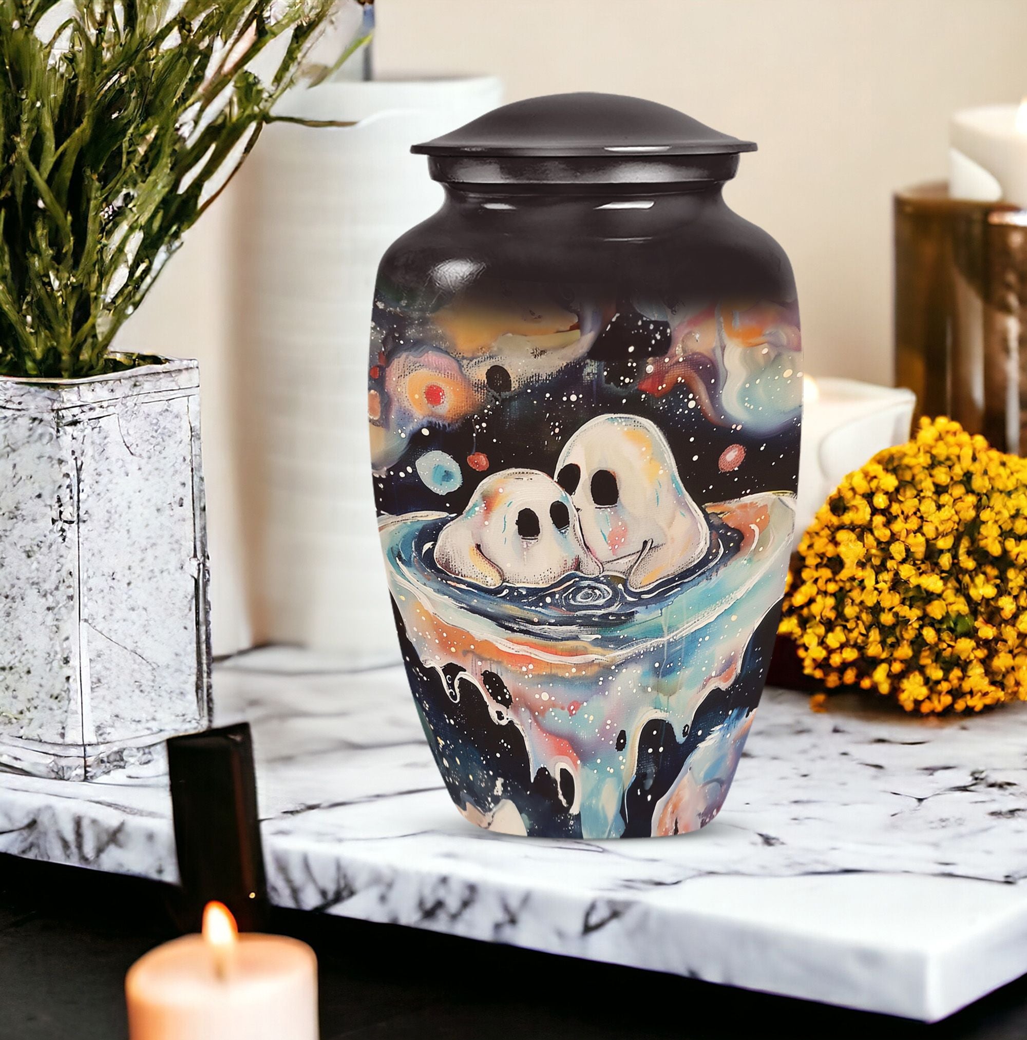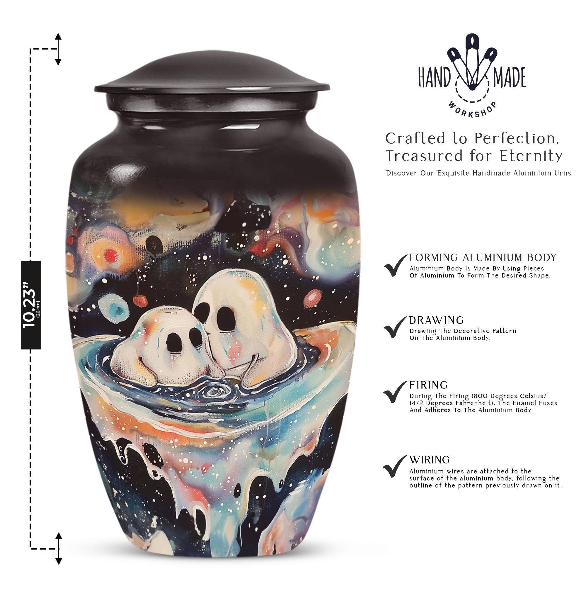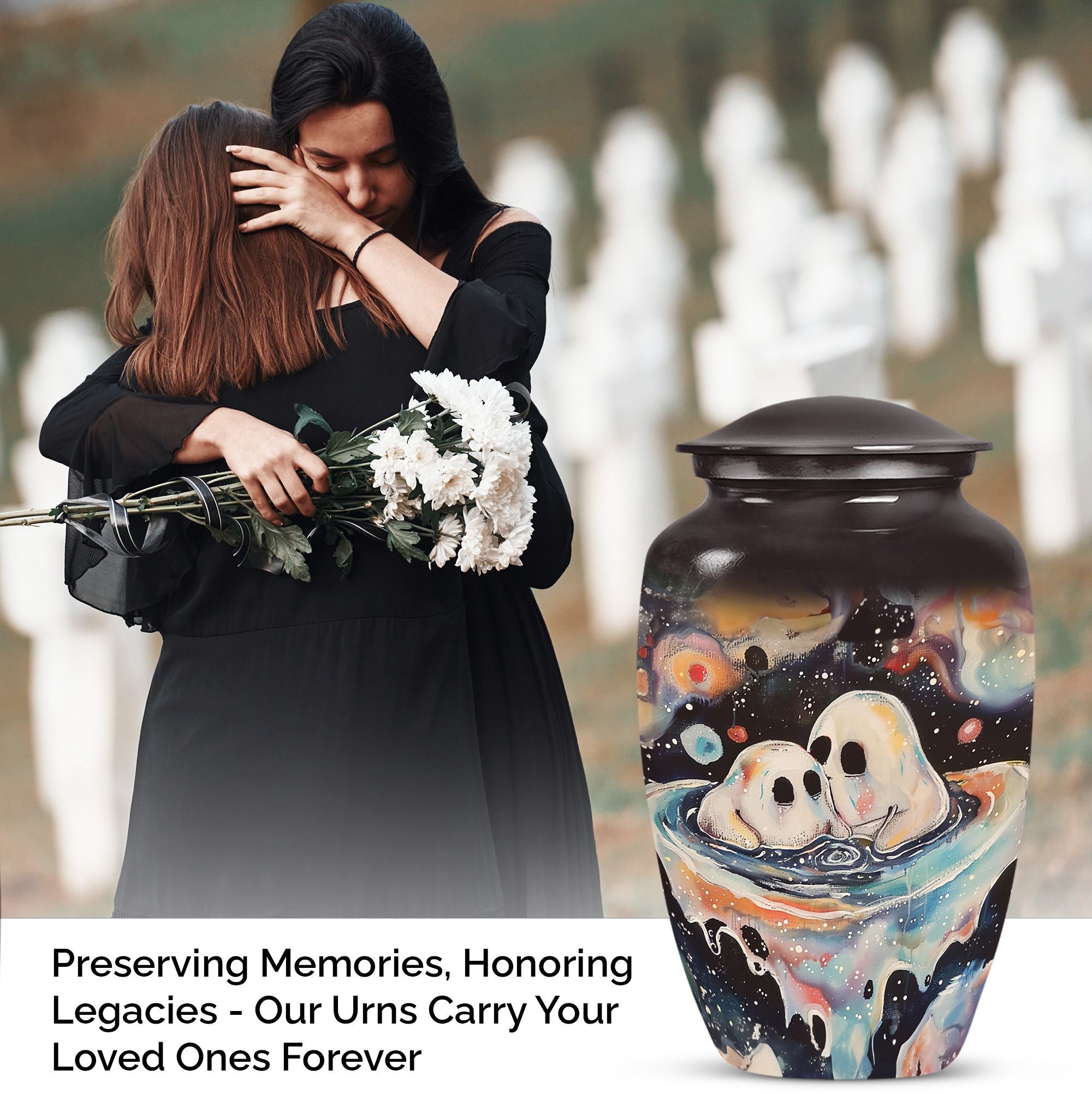 Cherish the memory of your dearly departed siblings with this beautiful 'Brother and Sister Urn'. Made from high-quality aluminium, this cremation large urn features a sophisticated abstract theme, reflecting the tangible bonds of love that siblings share. Sized at a substantial 10 inches, which can bear up to 200 cubic inches of ashes, this urn serves as a timeless keepsake. With a weight of 3.3 pounds, it ensures stability and permanence. Its features are further enhanced with a velvet pouch for containment of ashes, adding an extra touch of elegance and protection. Plus, you can personalize this classic urn by engraving names, making it not just an urn, but a marked representation of your shared memories. Keep your brothers' and sisters' memories alive with this timeless urn, perfect for those seeking funeral urns or cremation urns for human ashes.