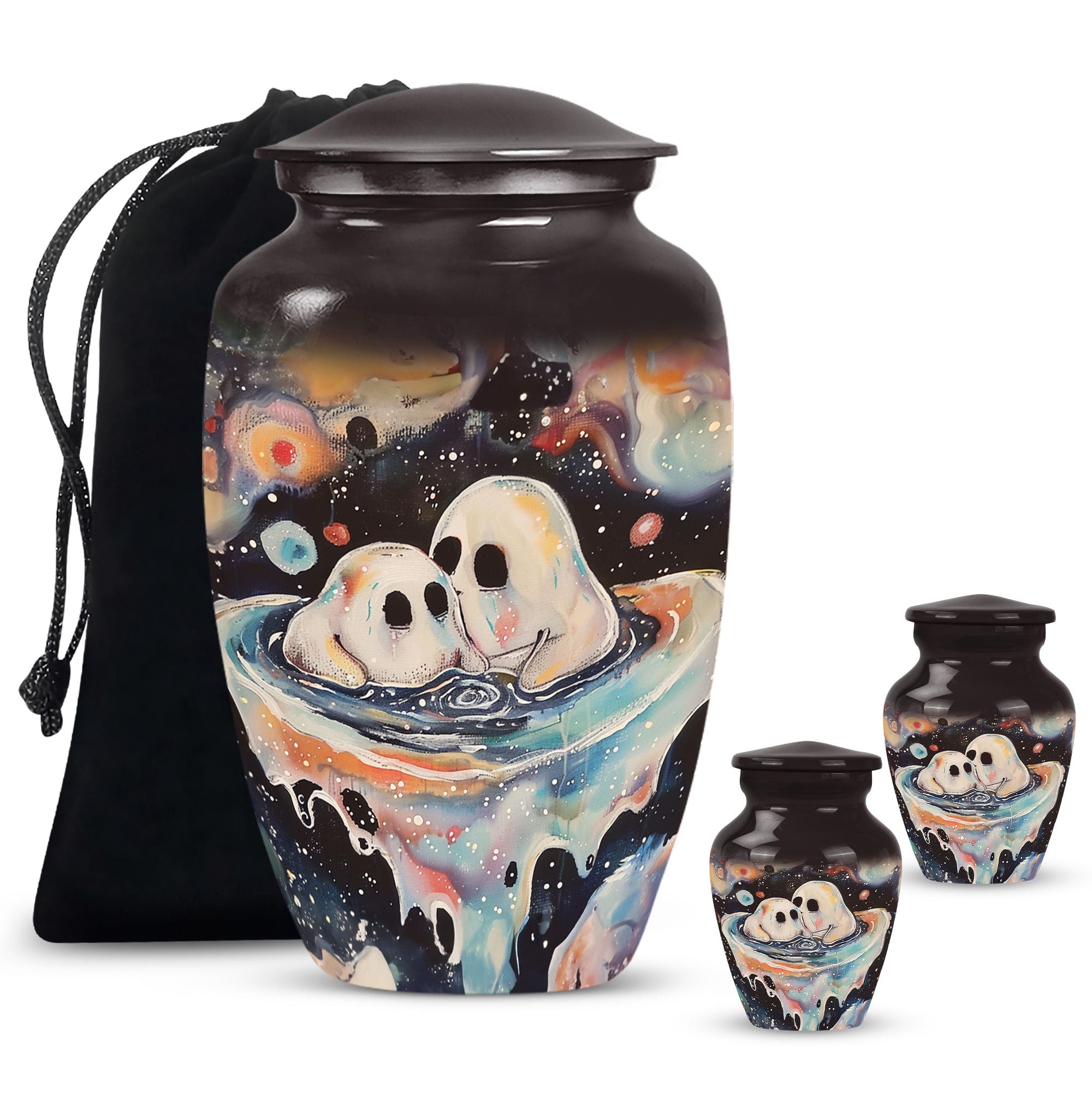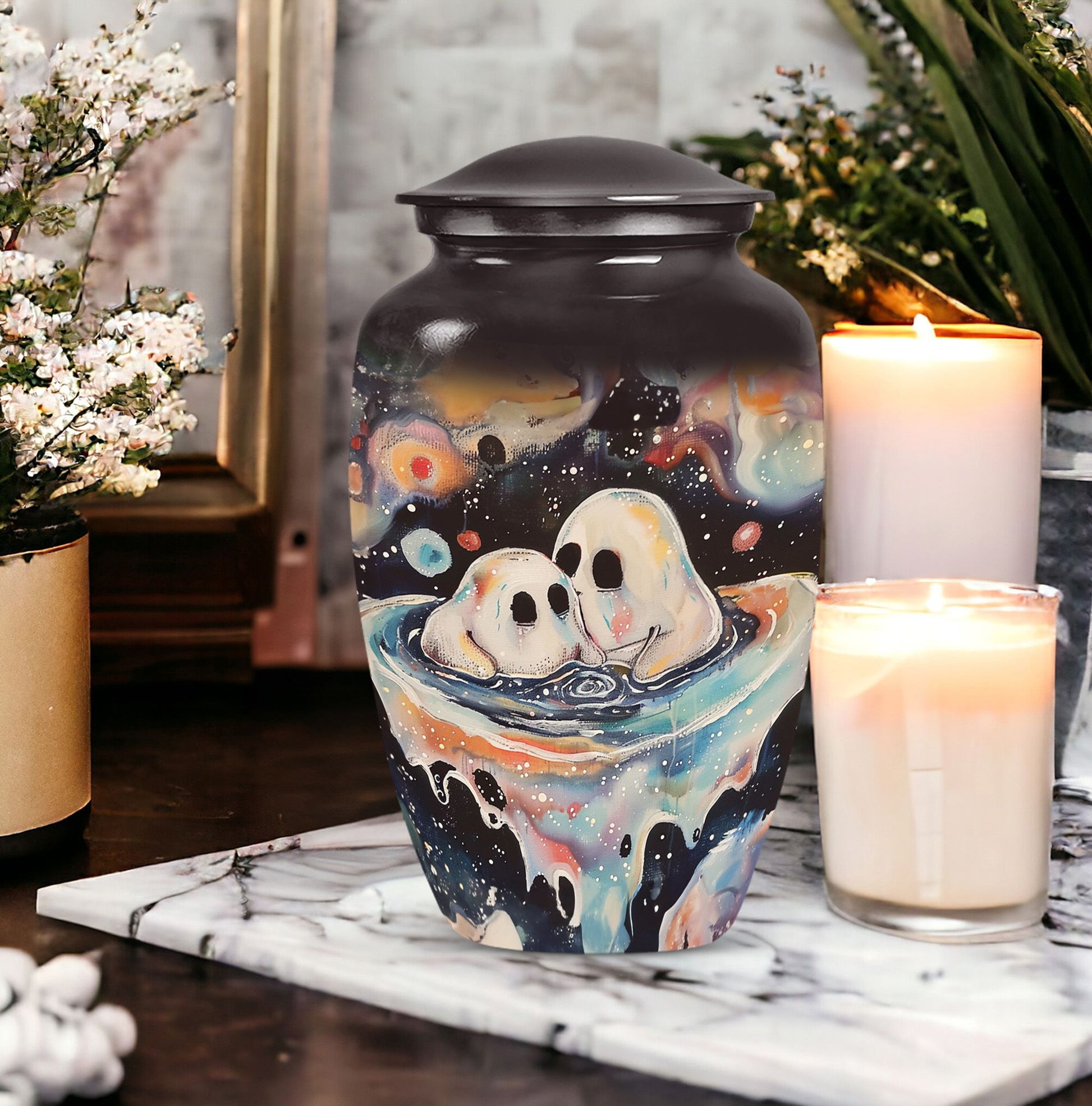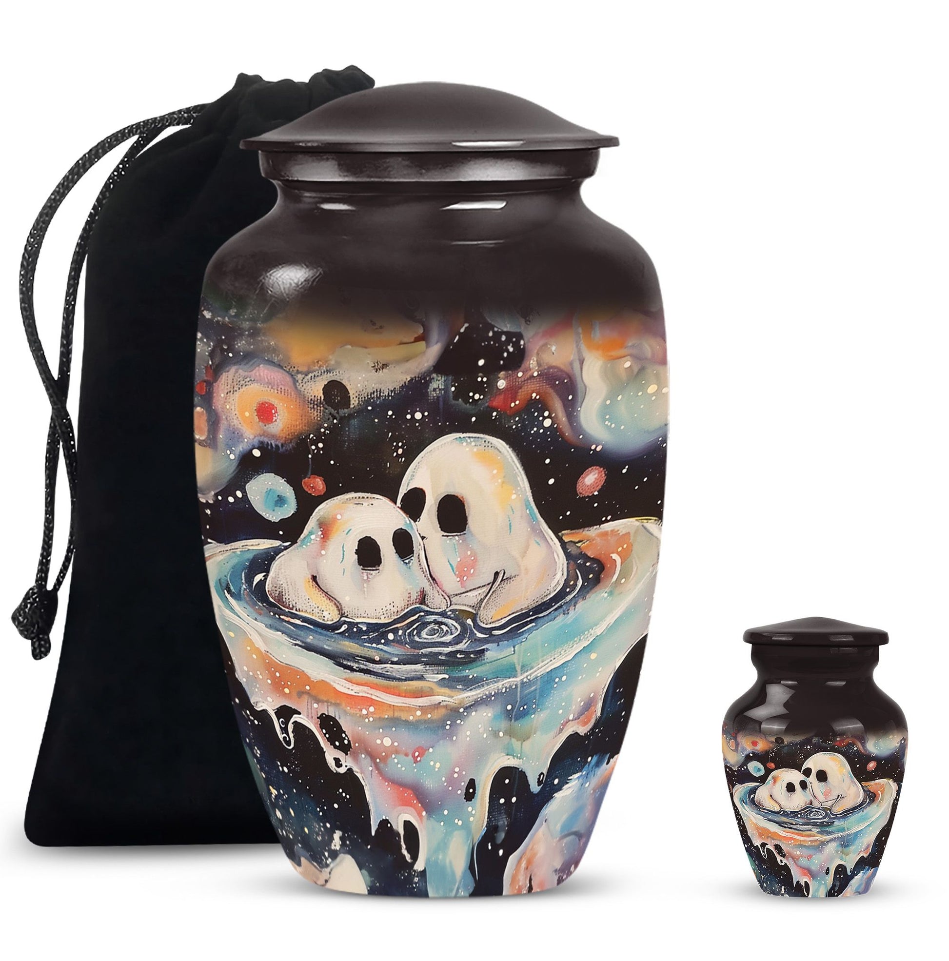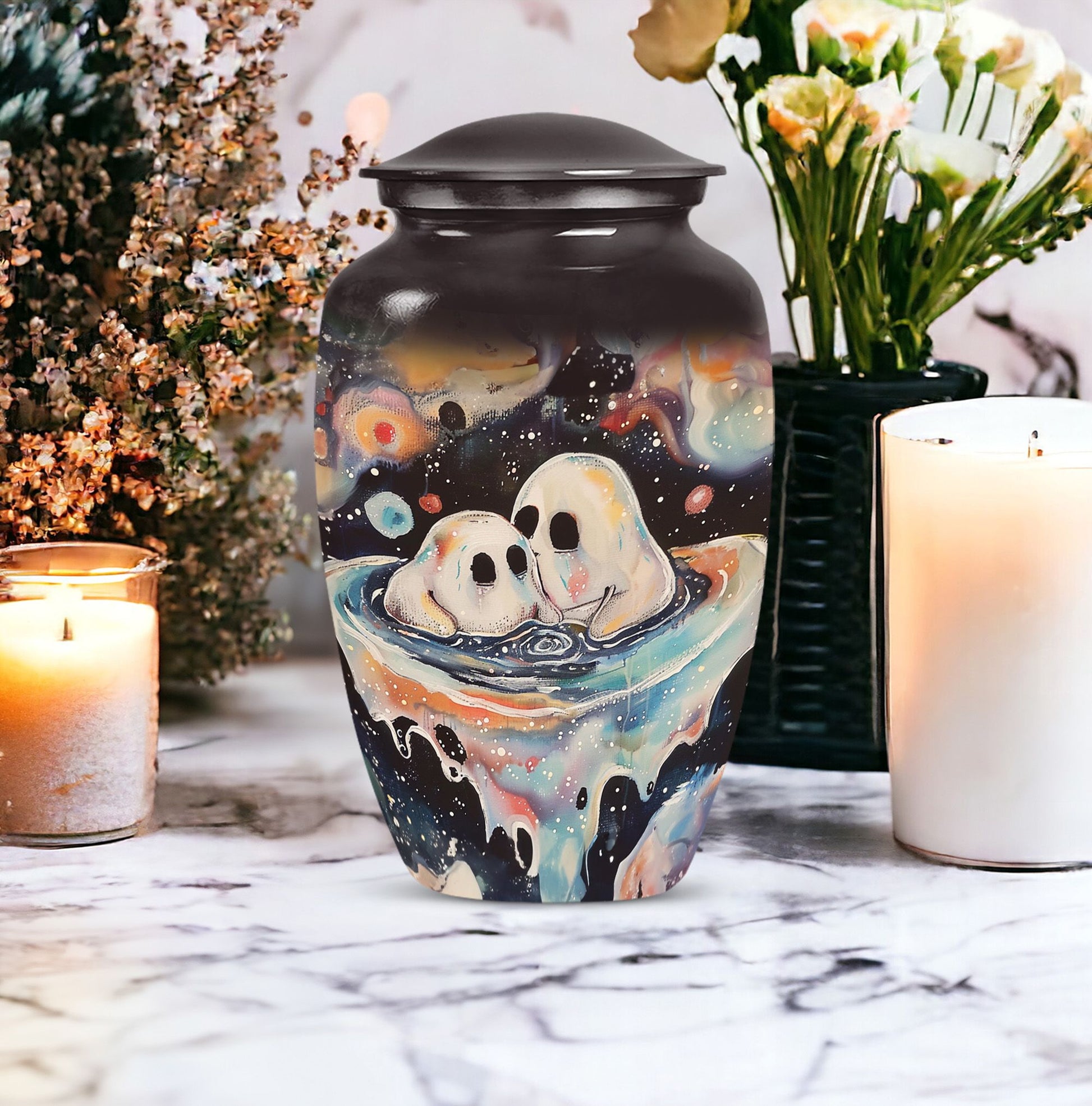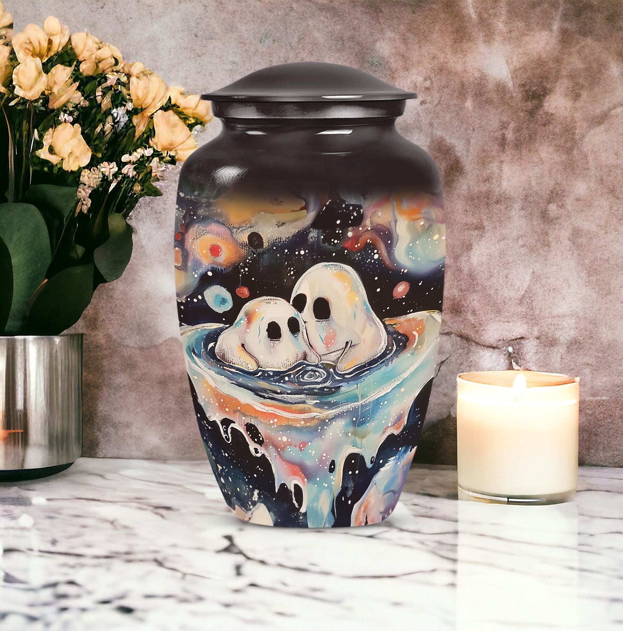 Cherish the memory of your dearly departed siblings with this beautiful 'Brother and Sister Urn'. Made from high-quality aluminium, this cremation large urn features a sophisticated abstract theme, reflecting the tangible bonds of love that siblings share. Sized at a substantial 10 inches, which can bear up to 200 cubic inches of ashes, this urn serves as a timeless keepsake. With a weight of 3.3 pounds, it ensures stability and permanence. Its features are further enhanced with a velvet pouch for containment of ashes, adding an extra touch of elegance and protection. Plus, you can personalize this classic urn by engraving names, making it not just an urn, but a marked representation of your shared memories. Keep your brothers' and sisters' memories alive with this timeless urn, perfect for those seeking funeral urns or cremation urns for human ashes.