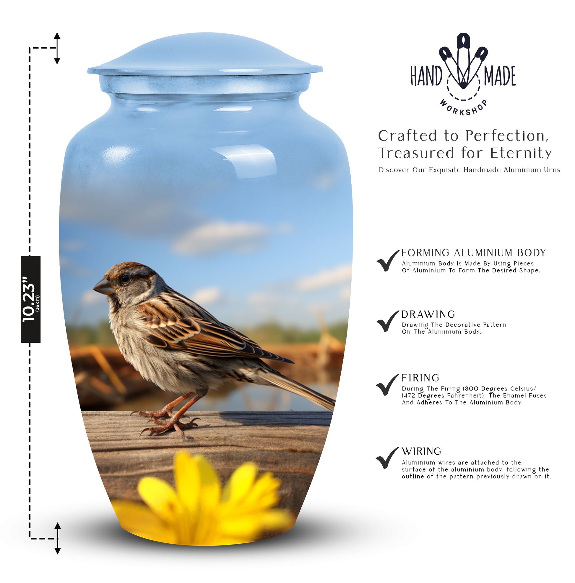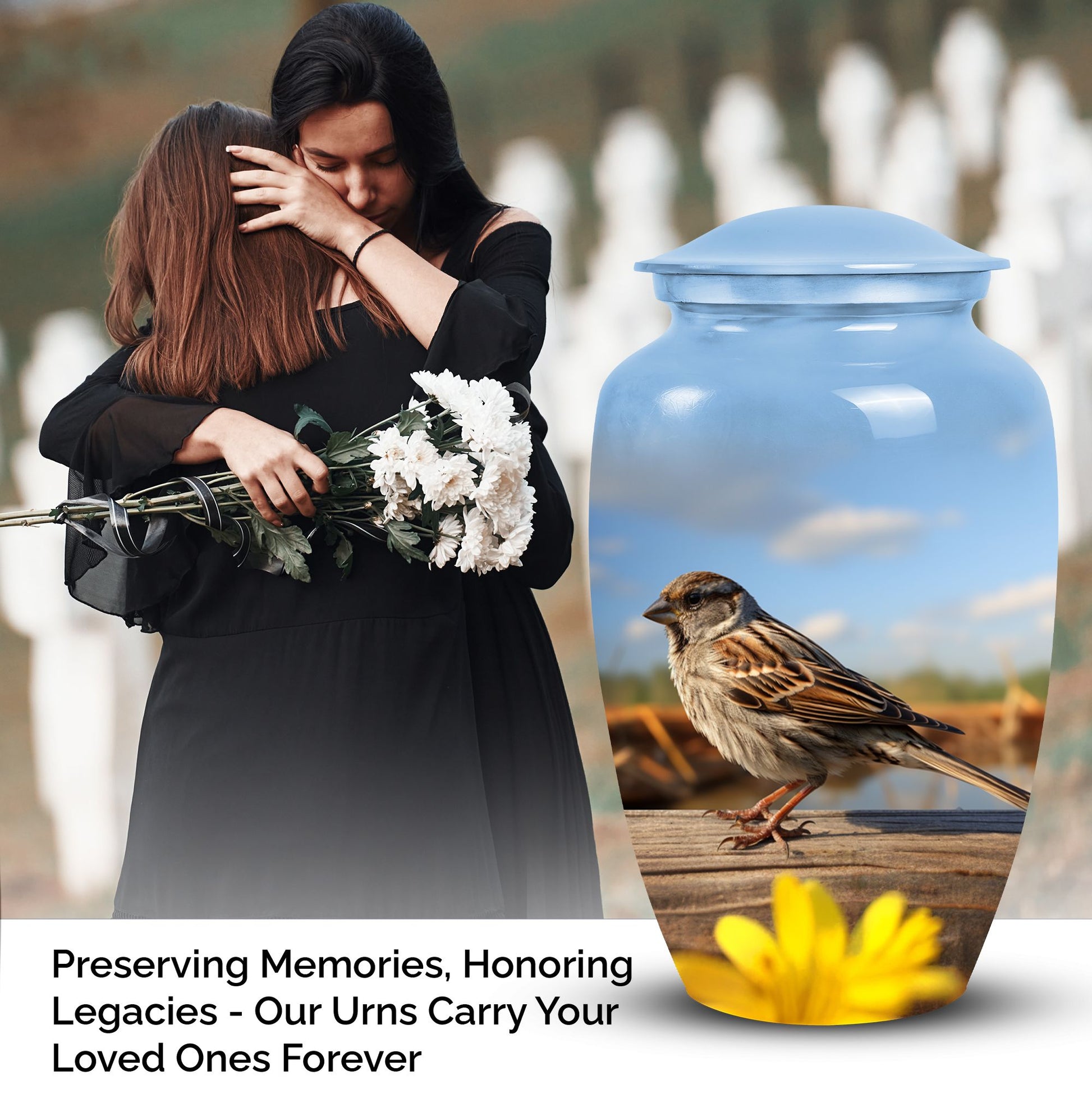 Find solace in this time of deep loss with our Sparrow Urn, meticulously designed to honor your departed loved ones. This profound funeral decoration harmonizes the somberness of parting with the elegance of remembrance. Crafted with customizability in mind, the Sparrow Urn is not just receptacle for human ashes; it is a testament to a rich legacy lived. As one of the finest adult cremation urns available, this offering embodies the solemnity and dignity accompanying a grand farewell. The enduring architecture makes this urn the ideal choice for enduring memorials, allowing for the respectful keeping of ashes. Whether you're arranging an intimate gathering or a significant ceremonial tribute, these burial urns capture the heartfelt sentiments felt by those grieving. The Sparrow Urn - a noble testament to the love and memories that forever remain. Explore the restorative power of shaping your loved one's resting place with our collection of unique, ethically sourced urns for cremation.